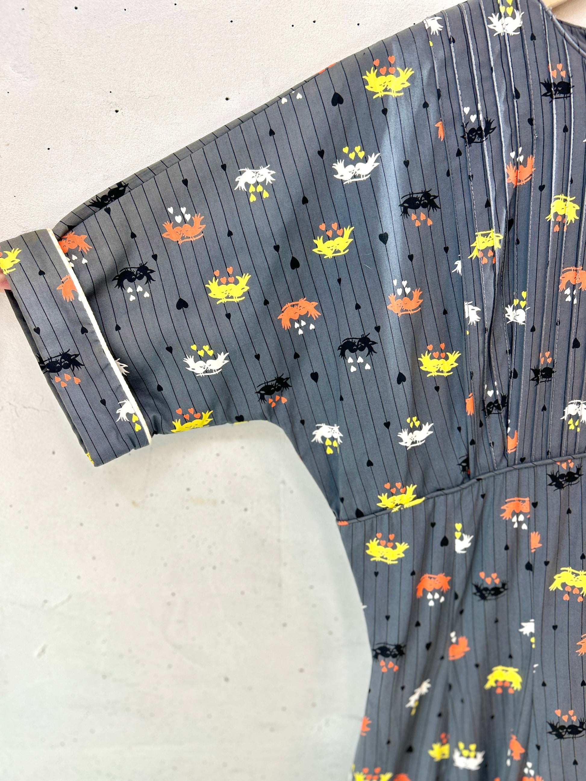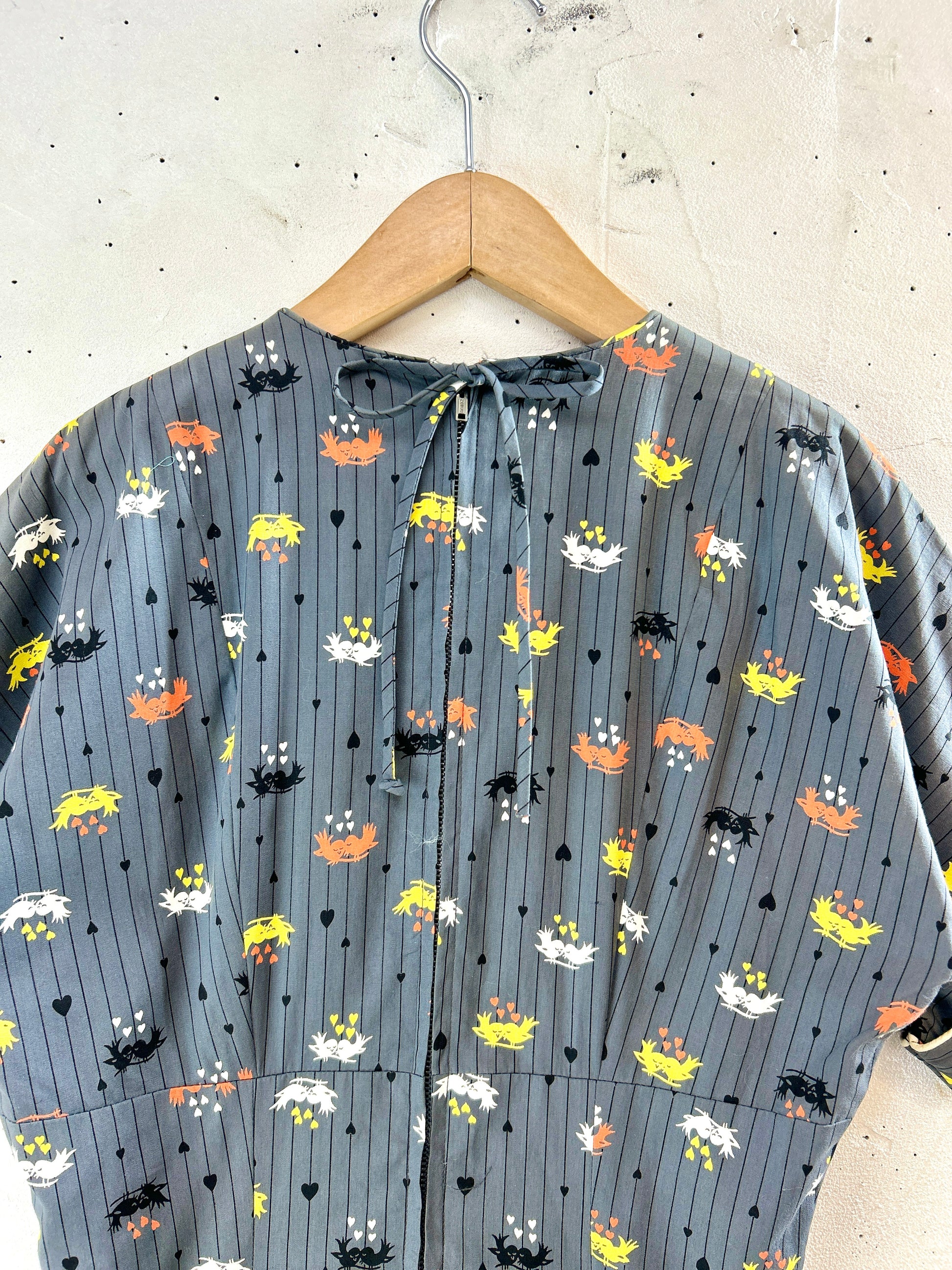 グレーカラーにラブラブな小鳥達がキュートな柄の1着。