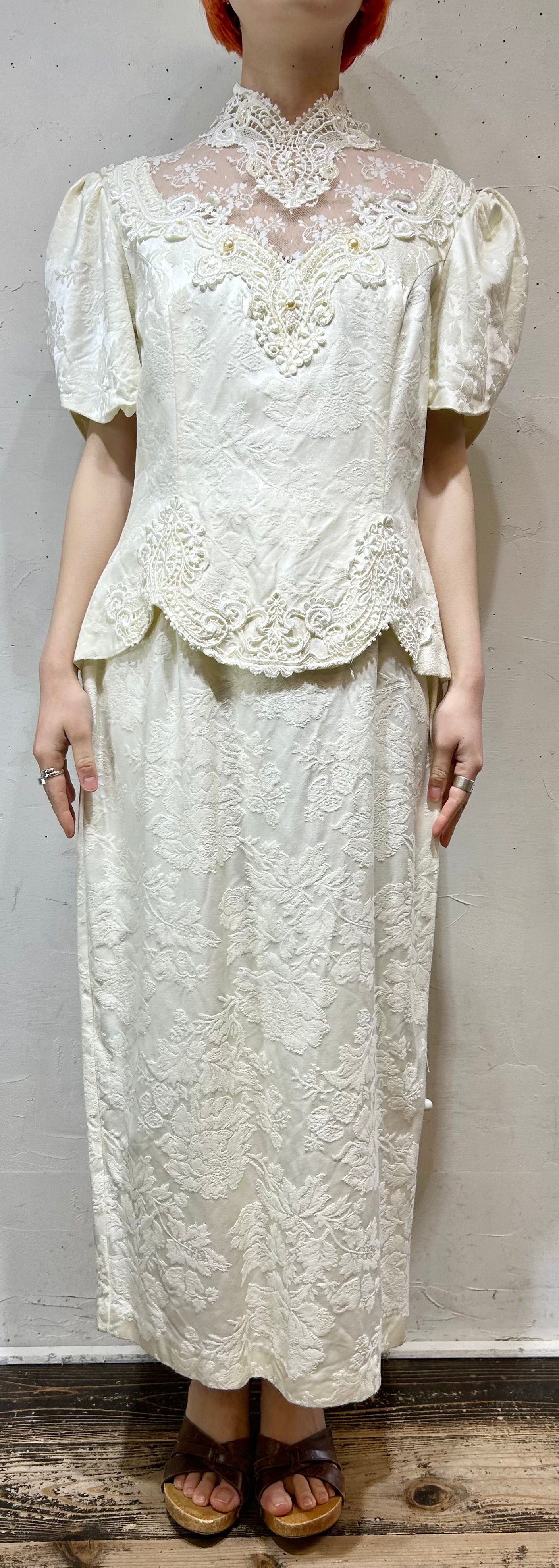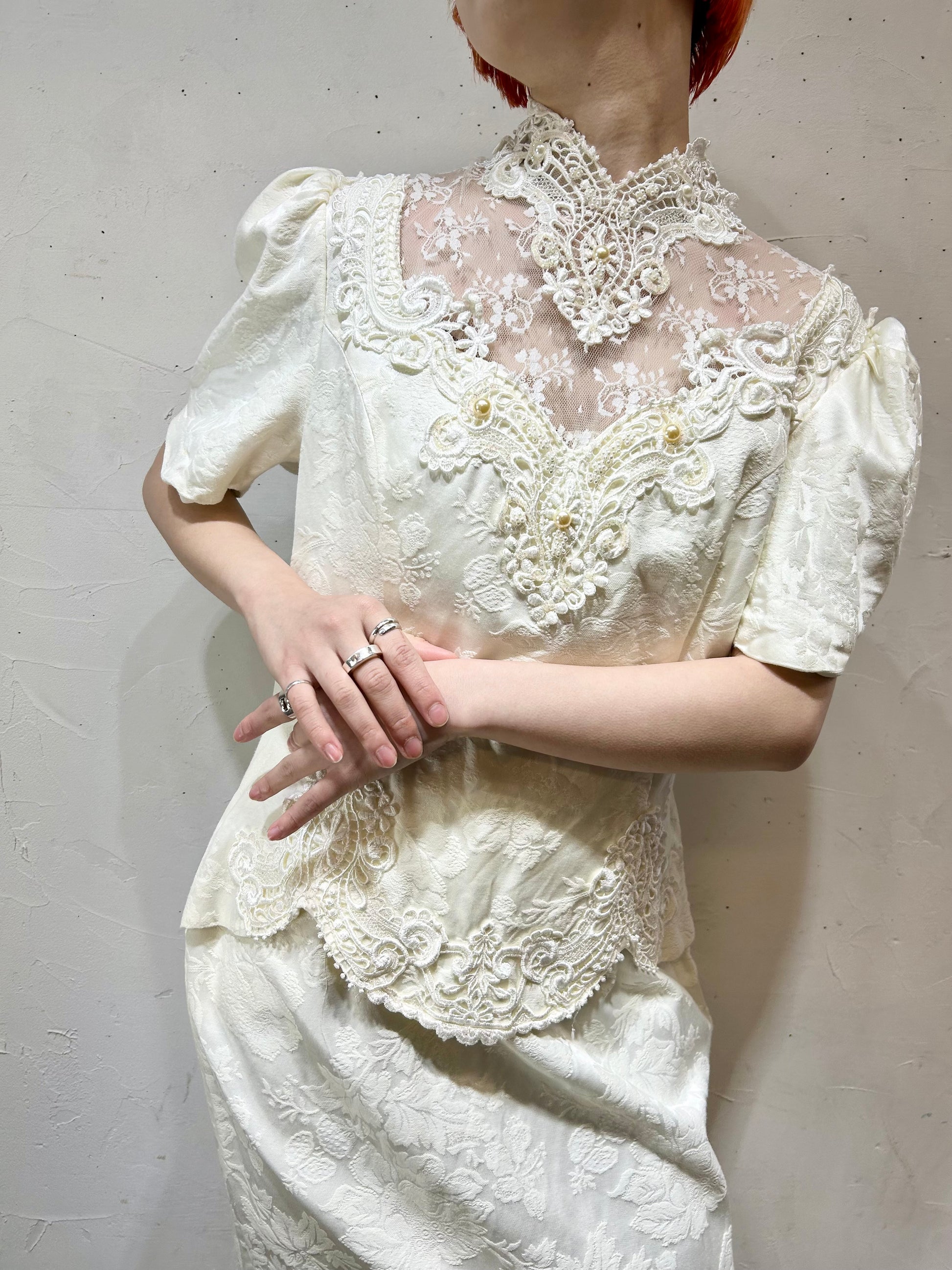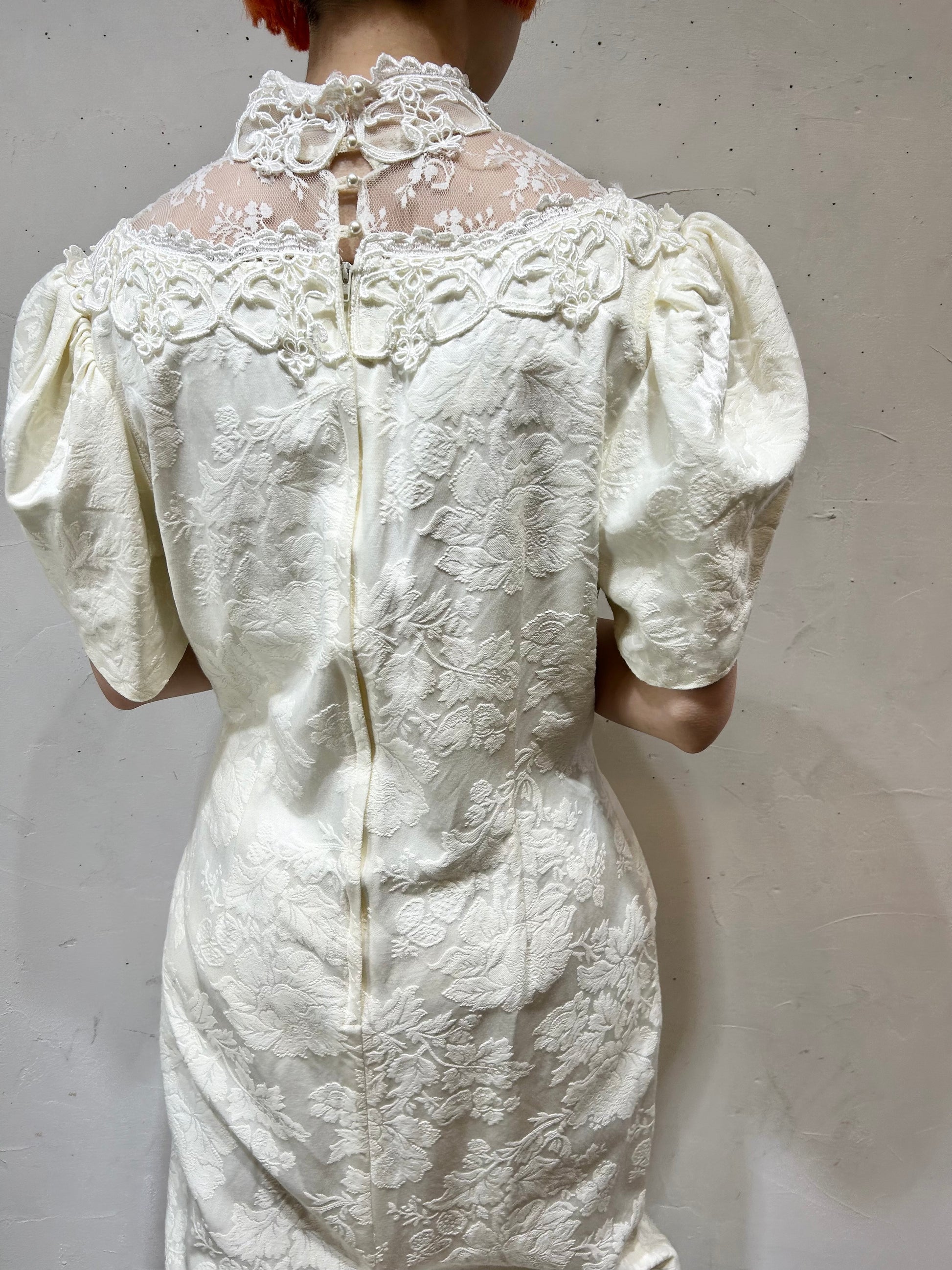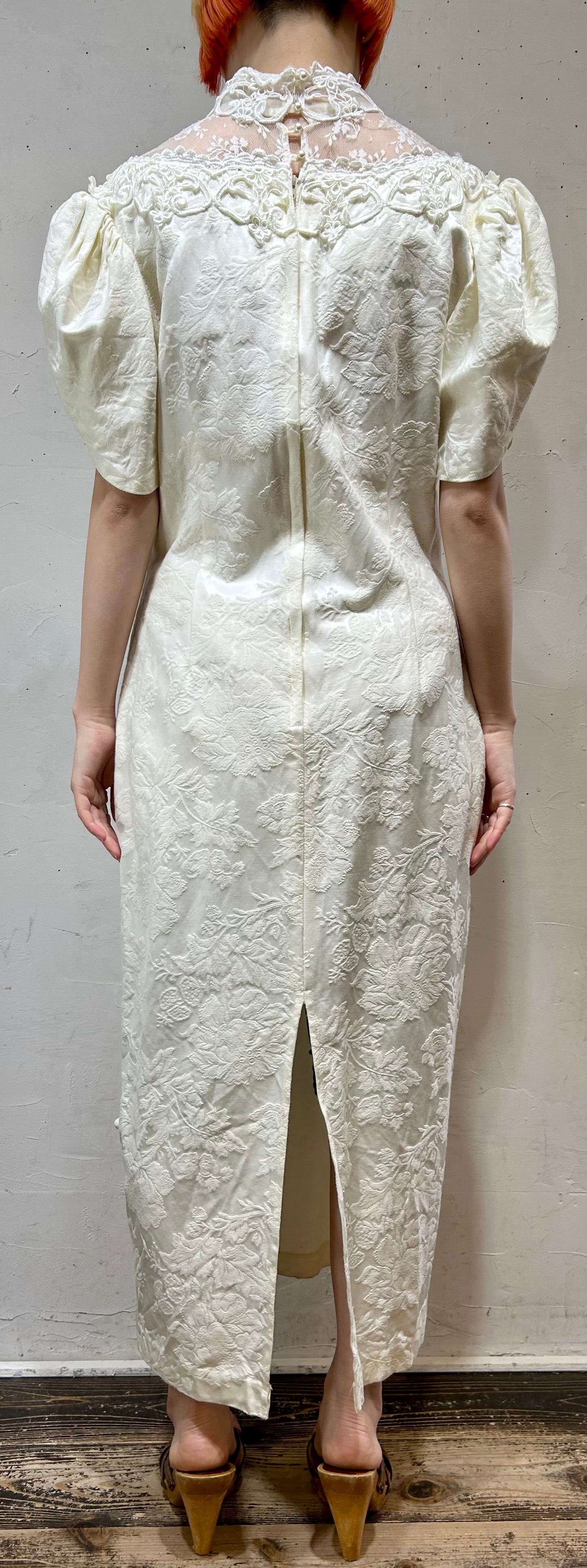 こちらのドレスは、花柄のジャガード生地を使用したとても珍しい一着。