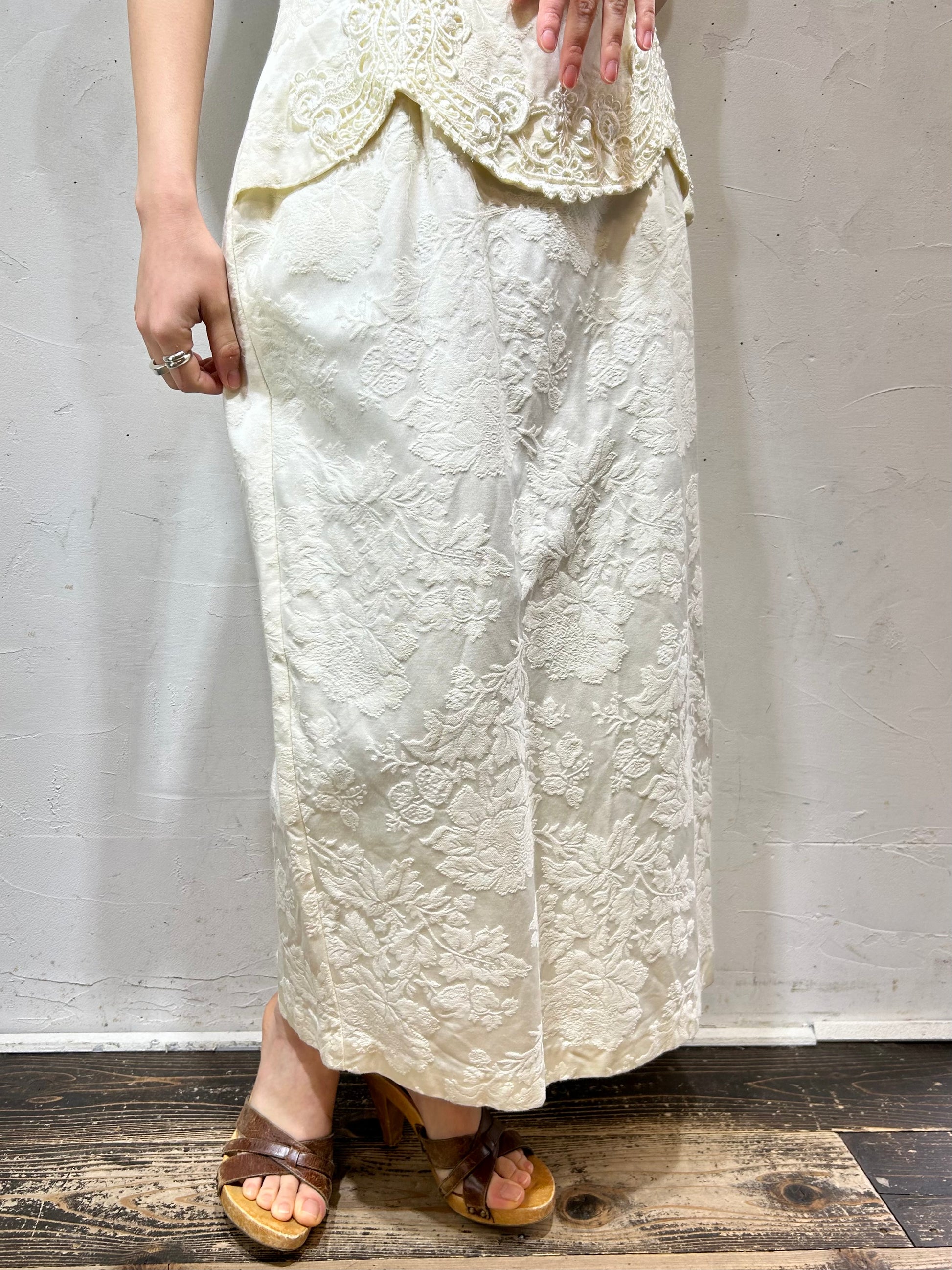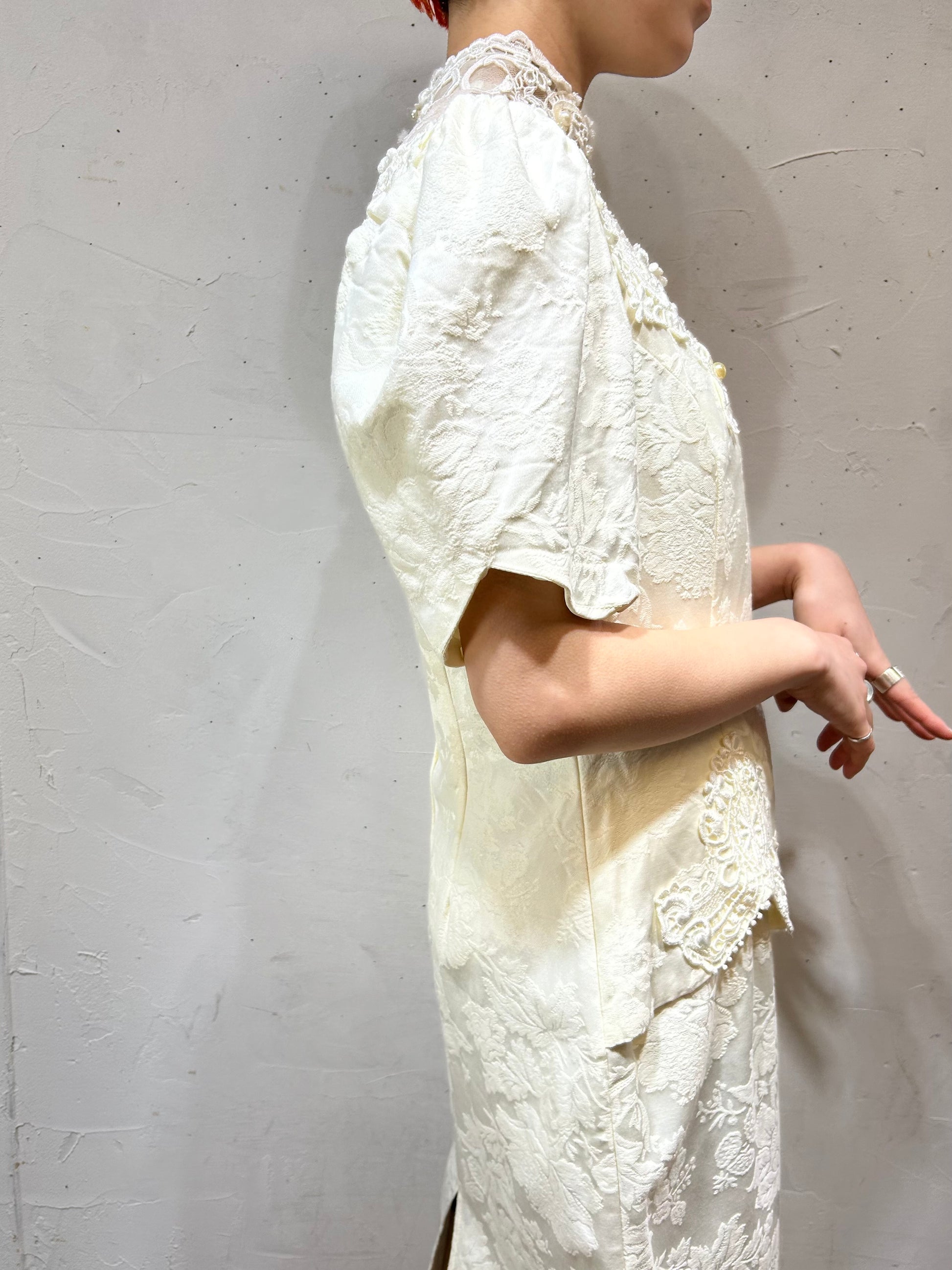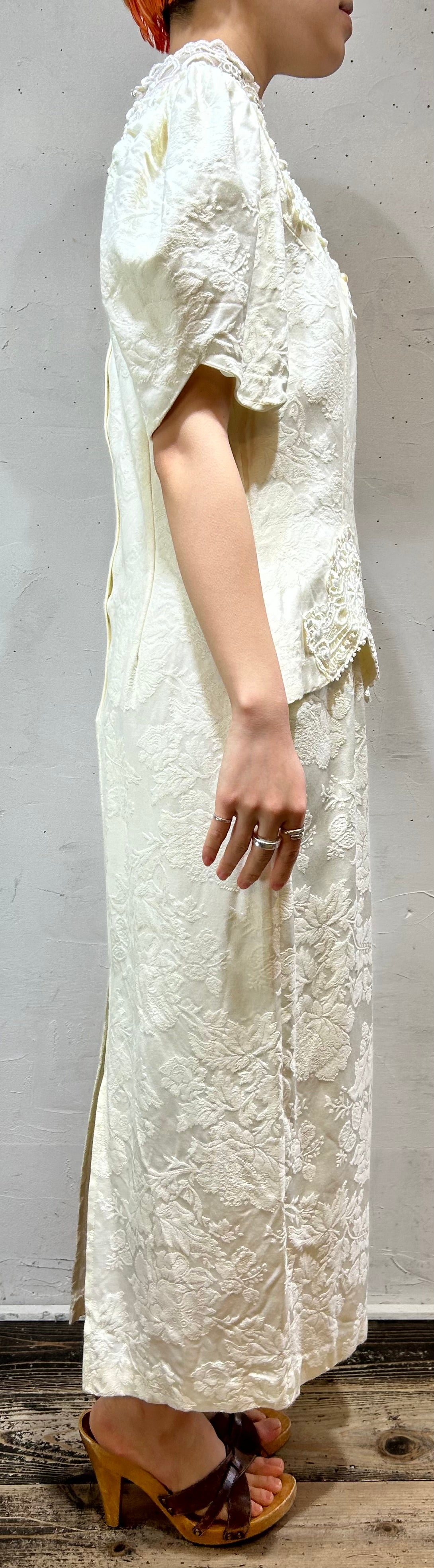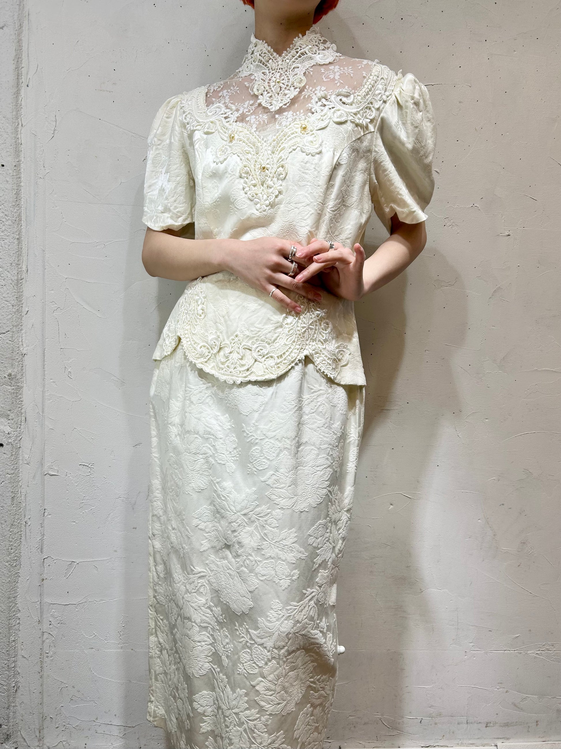 こちらのドレスは、花柄のジャガード生地を使用したとても珍しい一着。