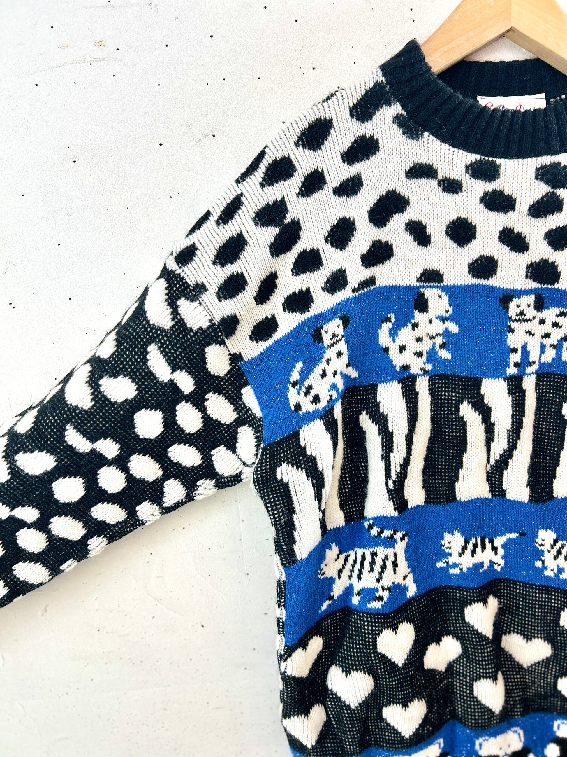 ダルメシアン、ネコ、テディベアとそれぞれの模様が組み合わさったデザインが非常に可愛い1着。
