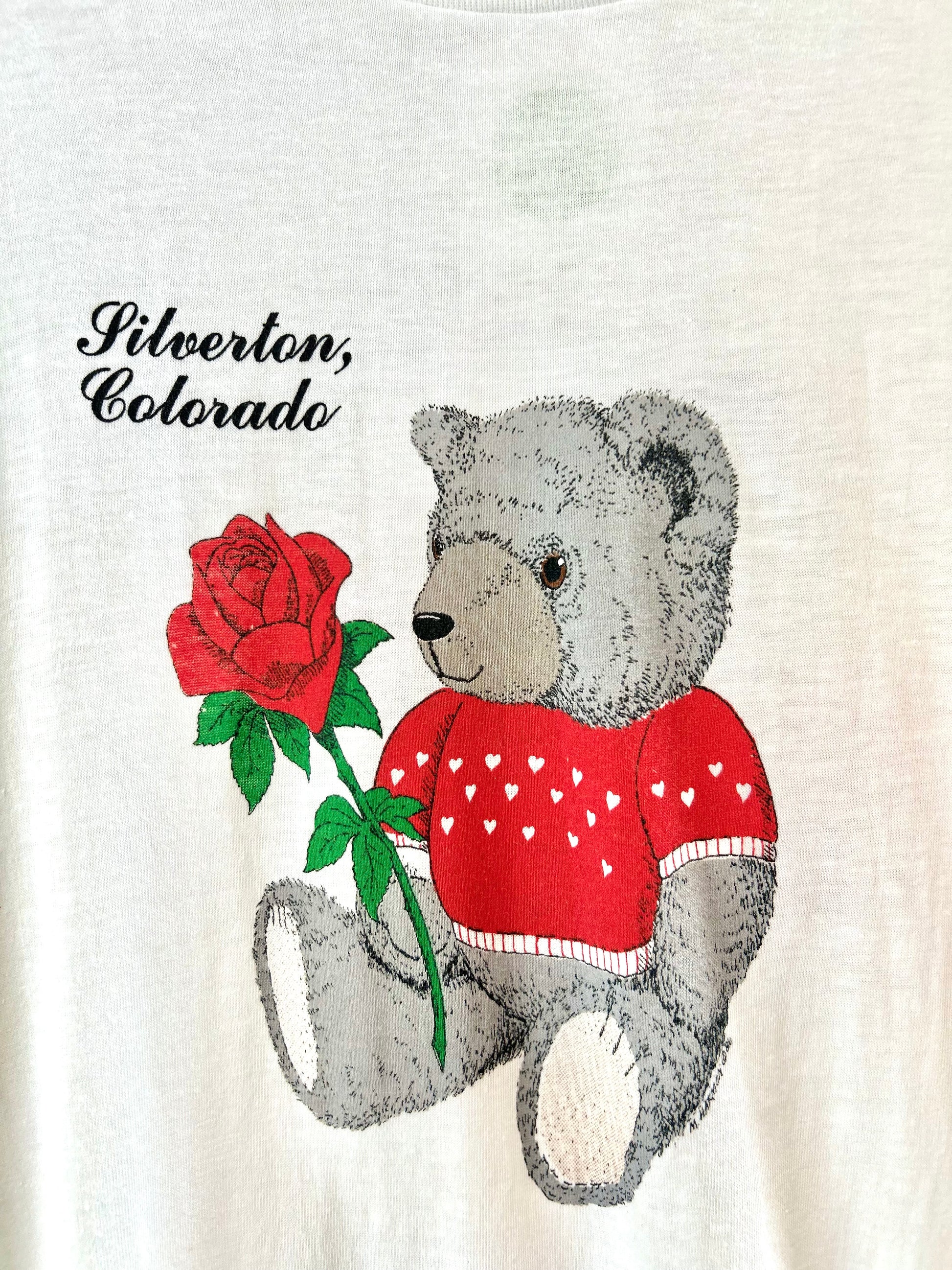 ニットを着た可愛いテディベアがUSビンテージらしいファニーな一着。