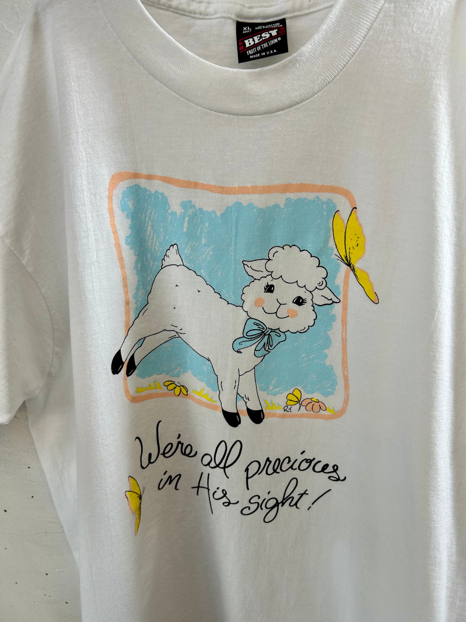 温かみのある愛らしい子羊のプリントがキュートな1着。