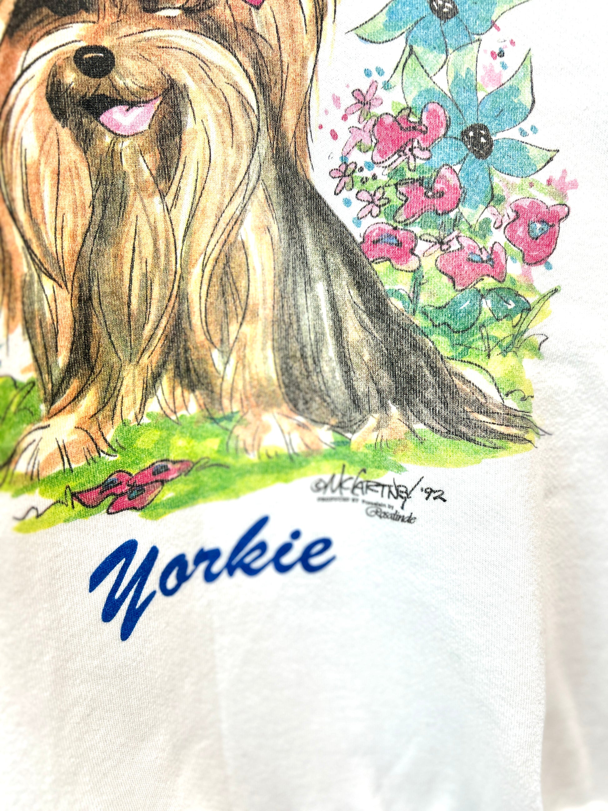 Hanesのホワイトボディに、ウインクする可愛いヨーキーがペイントされた1着。