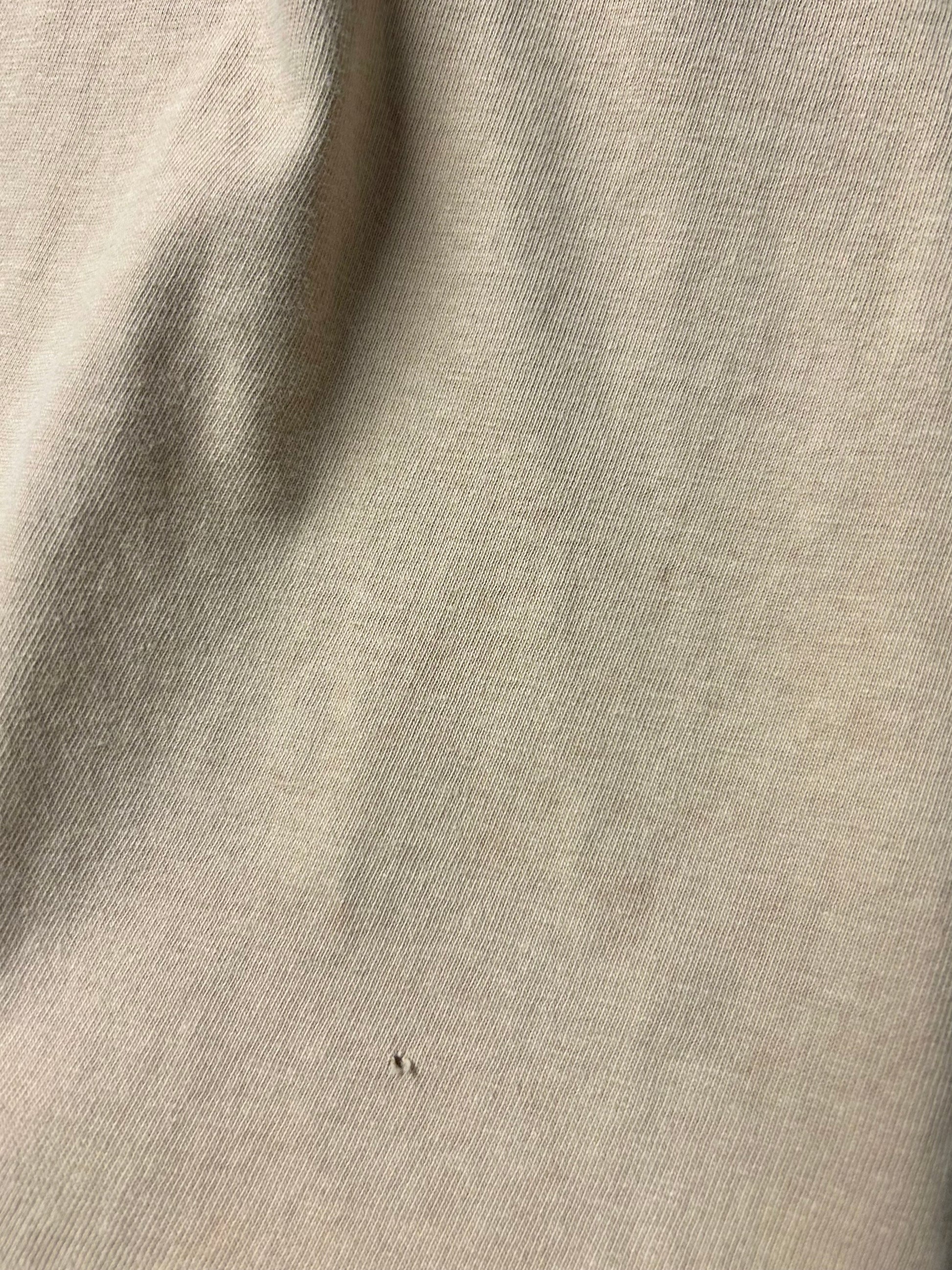 コンディション:左サイドに極小の穴とシミ、バックに所々色抜け、左袖にシミがございますが、ビンテージにご理解いただいている方でしたら、気にせずご着用頂ける程度かと思われます。