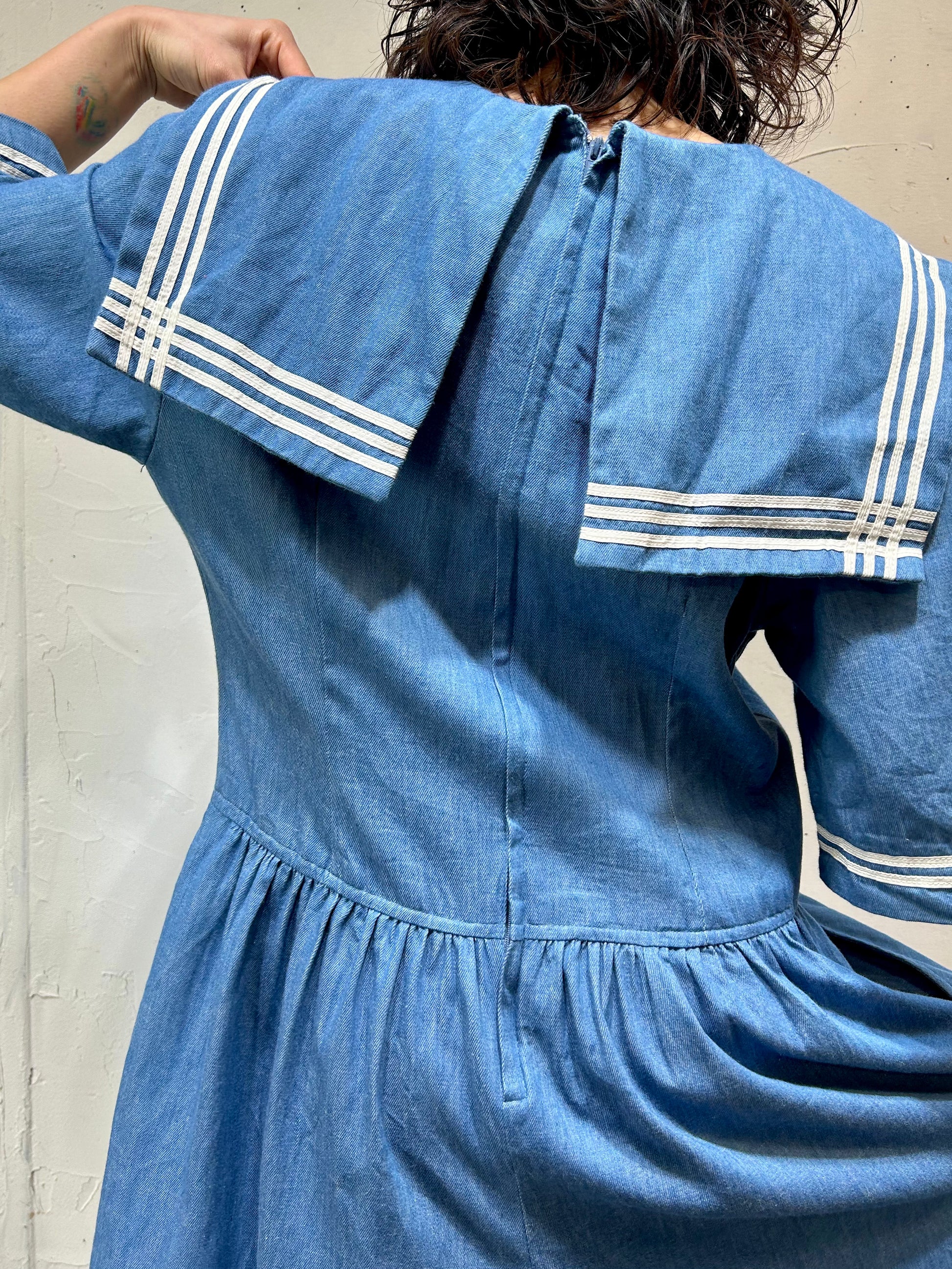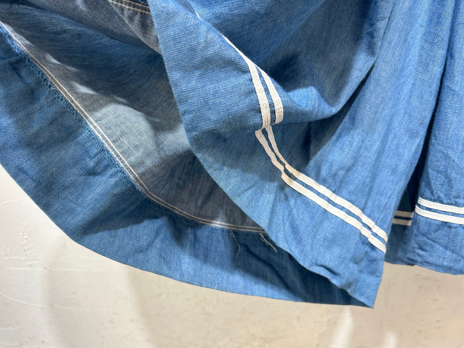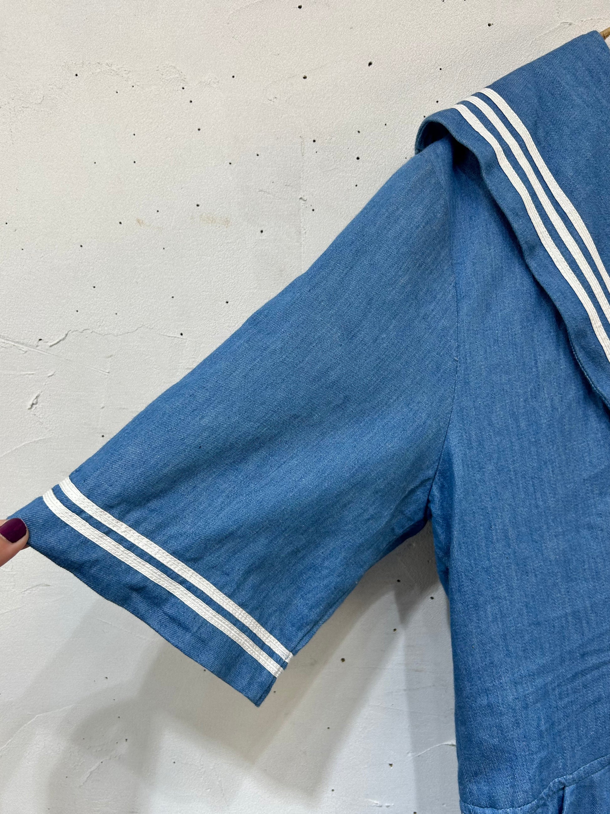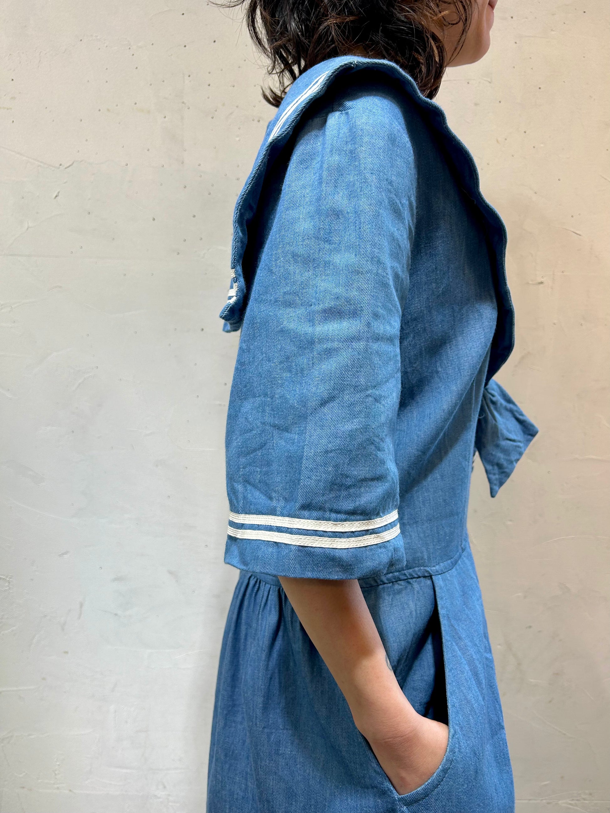 デニムボディにホワイトのラインが入ったビッグセーラーカラーやリボンがマリンな雰囲気で可愛らしい1着。