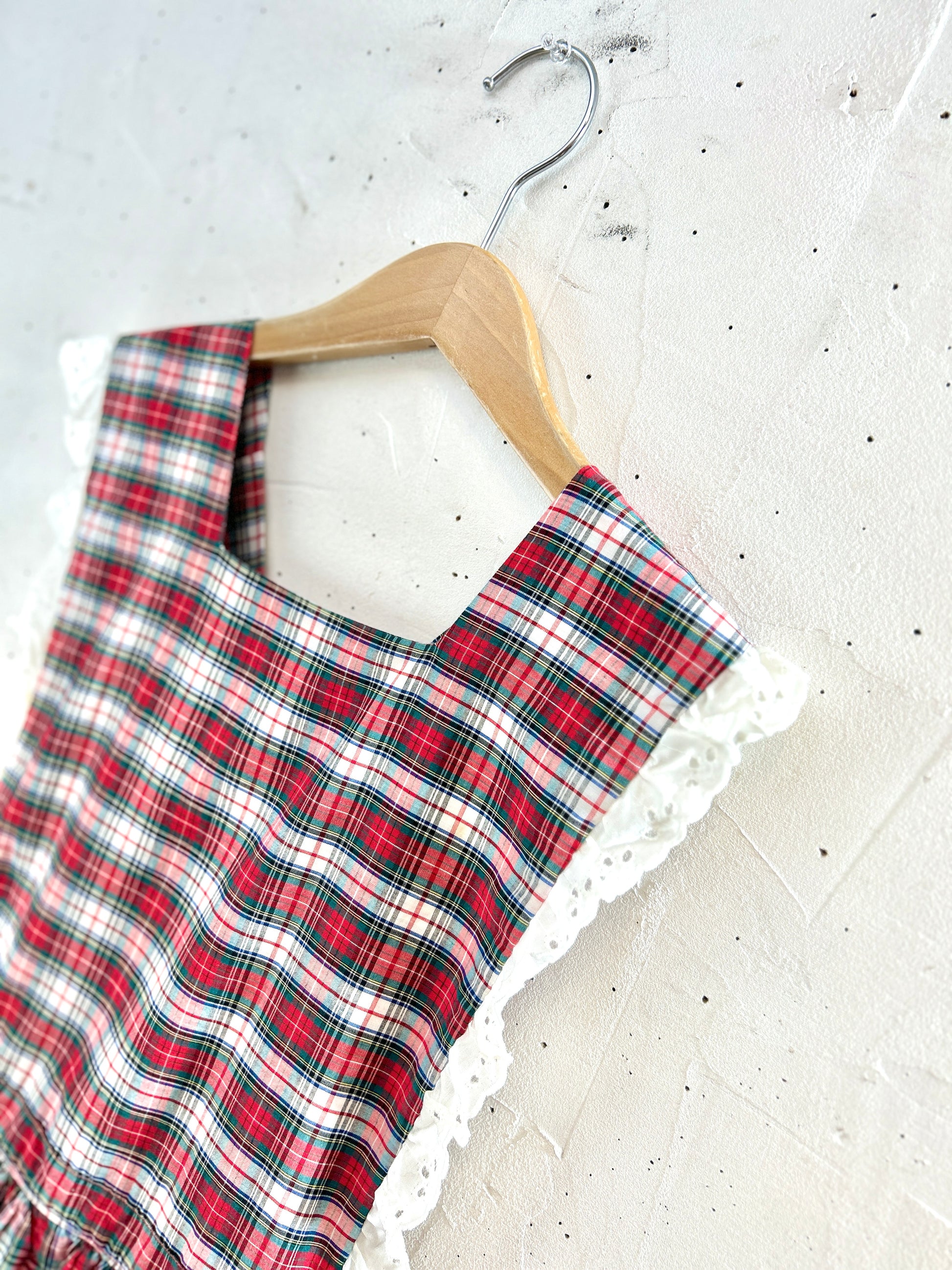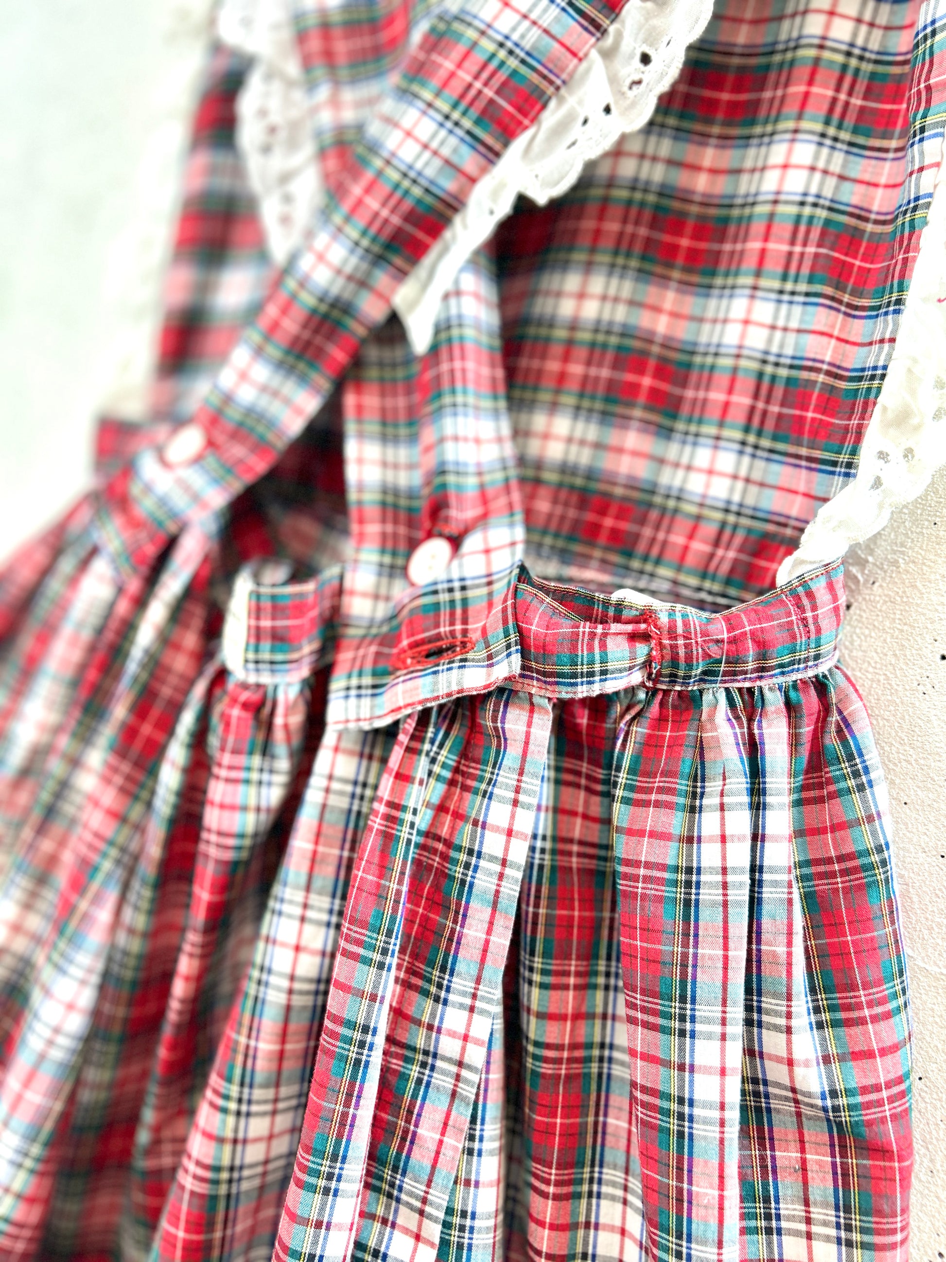 チェックとレースの組み合わせが可愛らしく、ラップワンピースデザインにもなり、レイヤードアイテムとして季節問わずお使い頂けます。