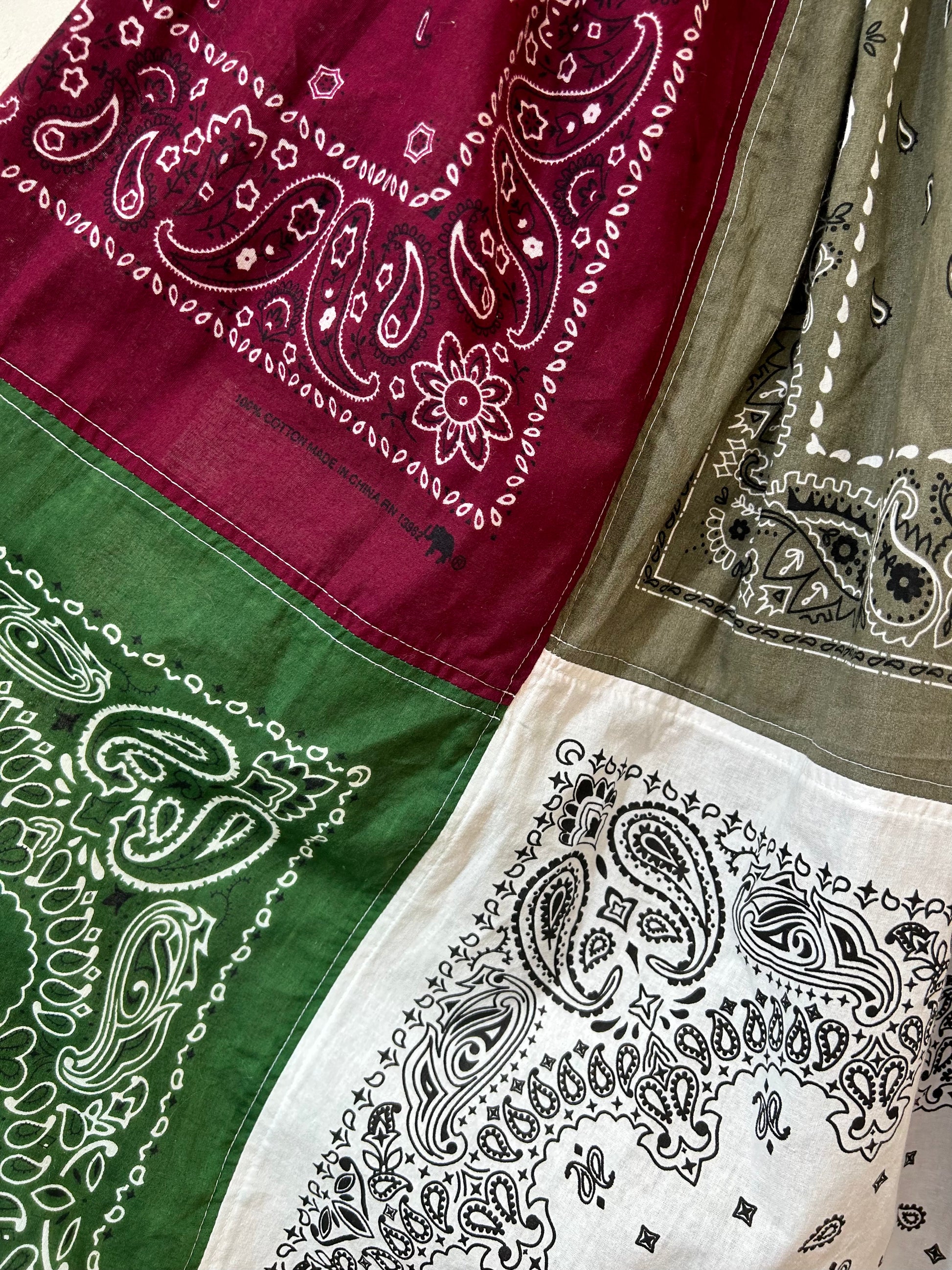 ビンテージのバンダナを1つ1つ丁寧に繋げたハンドメイドならではの温かみ溢れる一着。