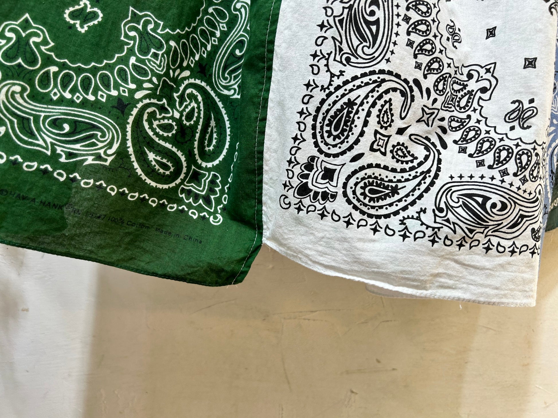 コンディション:ビンテージのバンダナを使用しておりますので、所々シミがございますが、ビンテージにご理解いただいている方でしたら、気にせずご着用頂ける程度かと思われます。