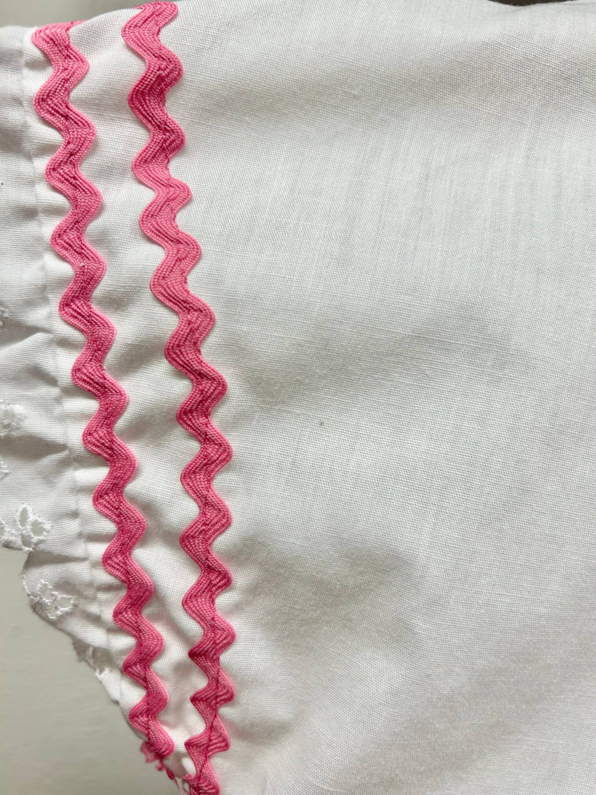 ホワイトボディに、ピンクのヤマミチテープやボタンが映え可愛らしい一着。