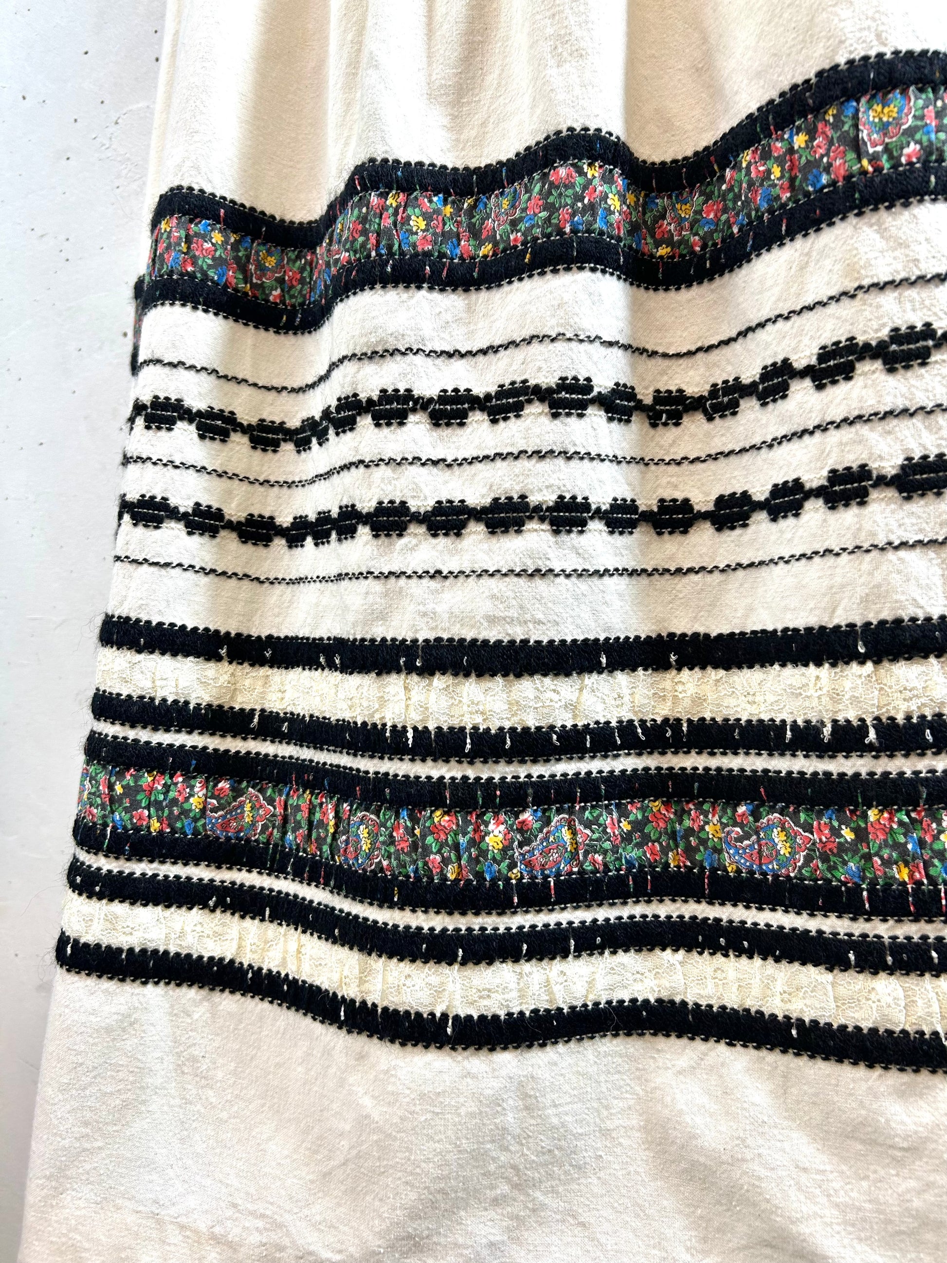 size:表記不明、身幅41cm、ウエスト74cm、ウエスト〜裾68cm、着丈106.5cm(肩上から採寸)