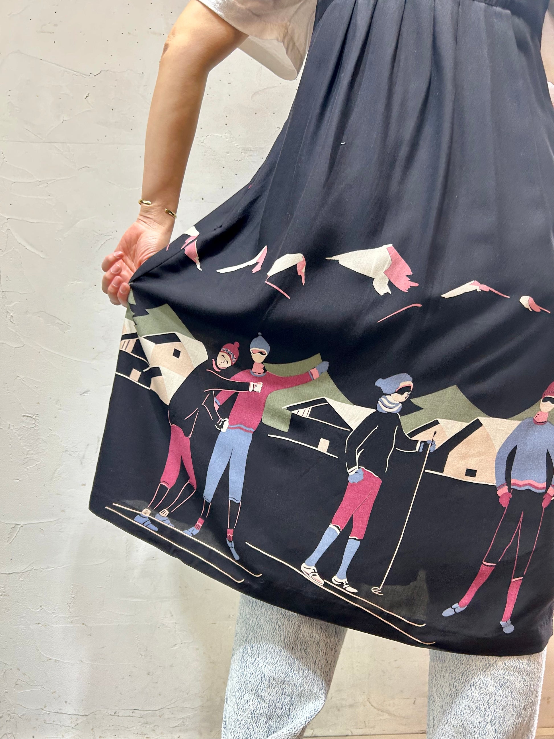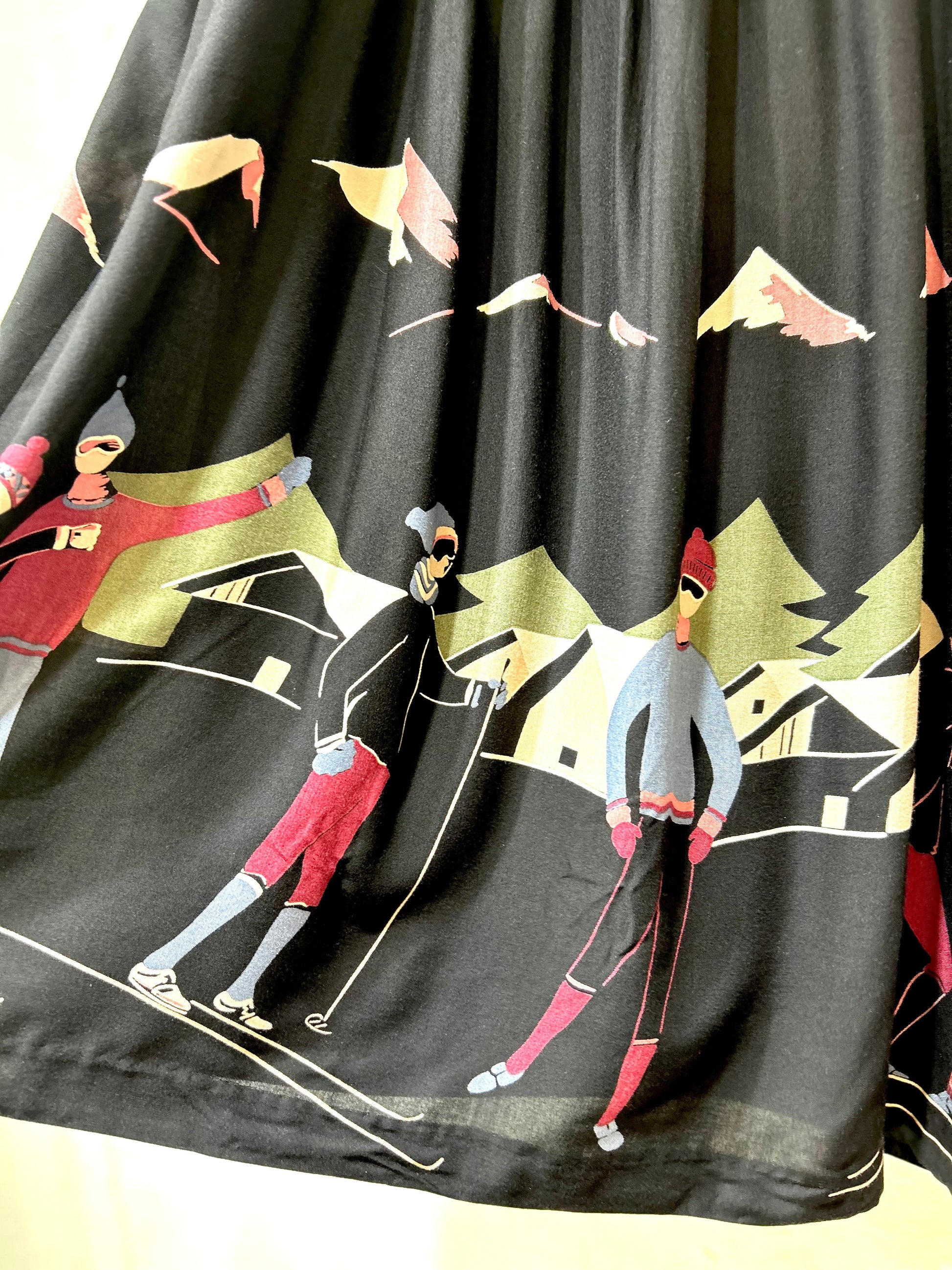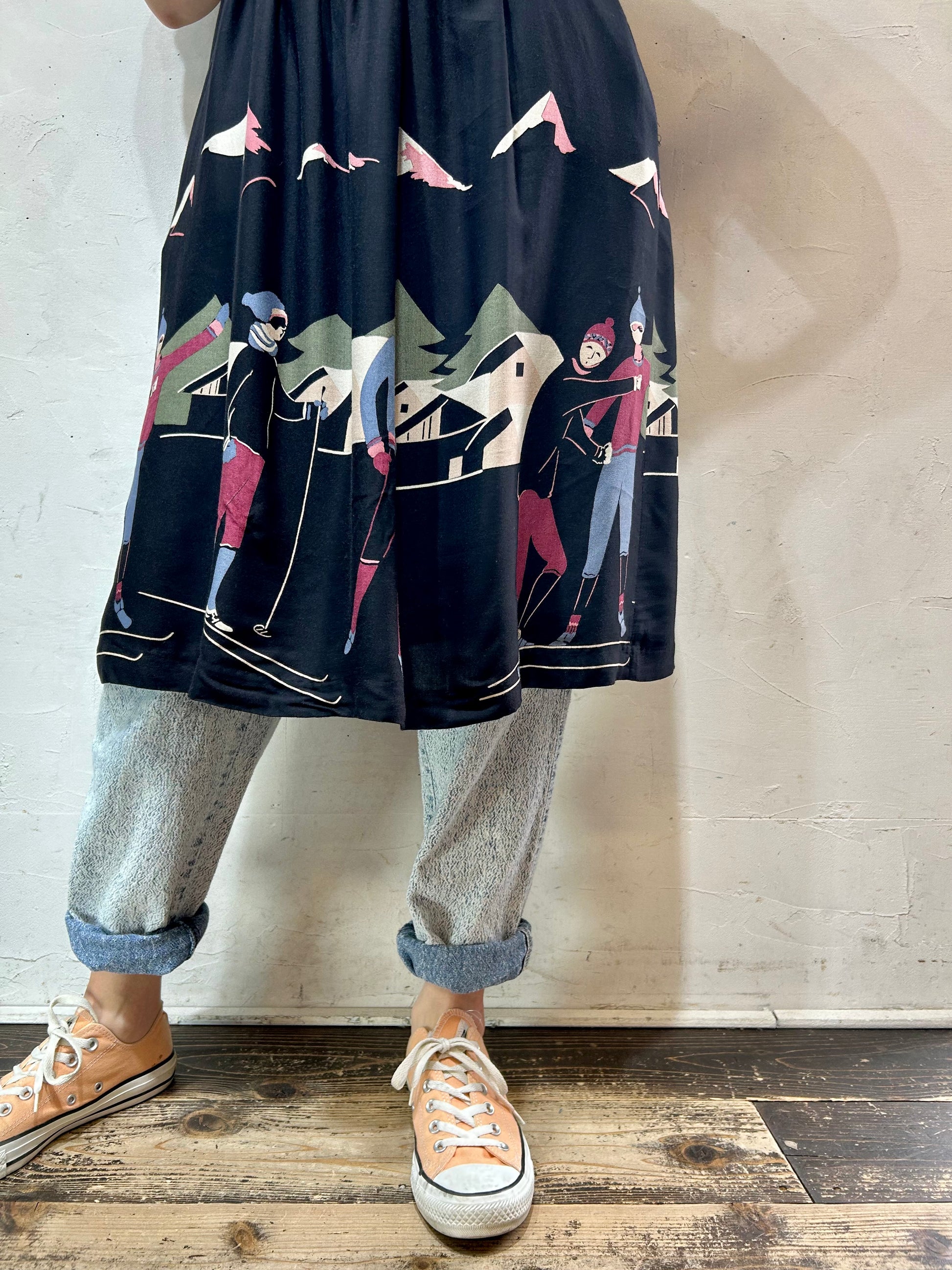 ゆるいタッチのスキーヤーのプリントがユニークな一着。