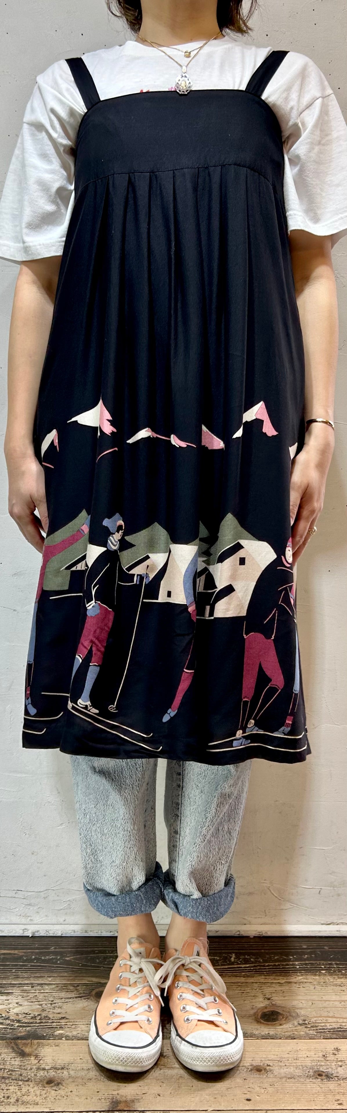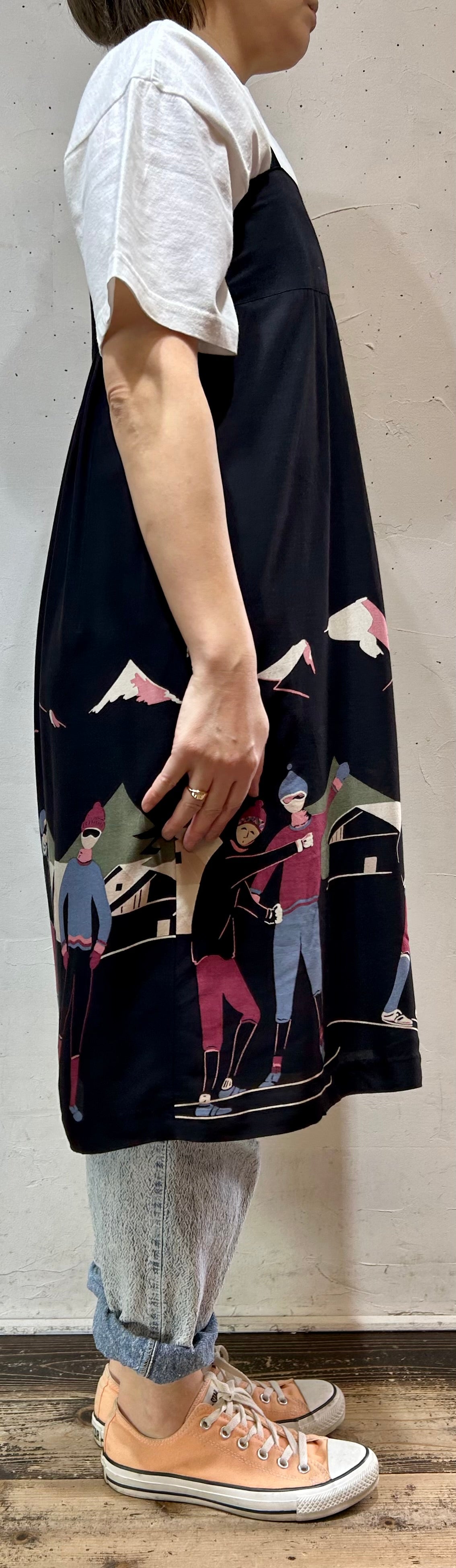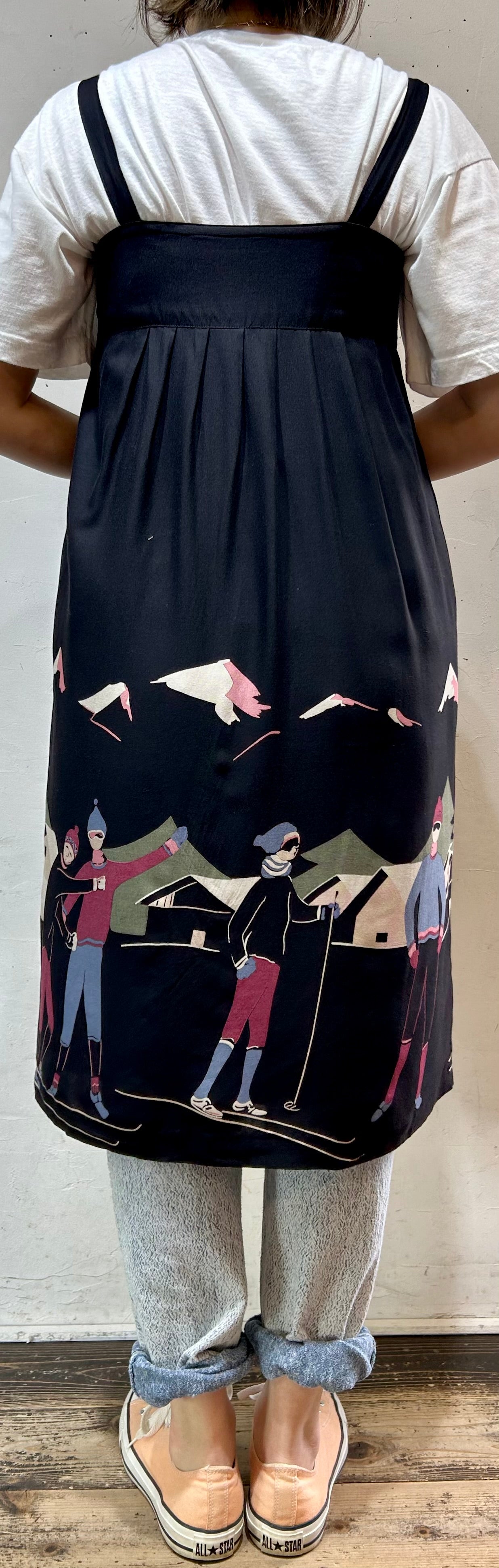 ゆるいタッチのスキーヤーのプリントがユニークな一着。