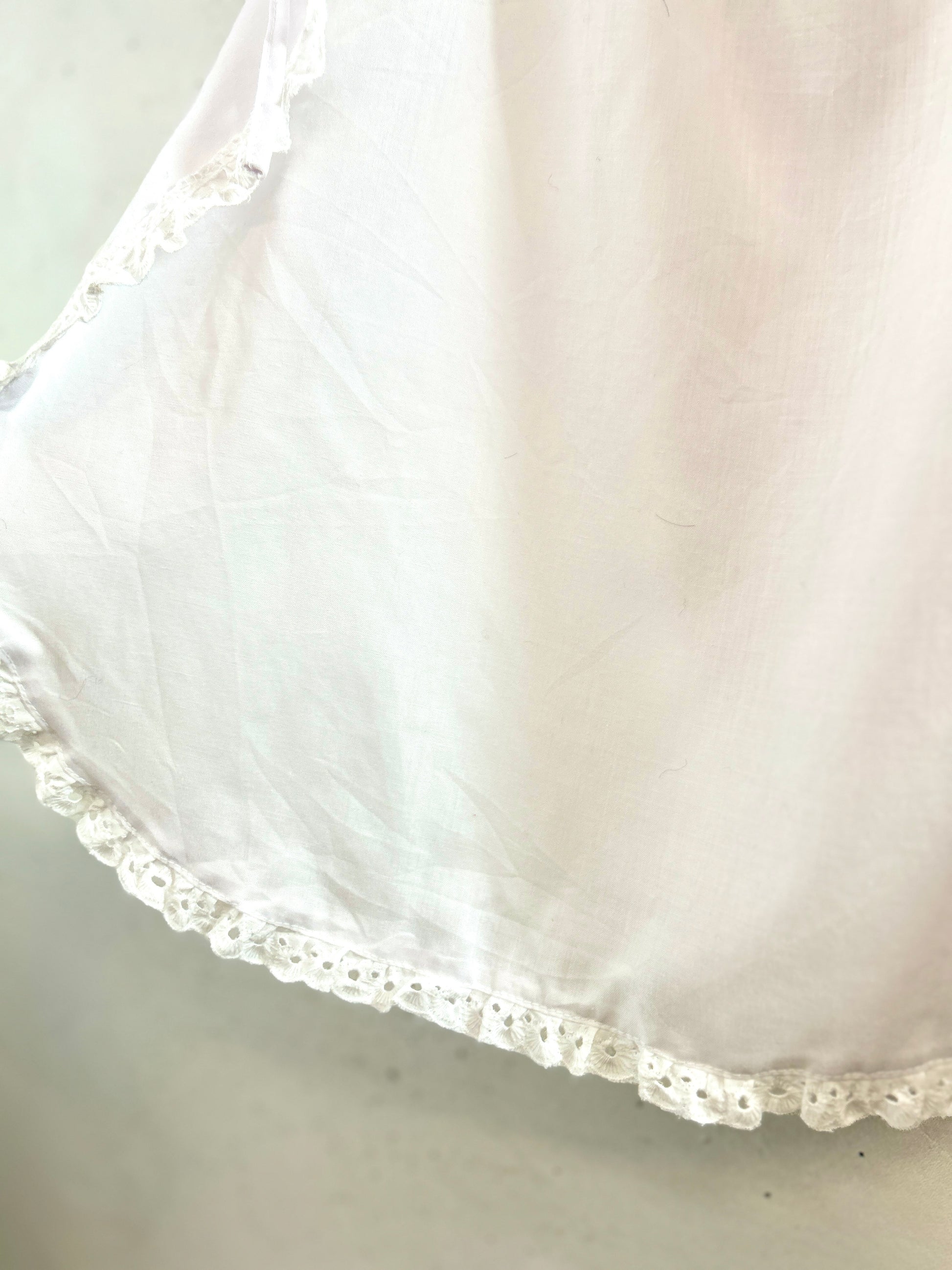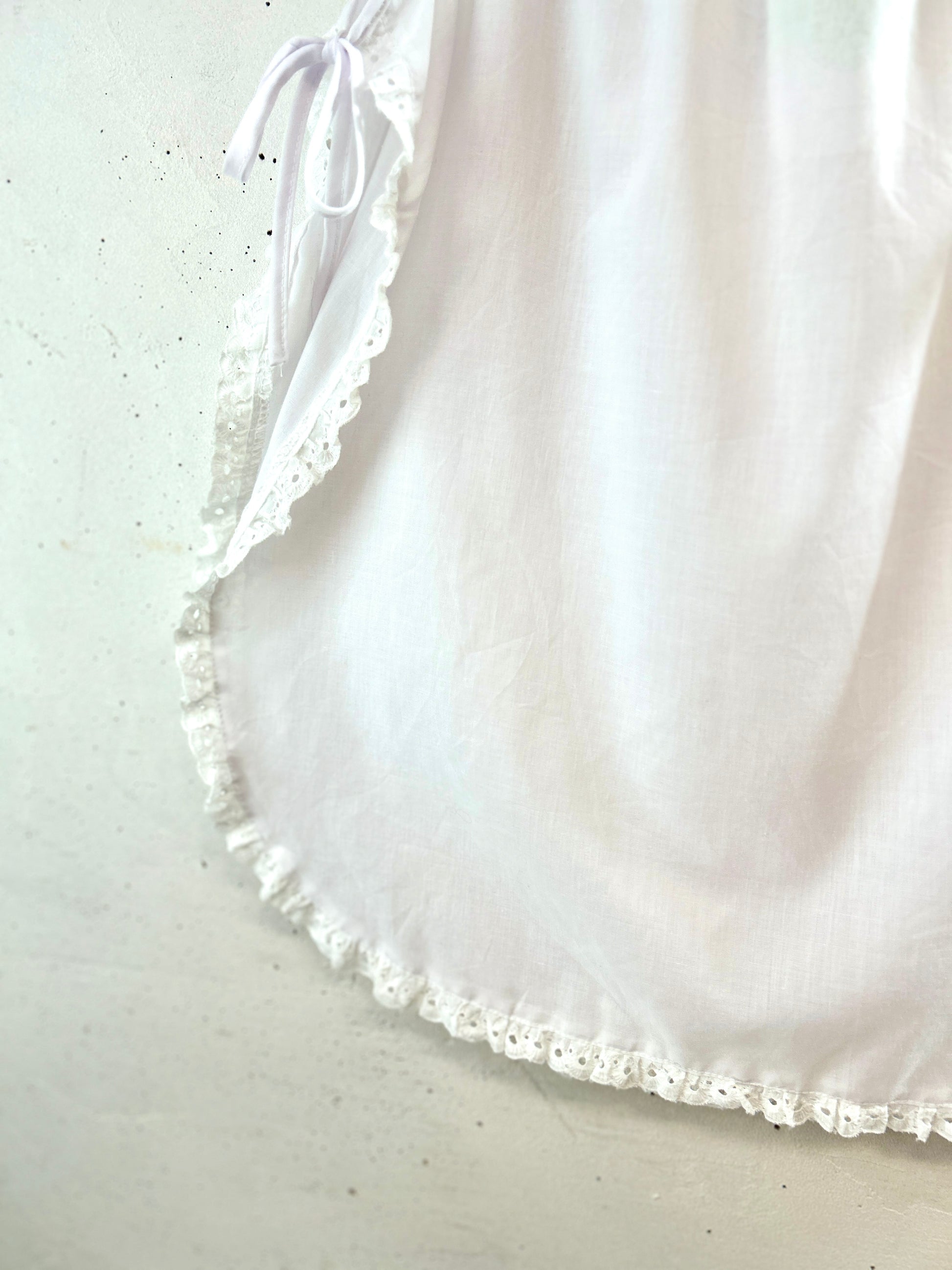ホワイトボディの繊細なアイレットレースがアクセントになったアイテム。
