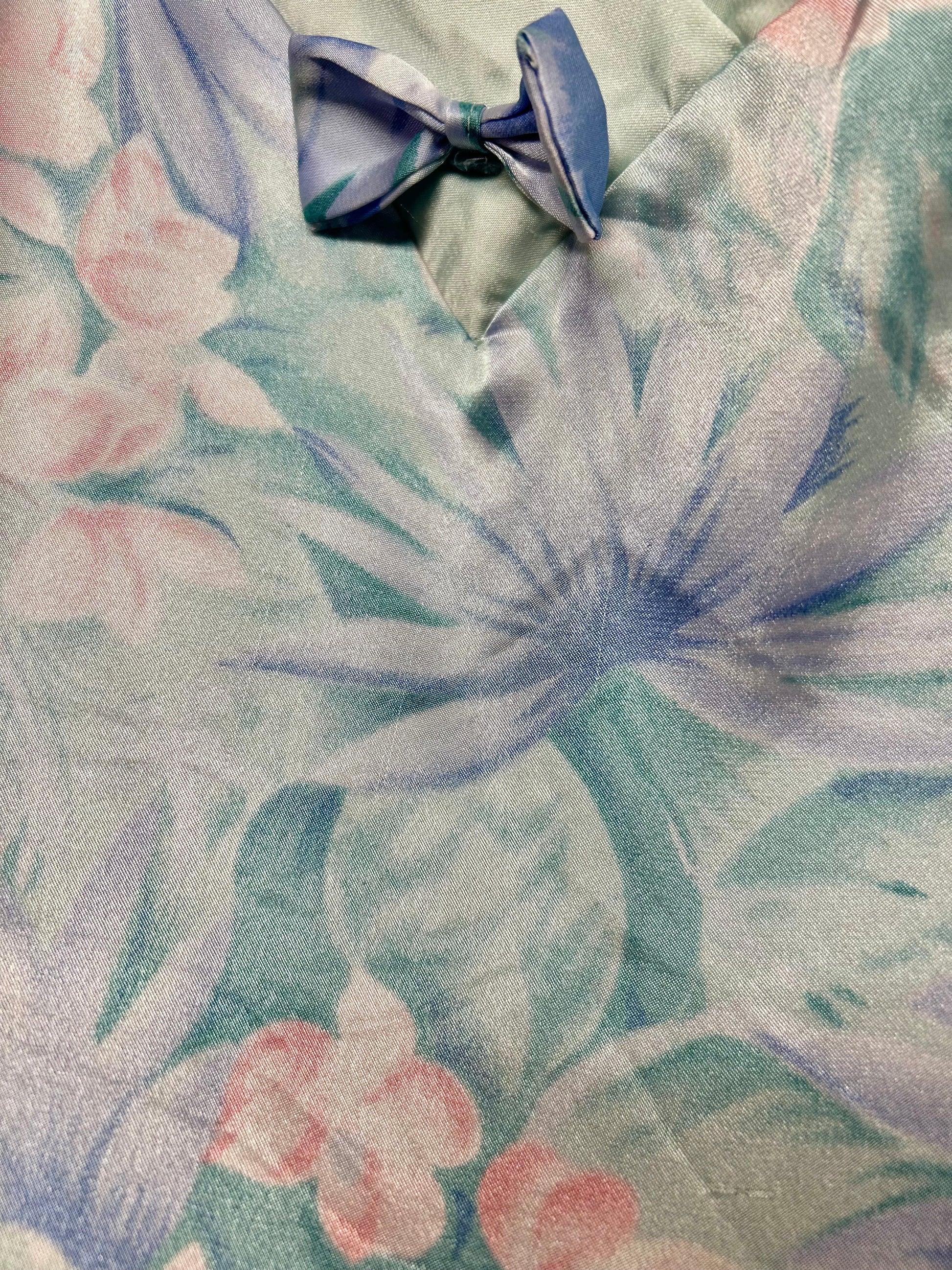 淡いカラーリングのフラワープリントが可愛らしいアイテム。