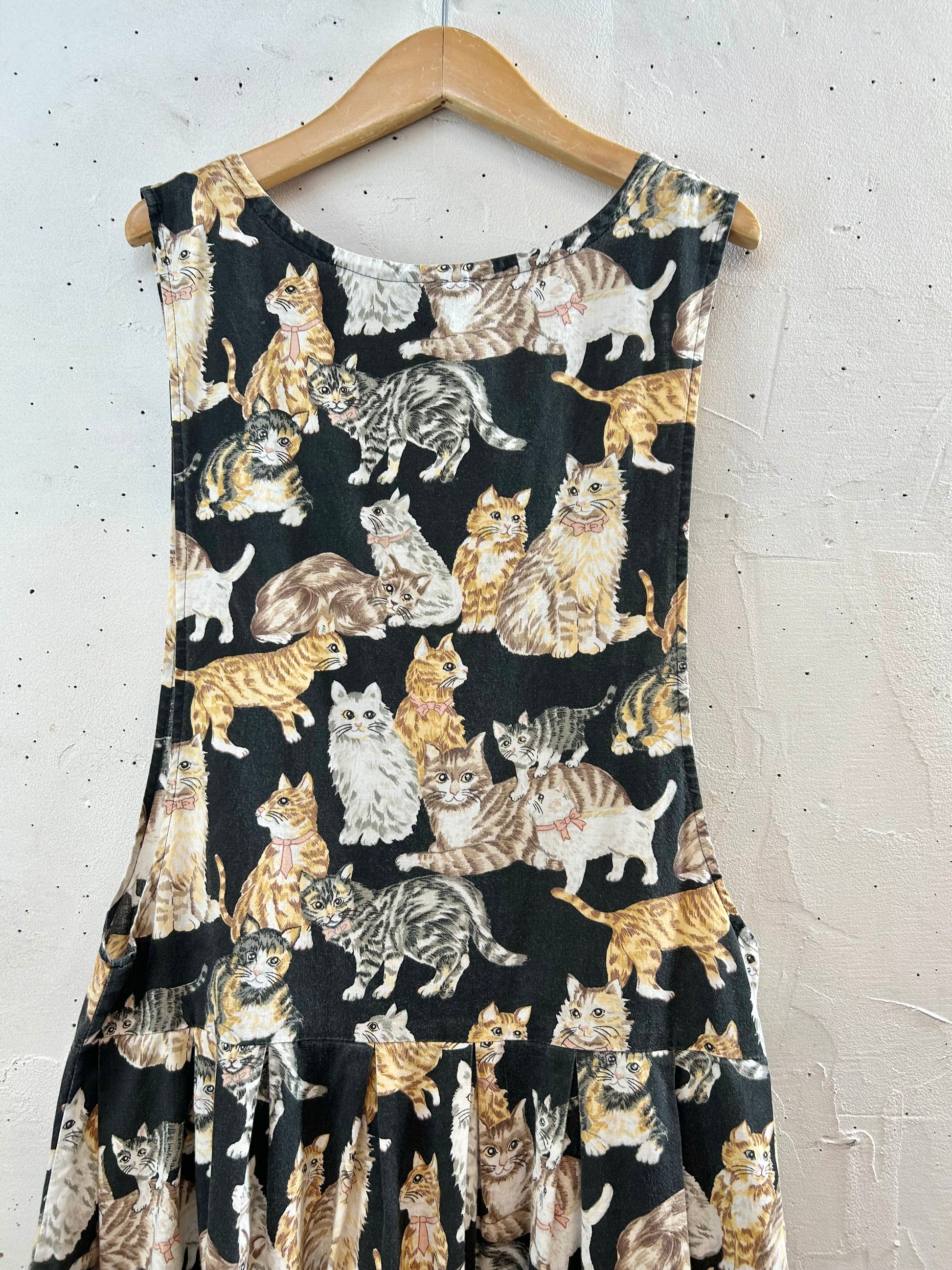 Vintage Cat Pattern Over Dress MADE IN USA [E30175]