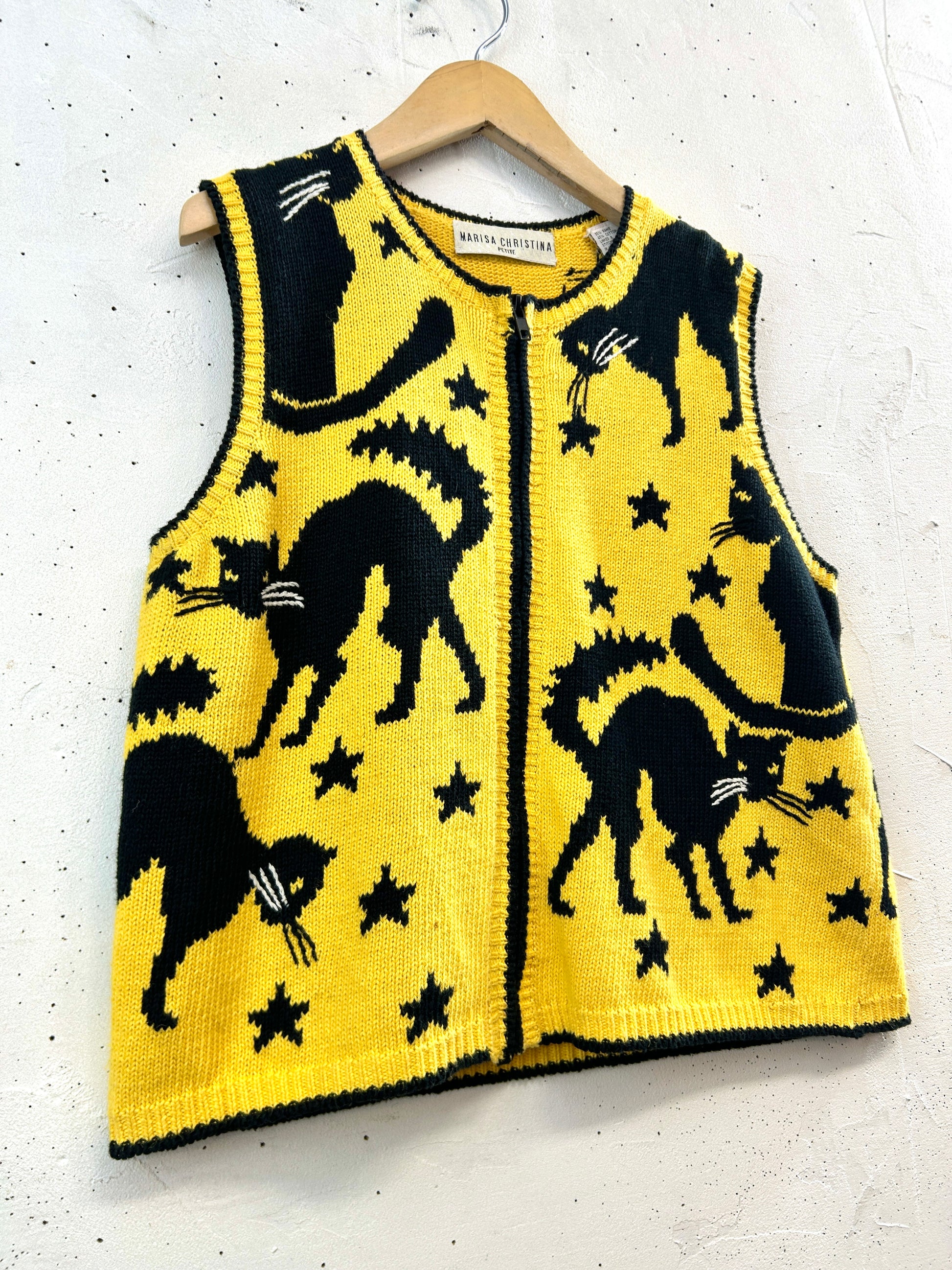 猫のヒゲは手刺繍で施されており、猫の雰囲気や背中まで続くデザインも遊び心が満載でとても可愛いベストです。