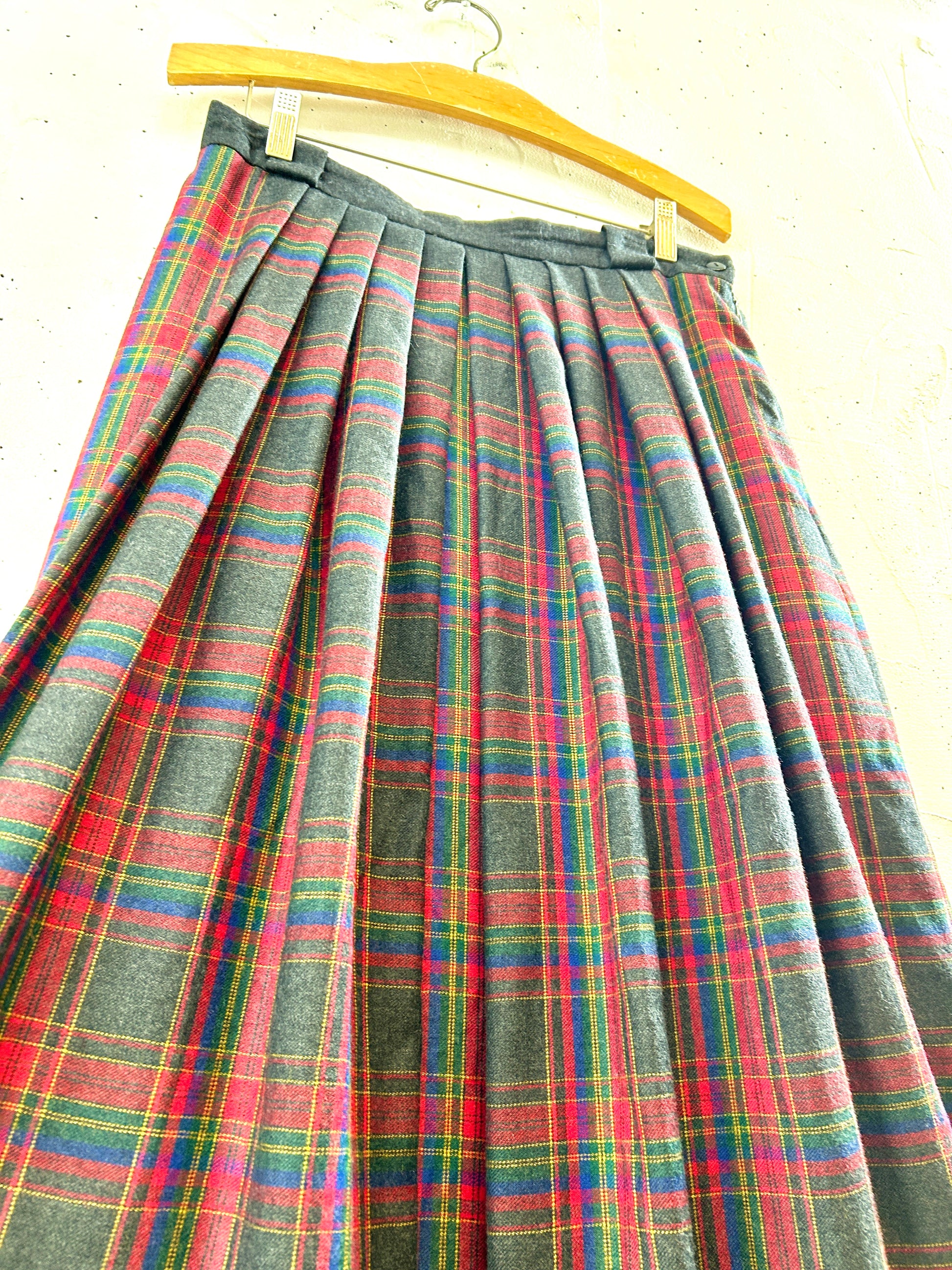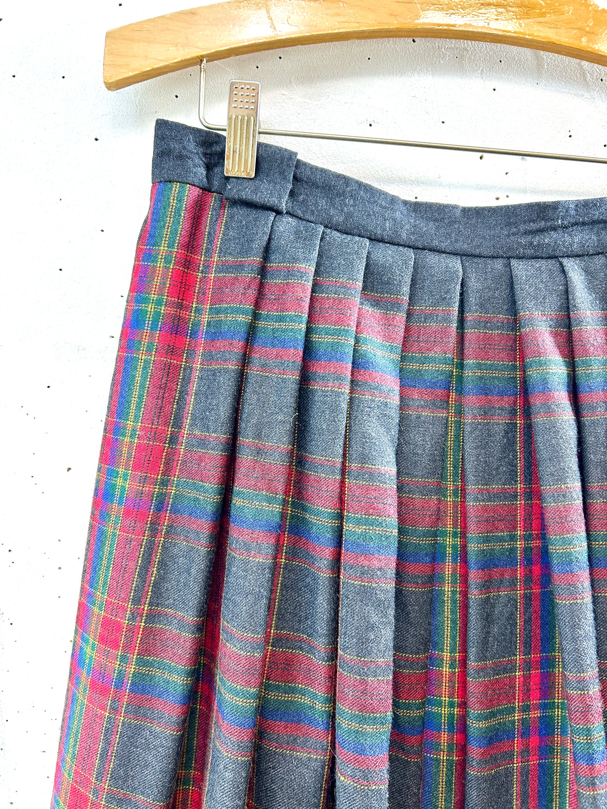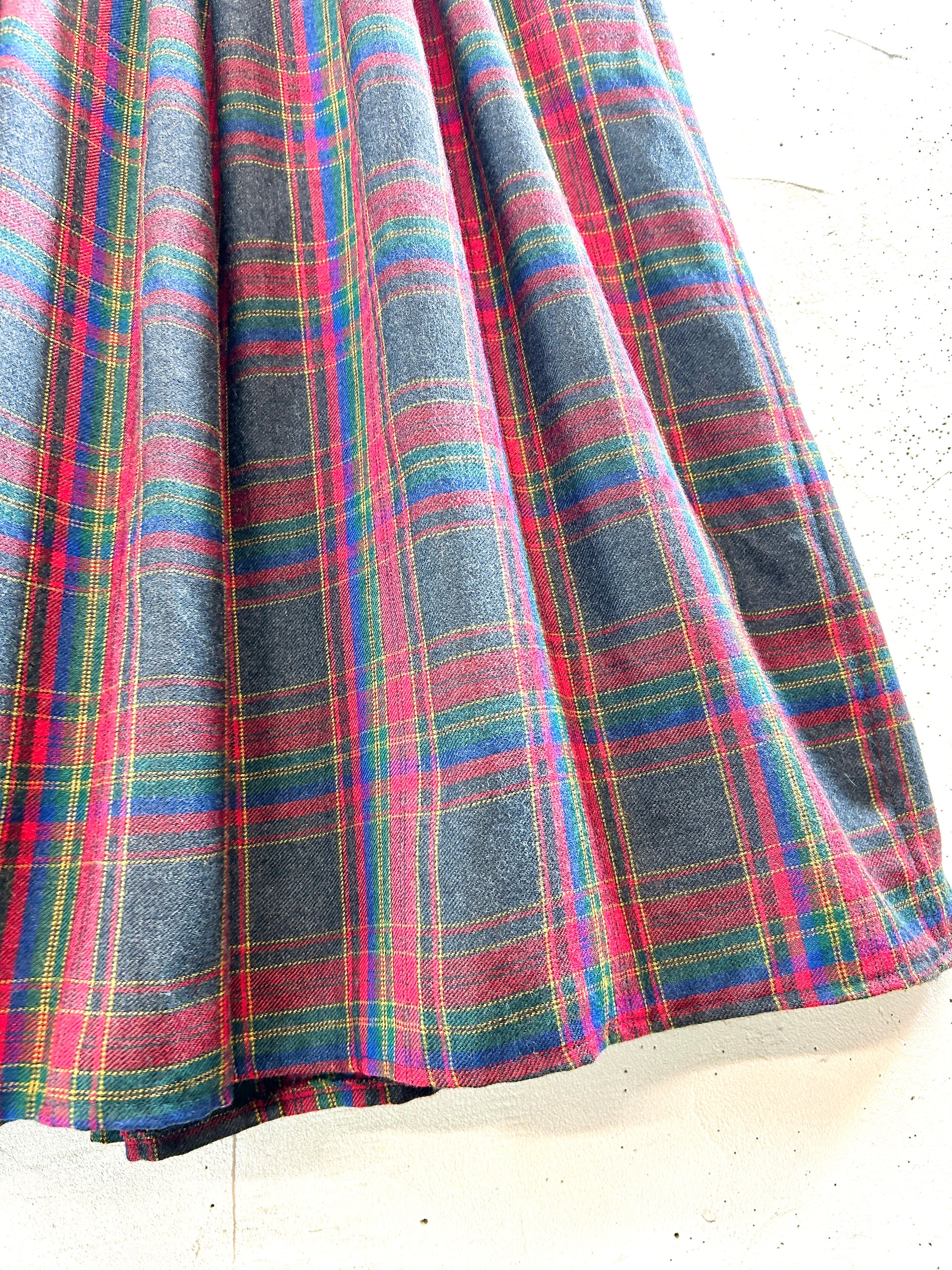グレーベースに赤、黄、緑の代表的なタータンチェックで、カラフルながらも落ち着いた印象のチェックスカート。