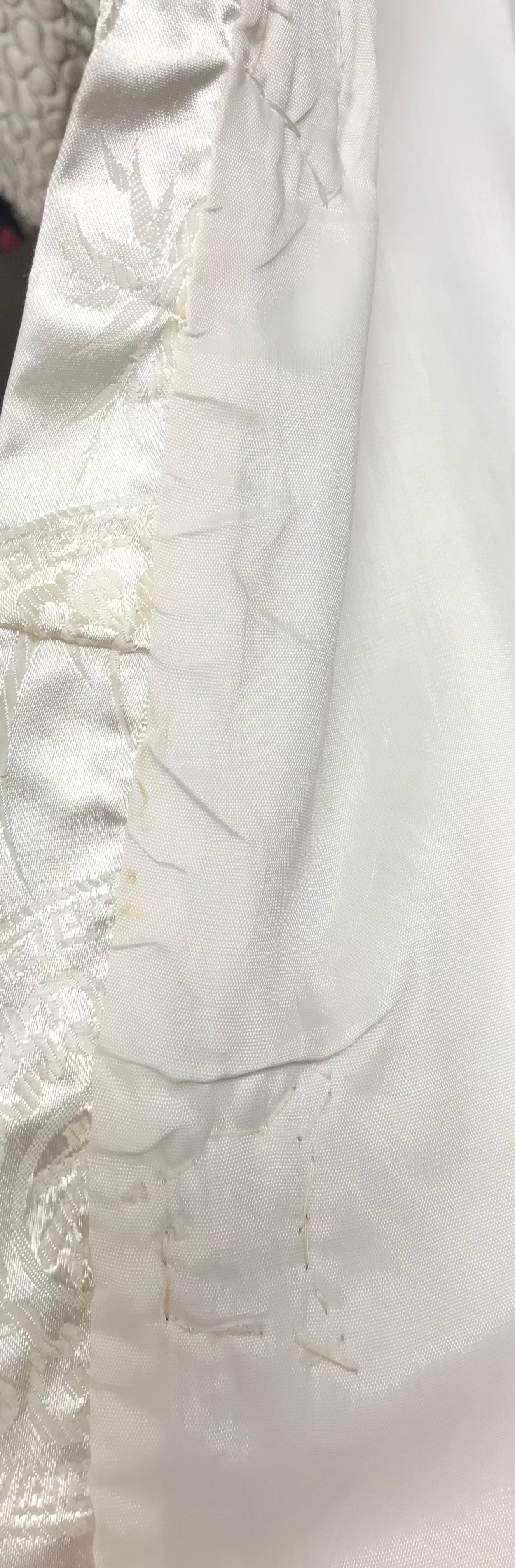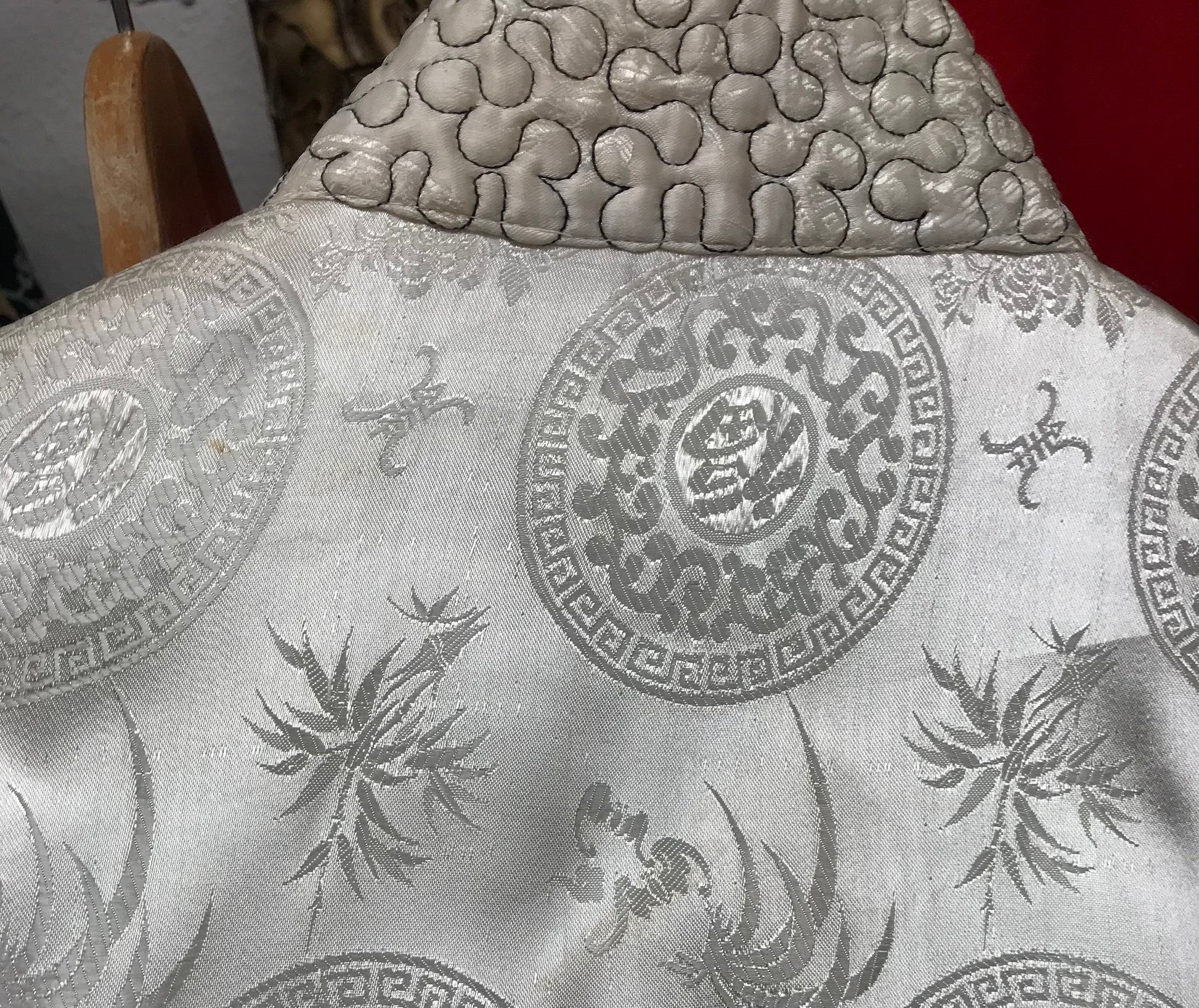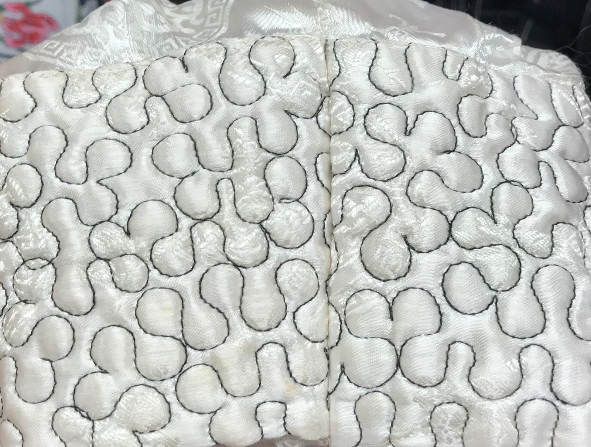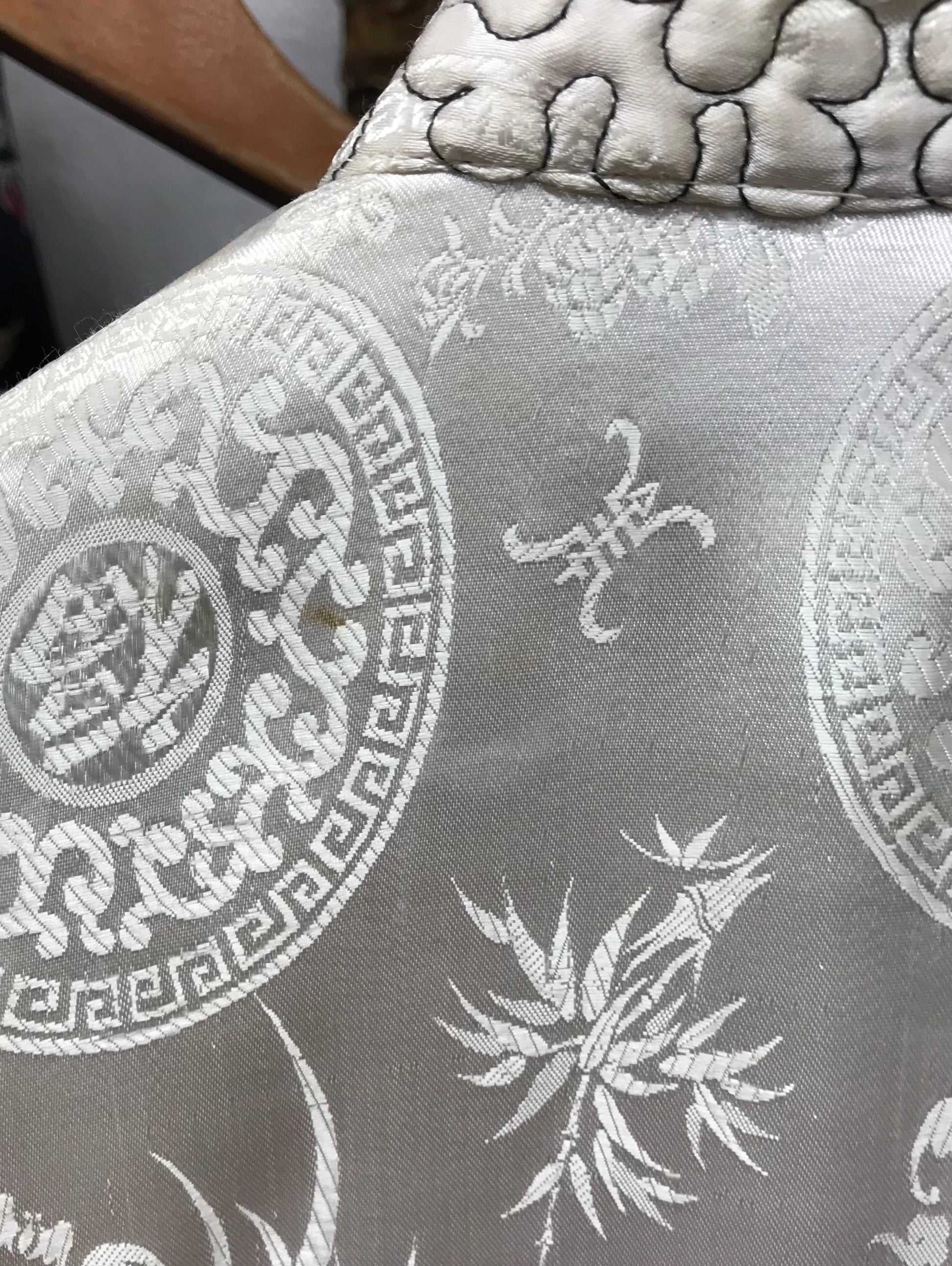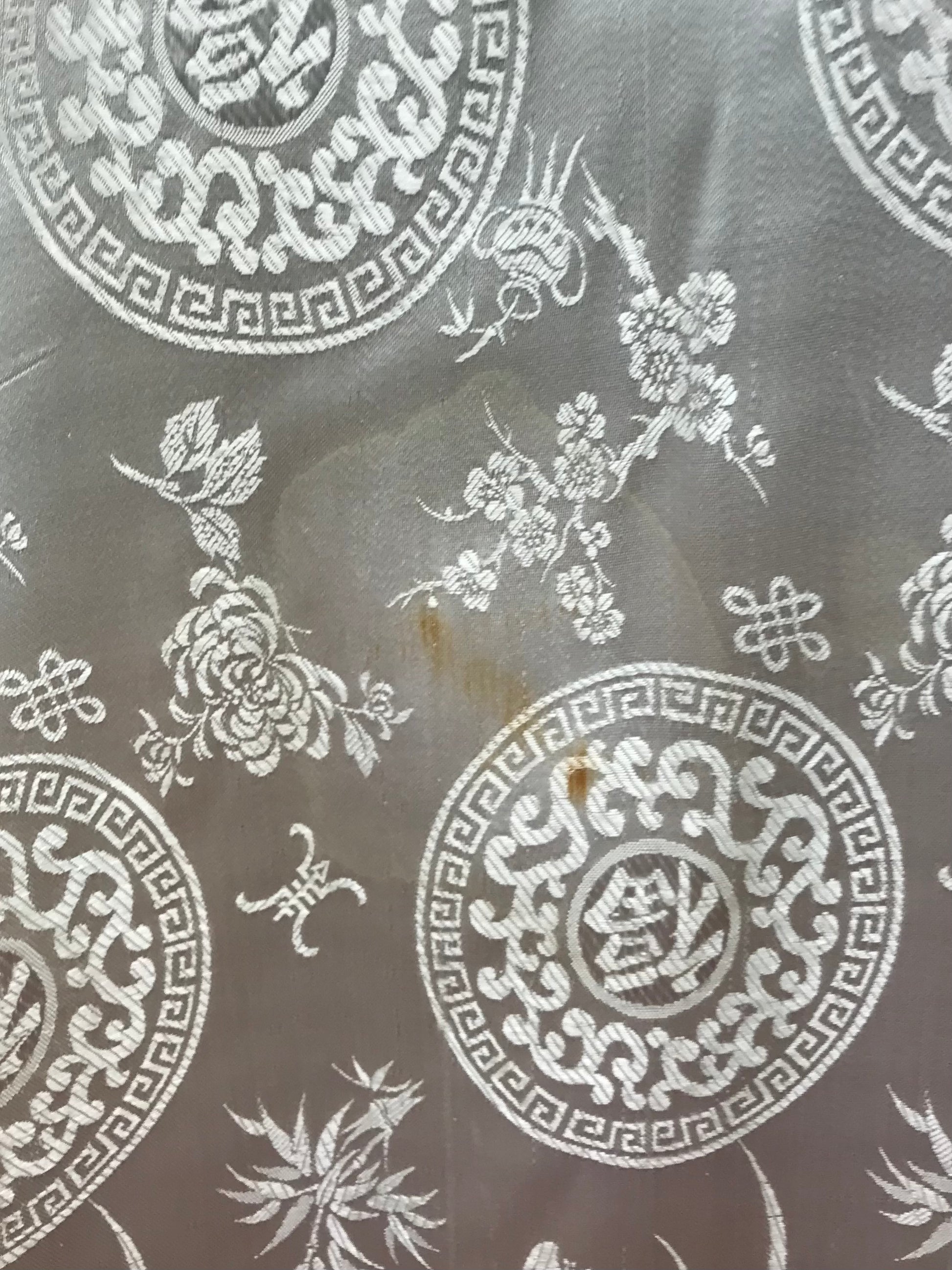 サテンの光沢感と草花の織り模様や、福の文字がデザインされた生地はどこから見ても惚れ惚れする美しさです。