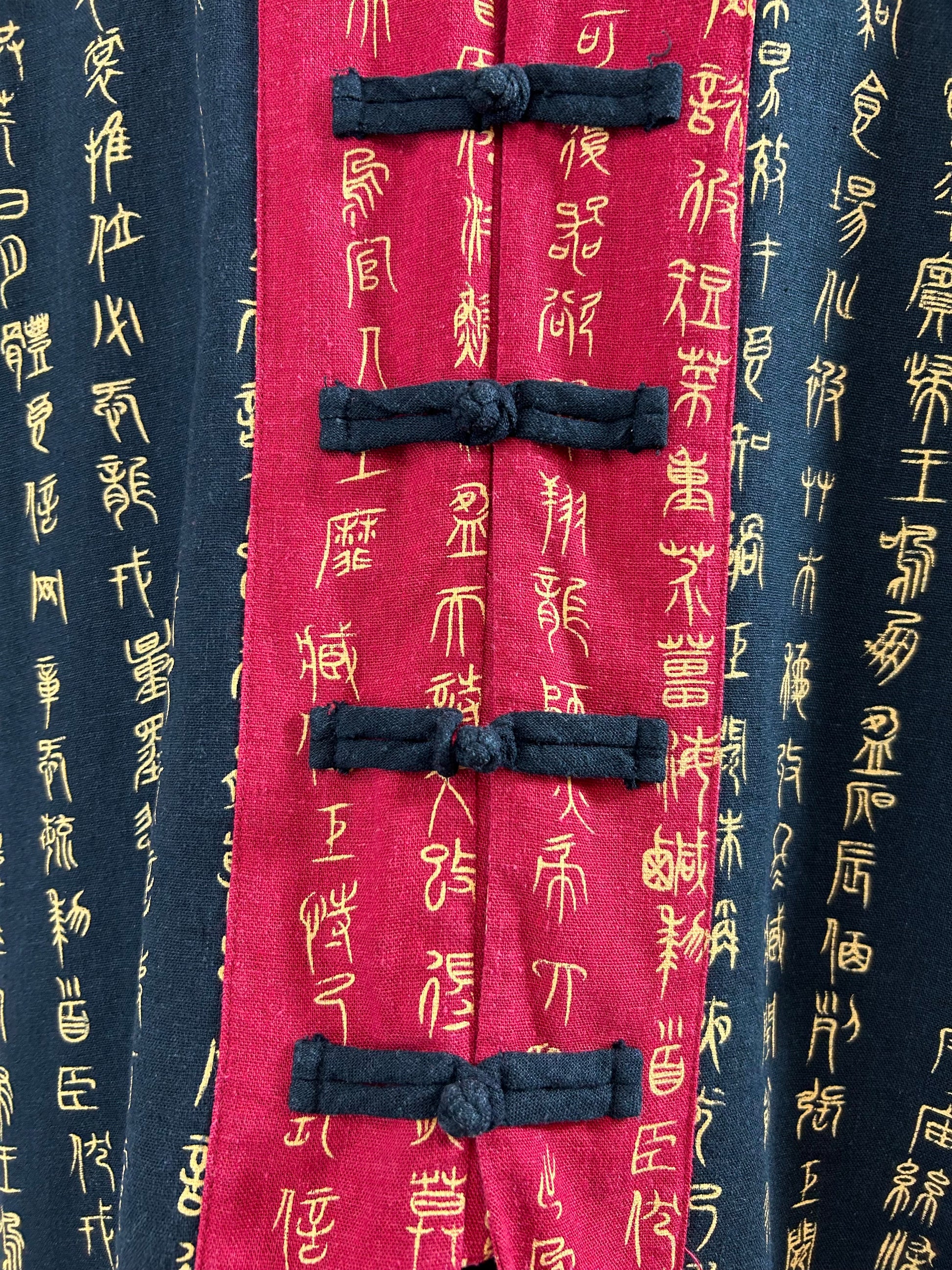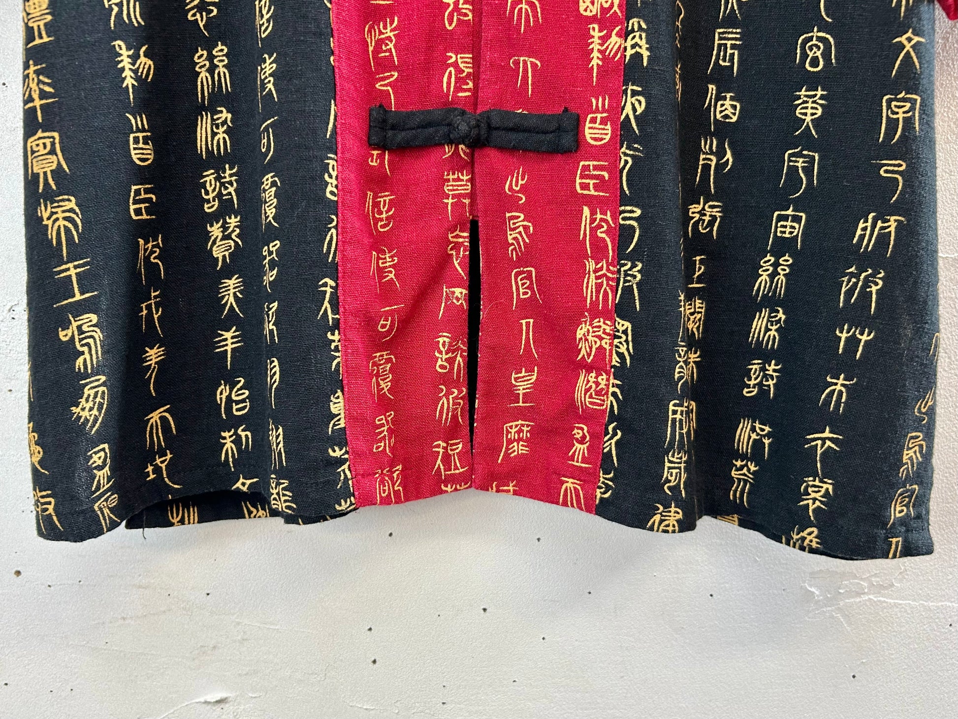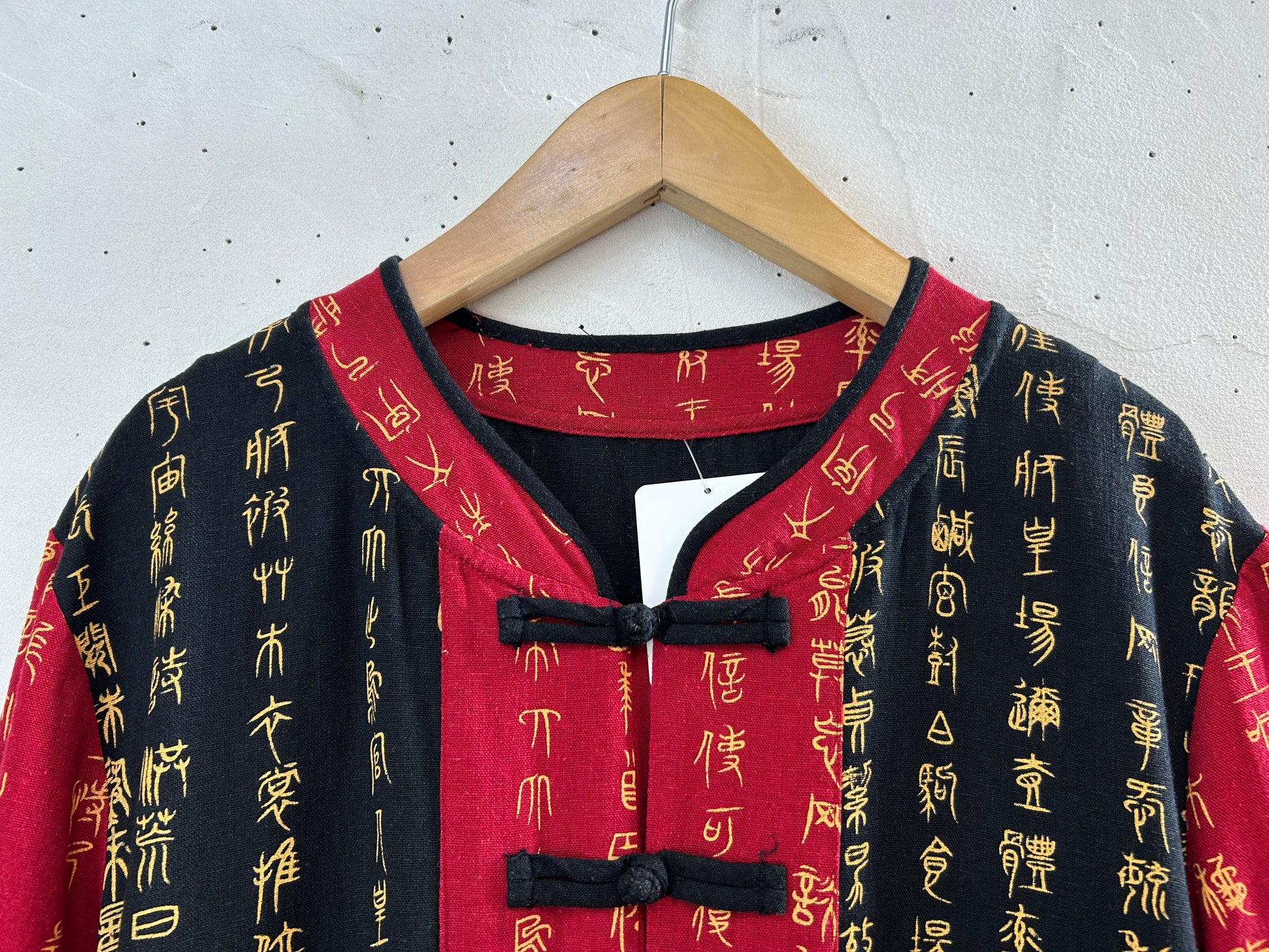 チャイナボタンに漢字プリントのユニークでハイセンスな一着。