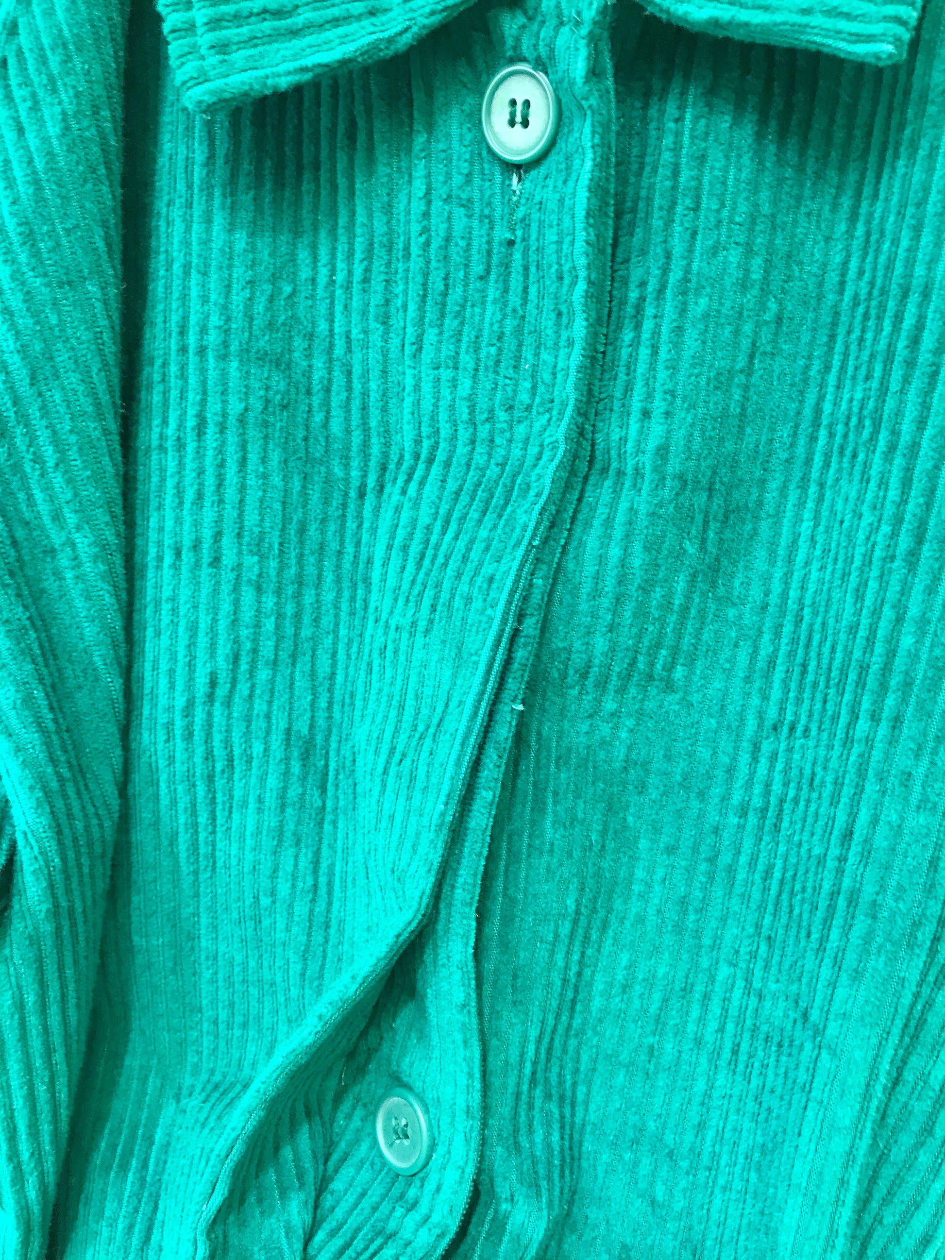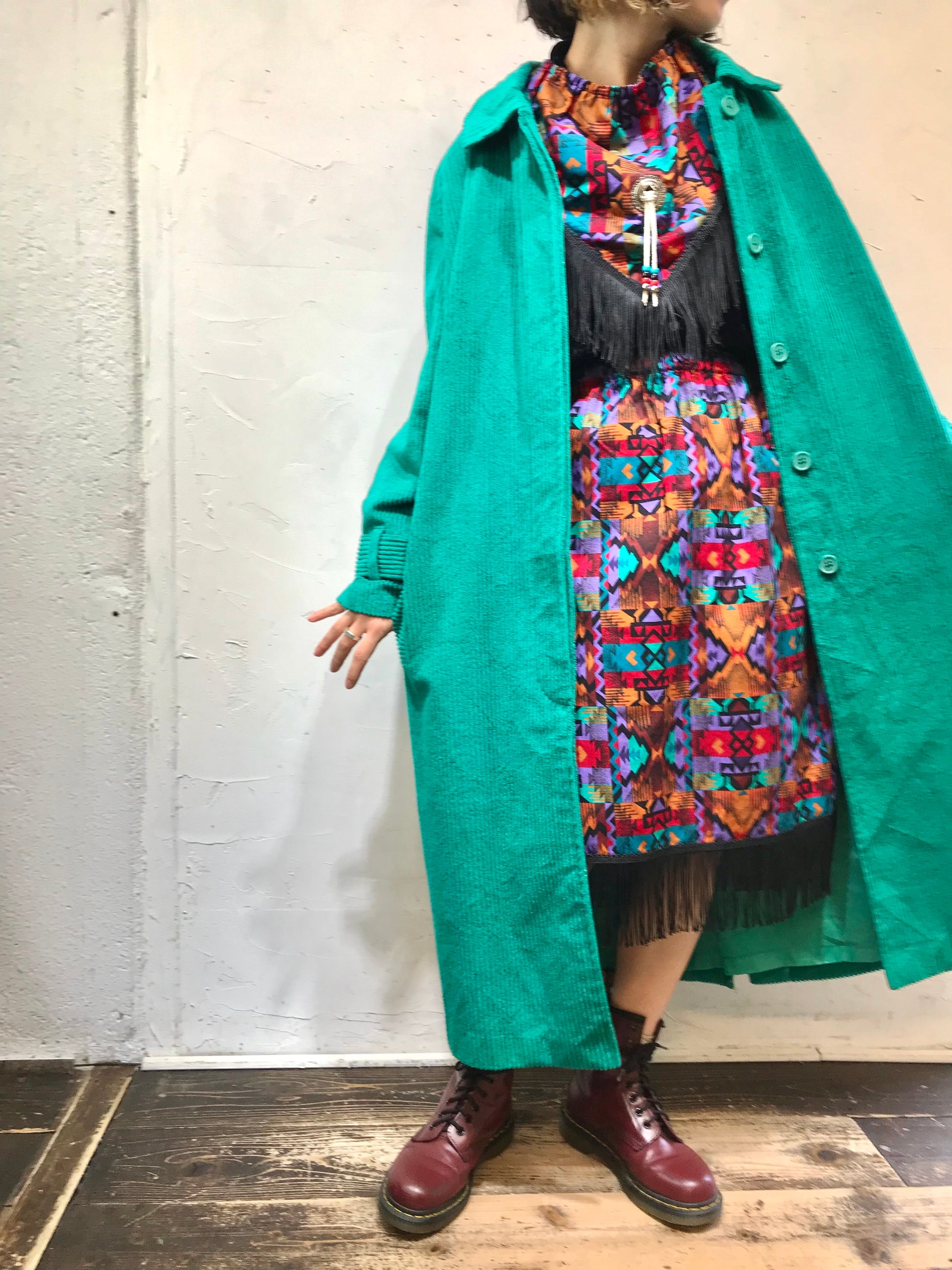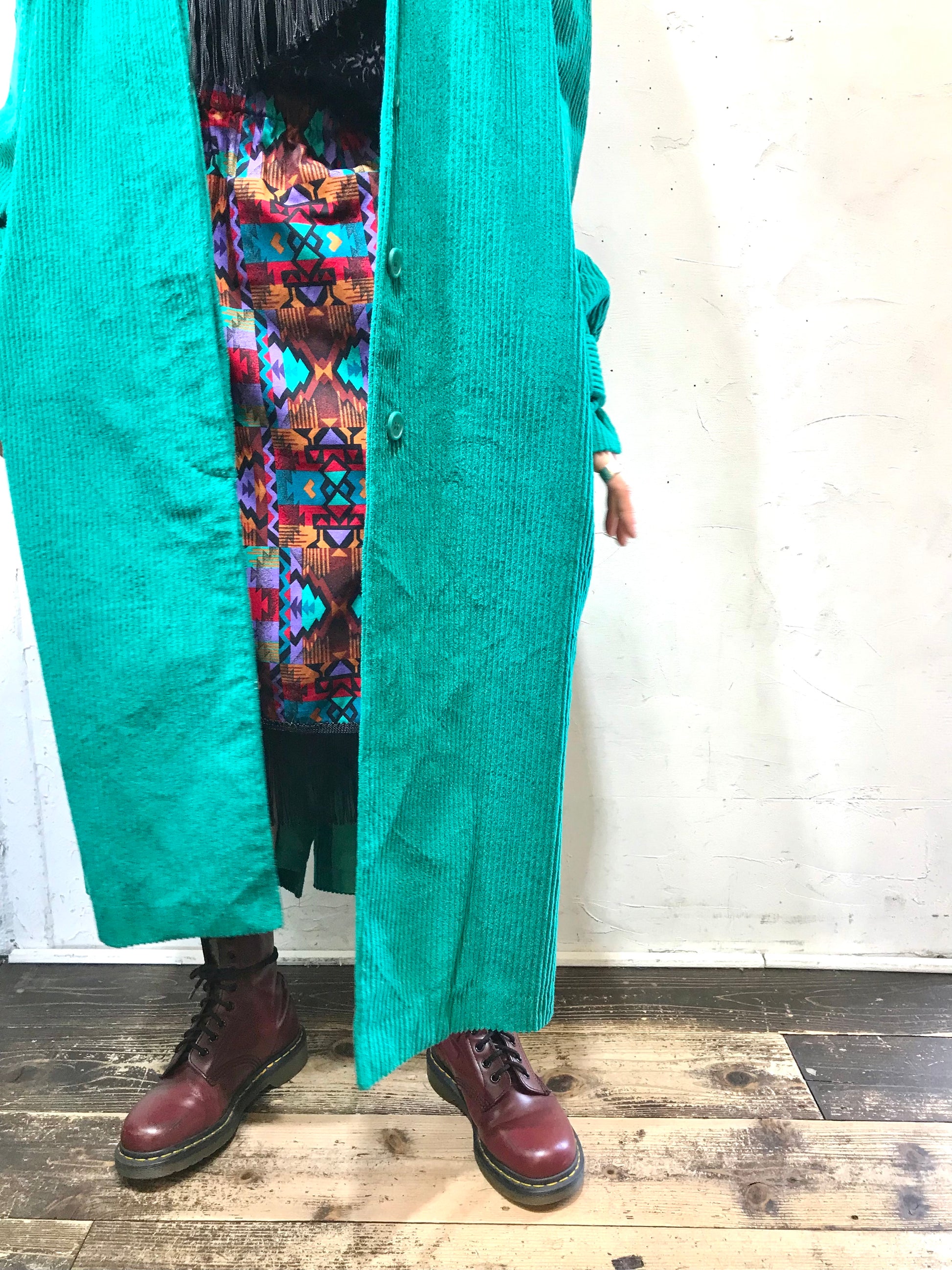 鮮やかなグリーンのコーデュロイボディが主役級に目を惹く雰囲気抜群の1着。