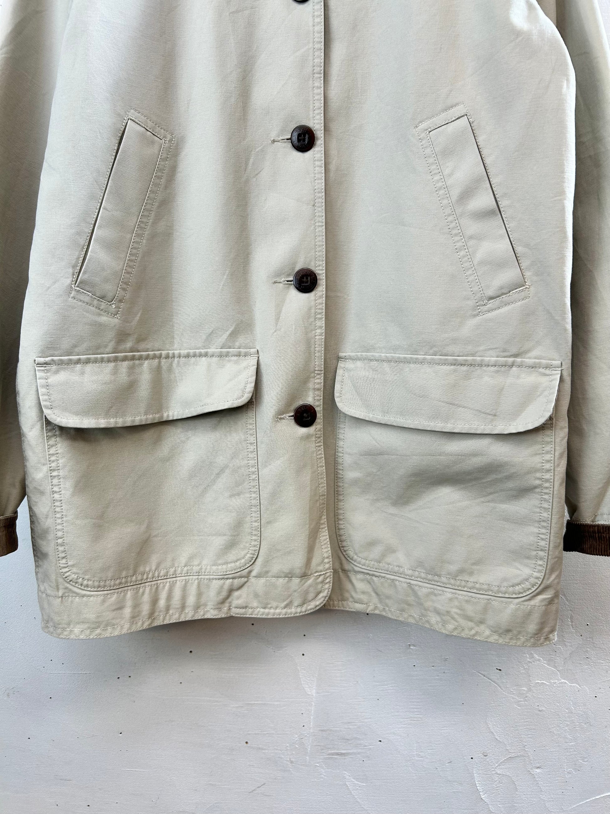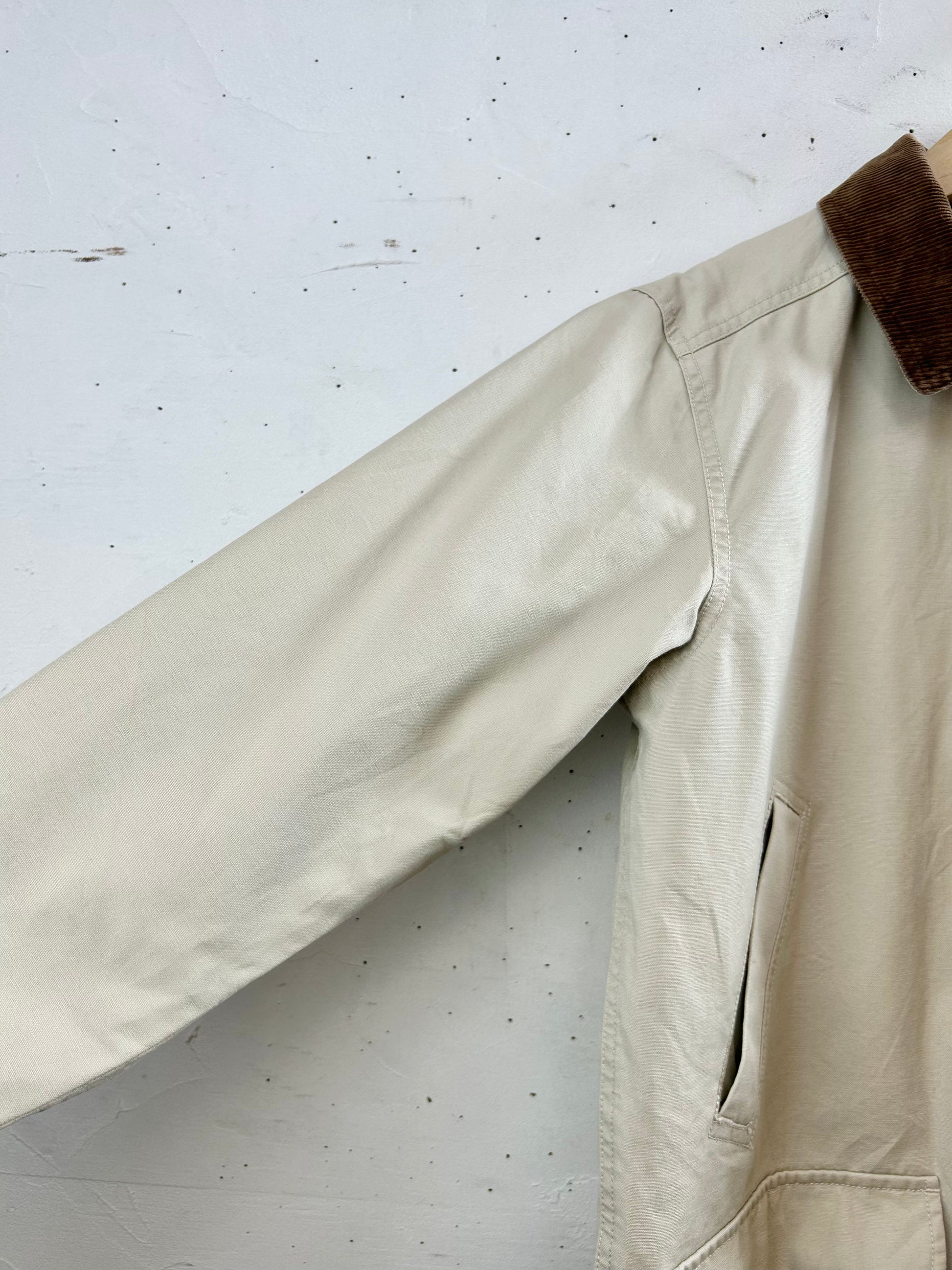 コーディロイの襟と袖口、使いやすいミディアム丈など、1着持って頂くだけで大活躍のアイテムです。
