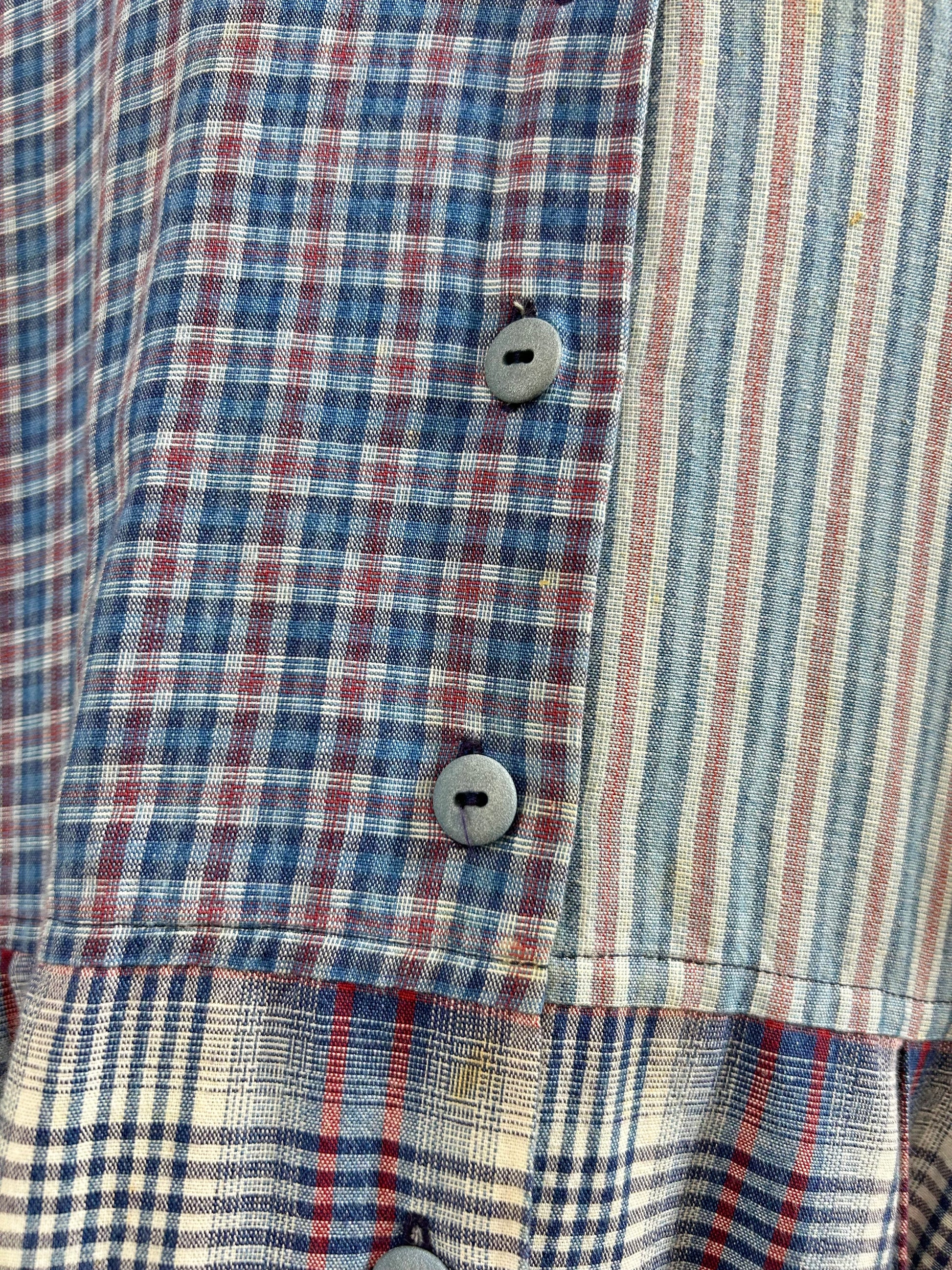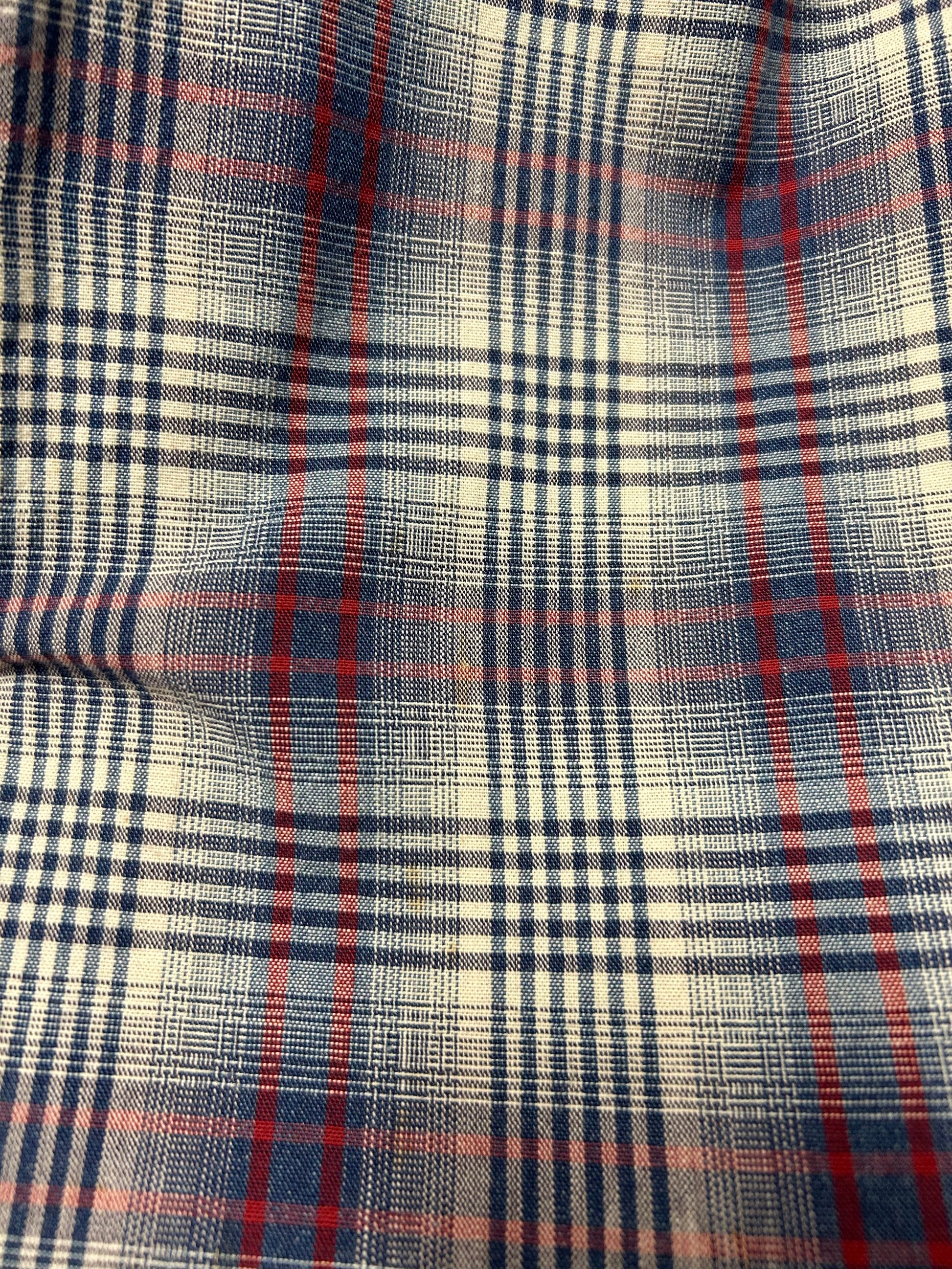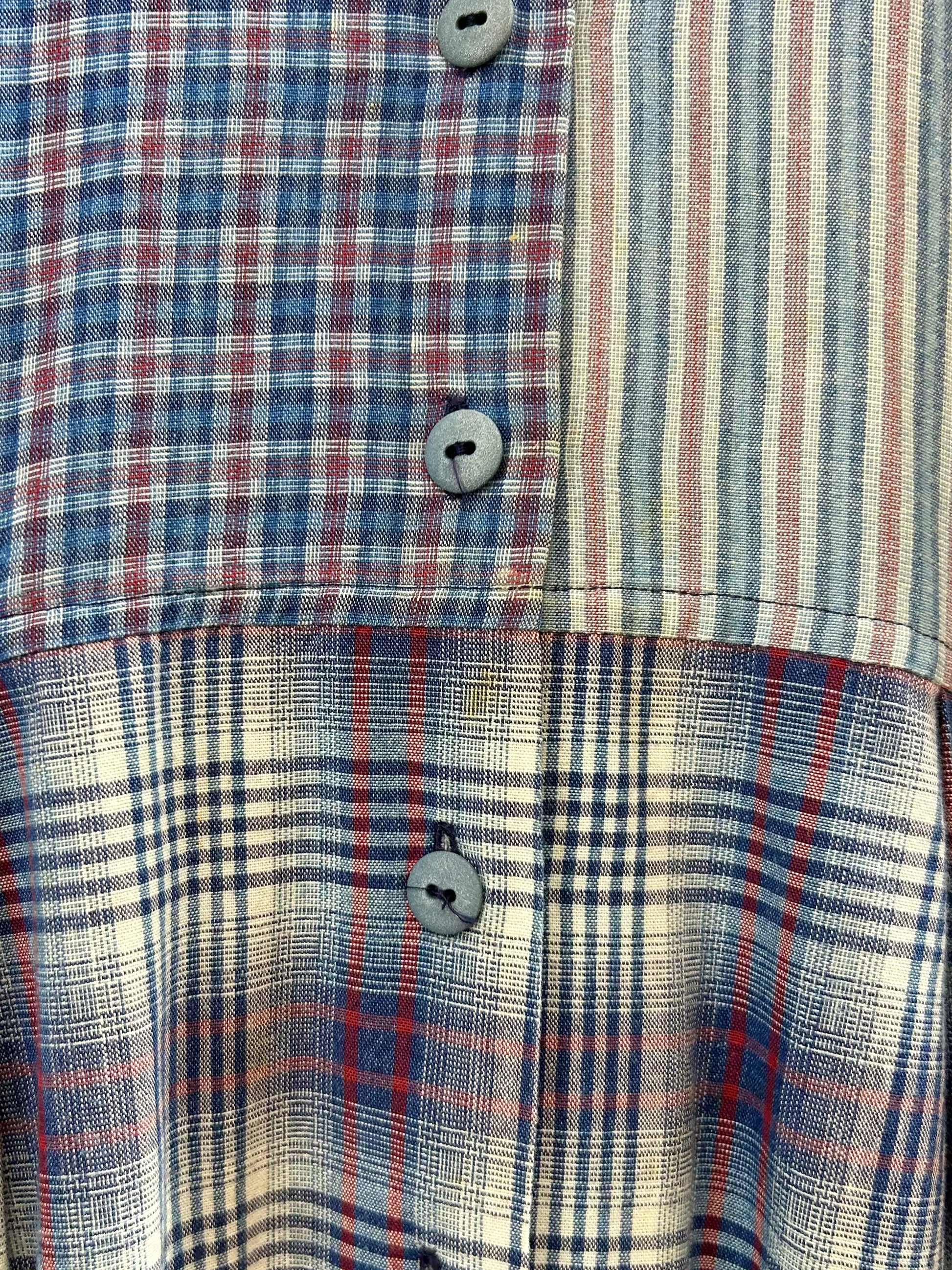 落ち着いた色味のチェックやストライプのクレイジーパターンデザインが素敵な1着。