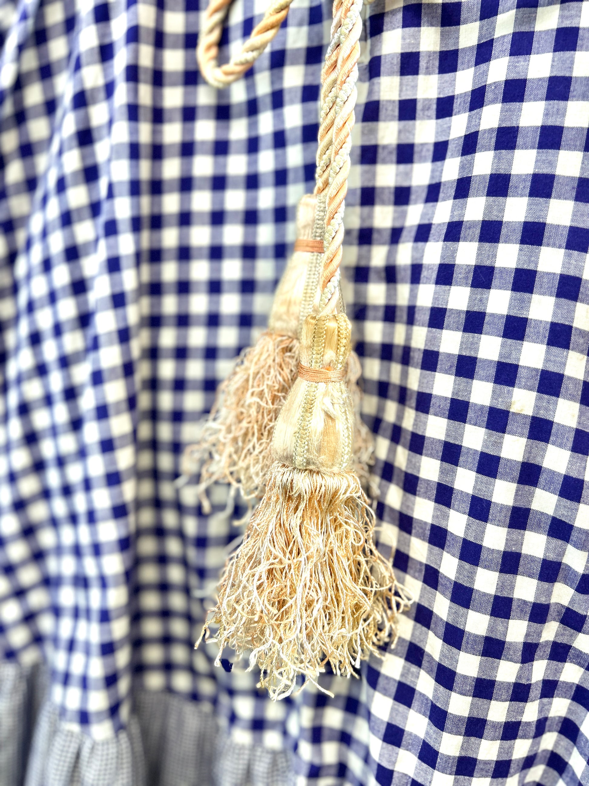 上品で繊細に編まれたホワイトボディに、腰紐に使われたタッセルが素敵なアイテム。