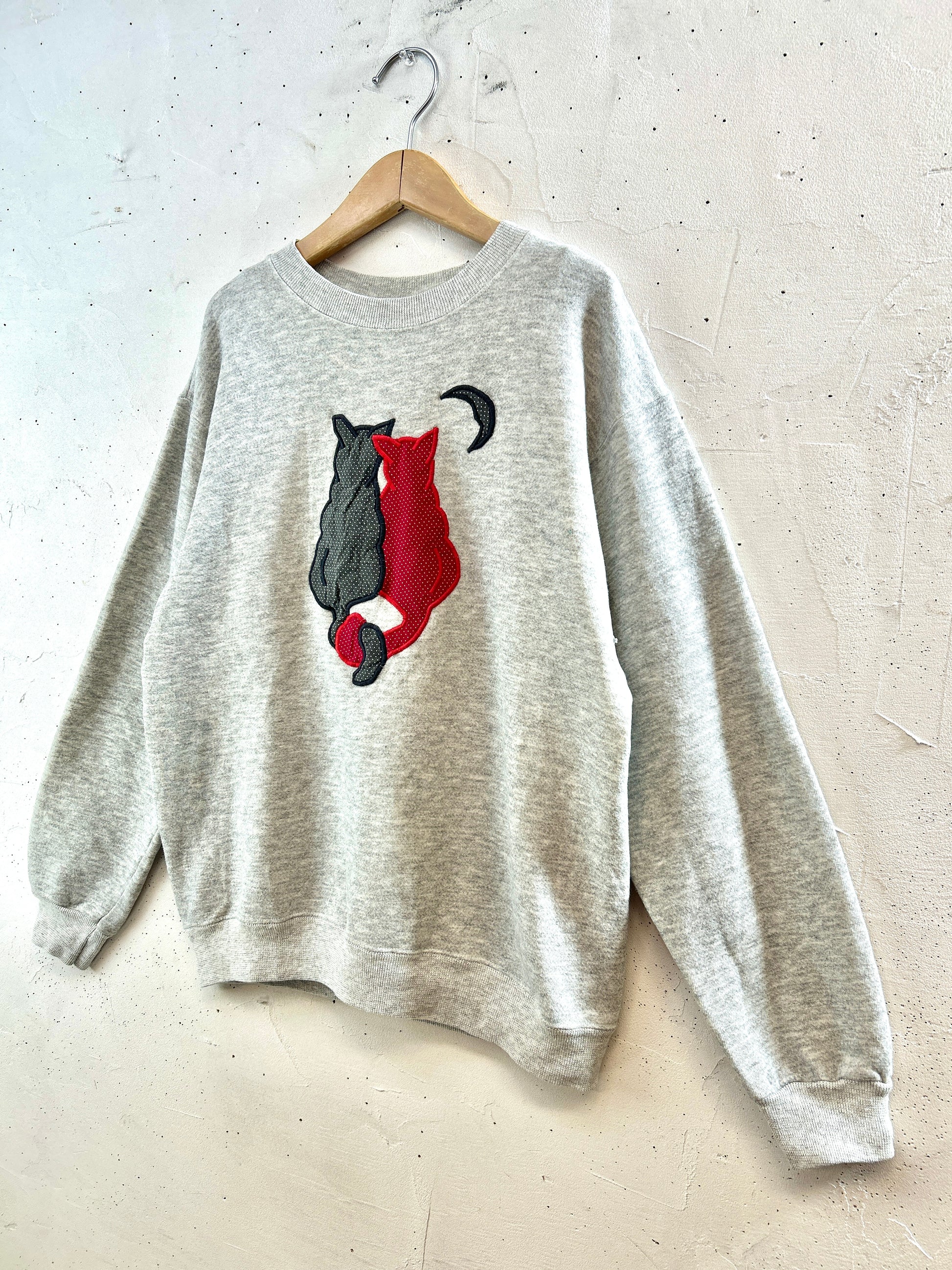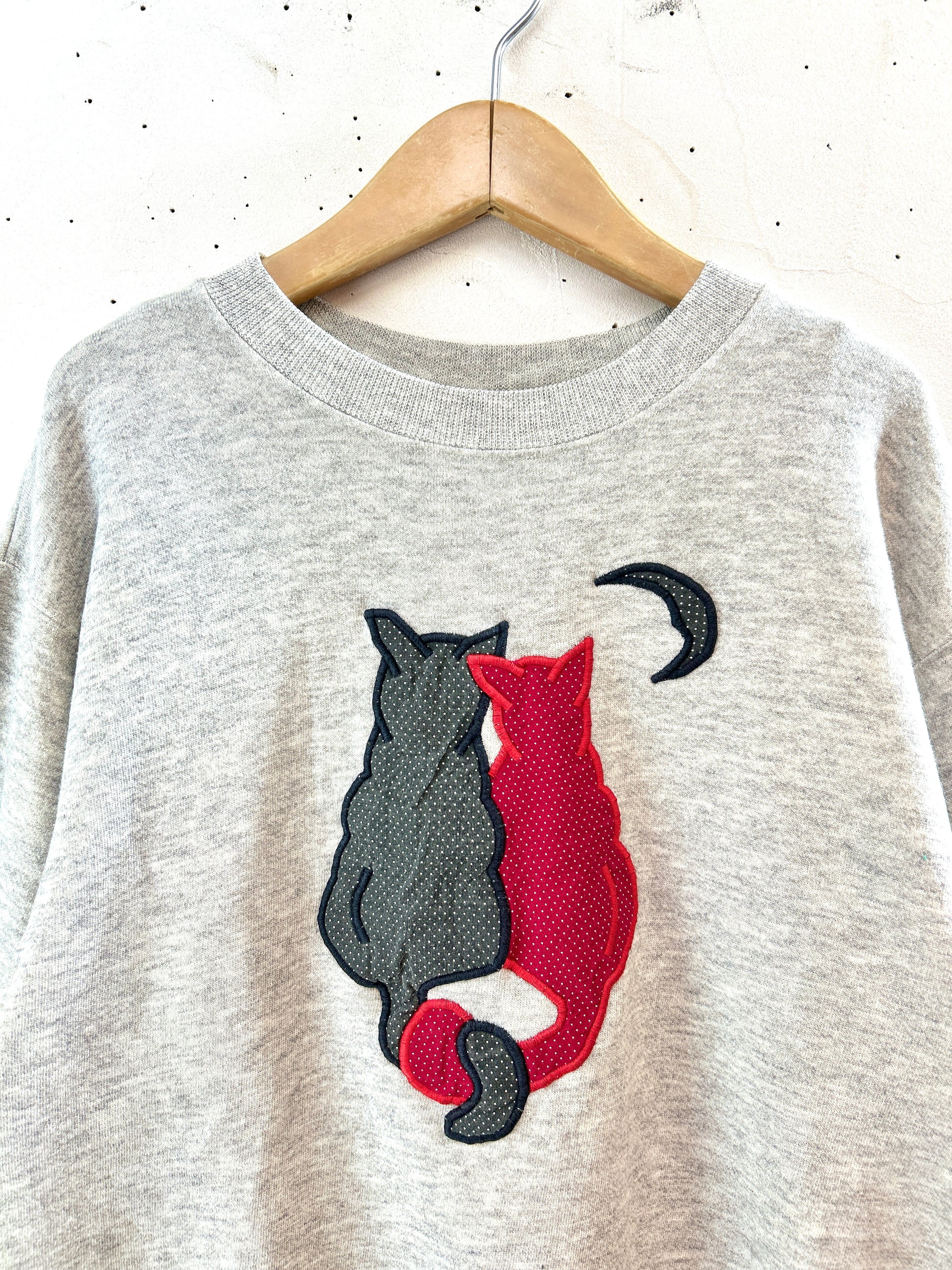 グレーボディに、月明かりの中で寄り添う猫のアップリケがとても可愛いです。