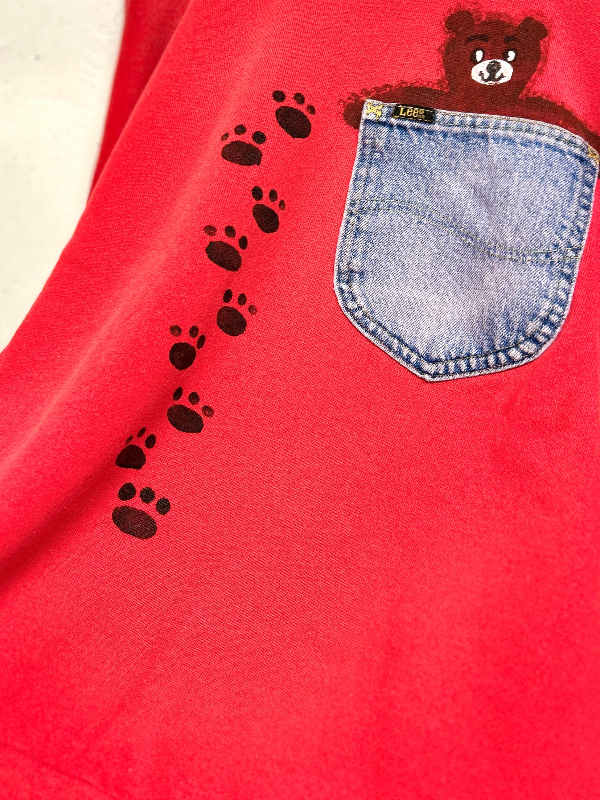 レッドボディに、Leeのデニムポケットからはみ出たテディベアのペイントが可愛いです。