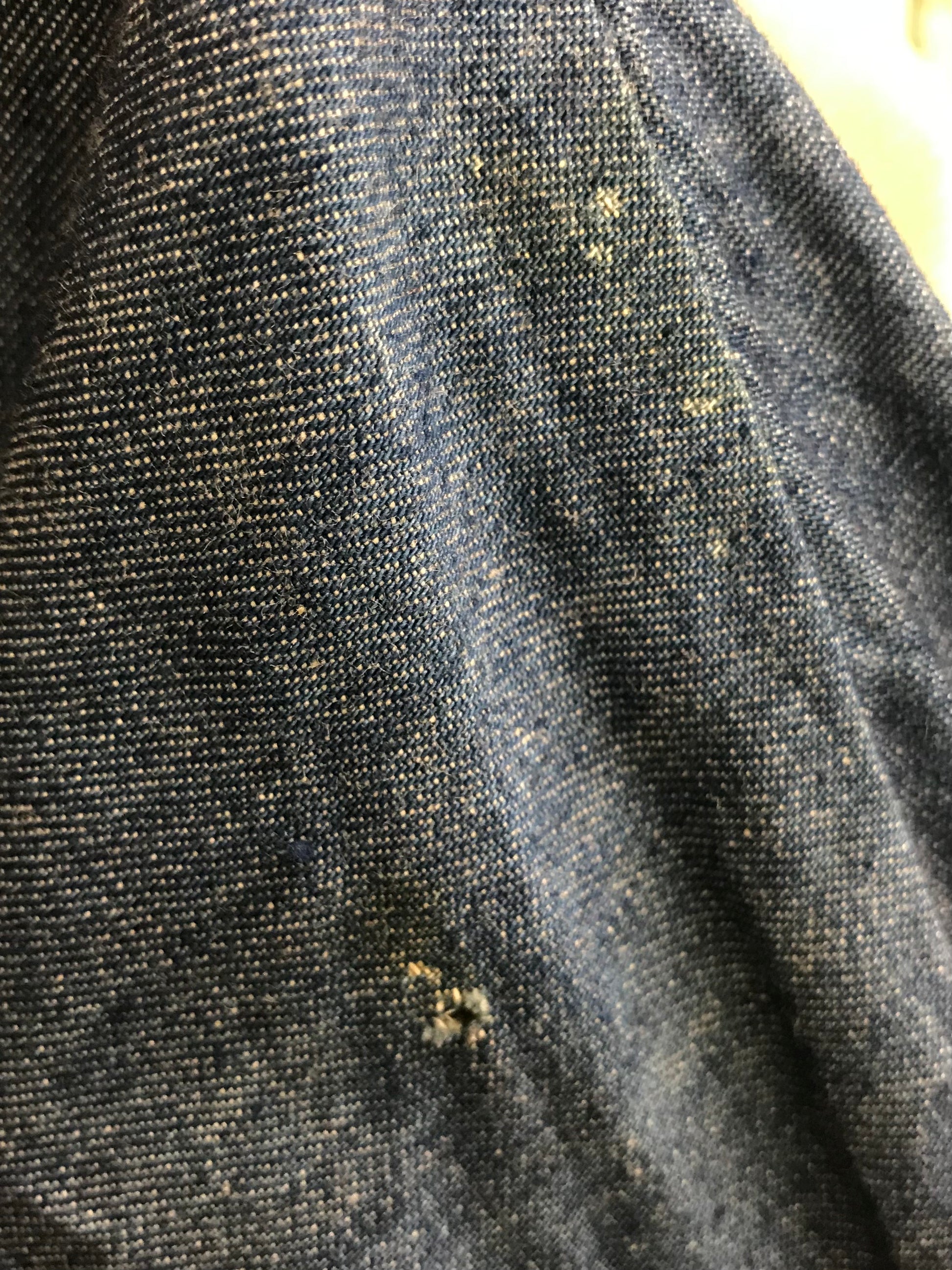 コンディション:所々に生地特有の節、肩の部分にダメージと汚れ、裾に変色がございますが、ビンテージにご理解頂いている方でしたら気にせずご着用頂ける程度かと思われます。