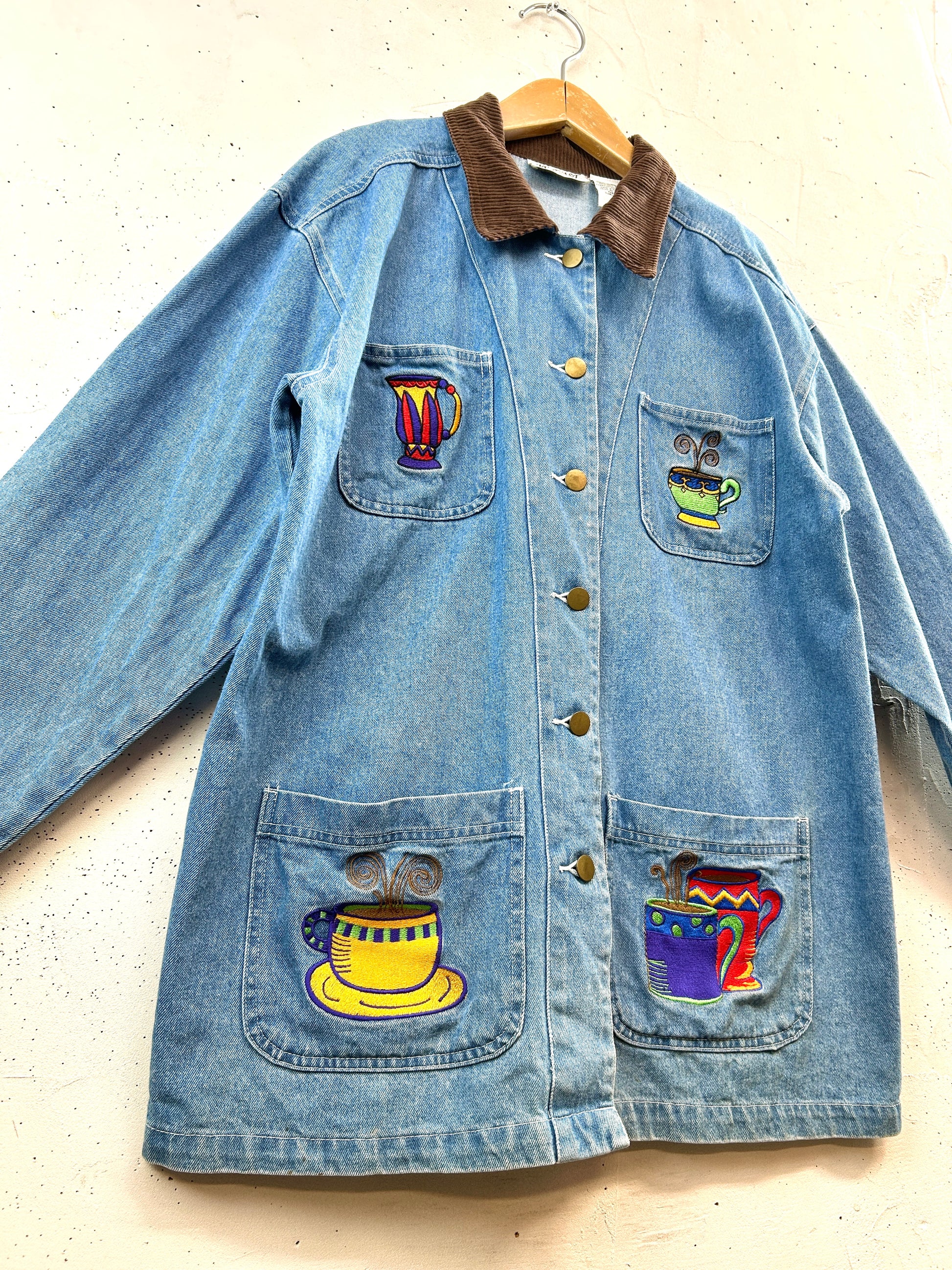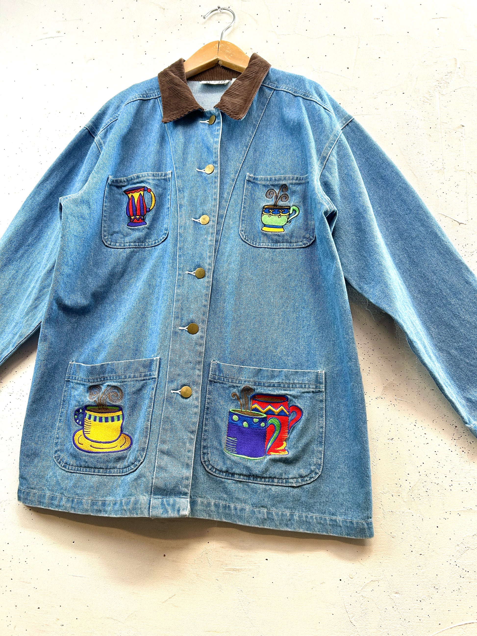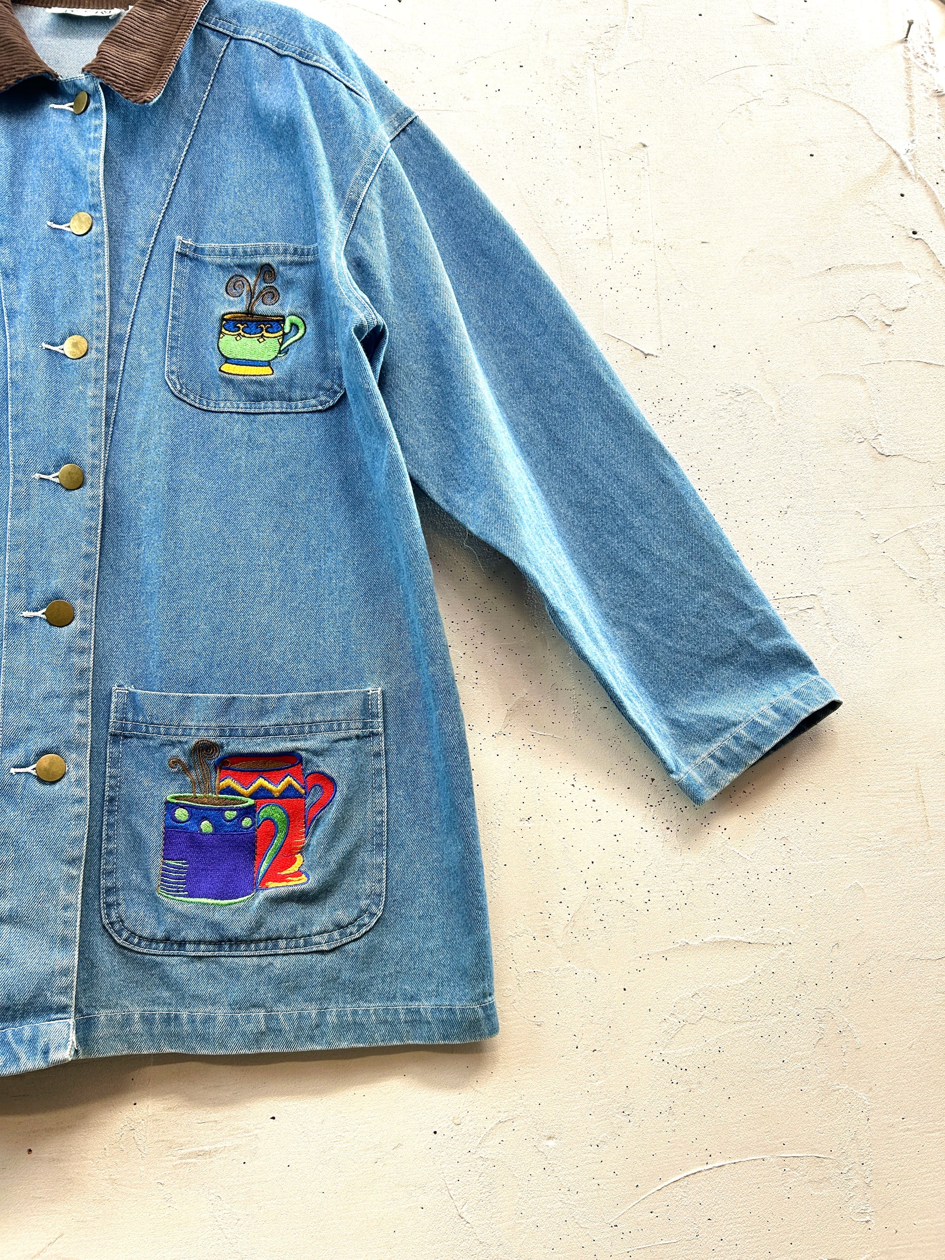 ポケットにカップの刺繍が入り、遊び心のあるデザインとなっております。