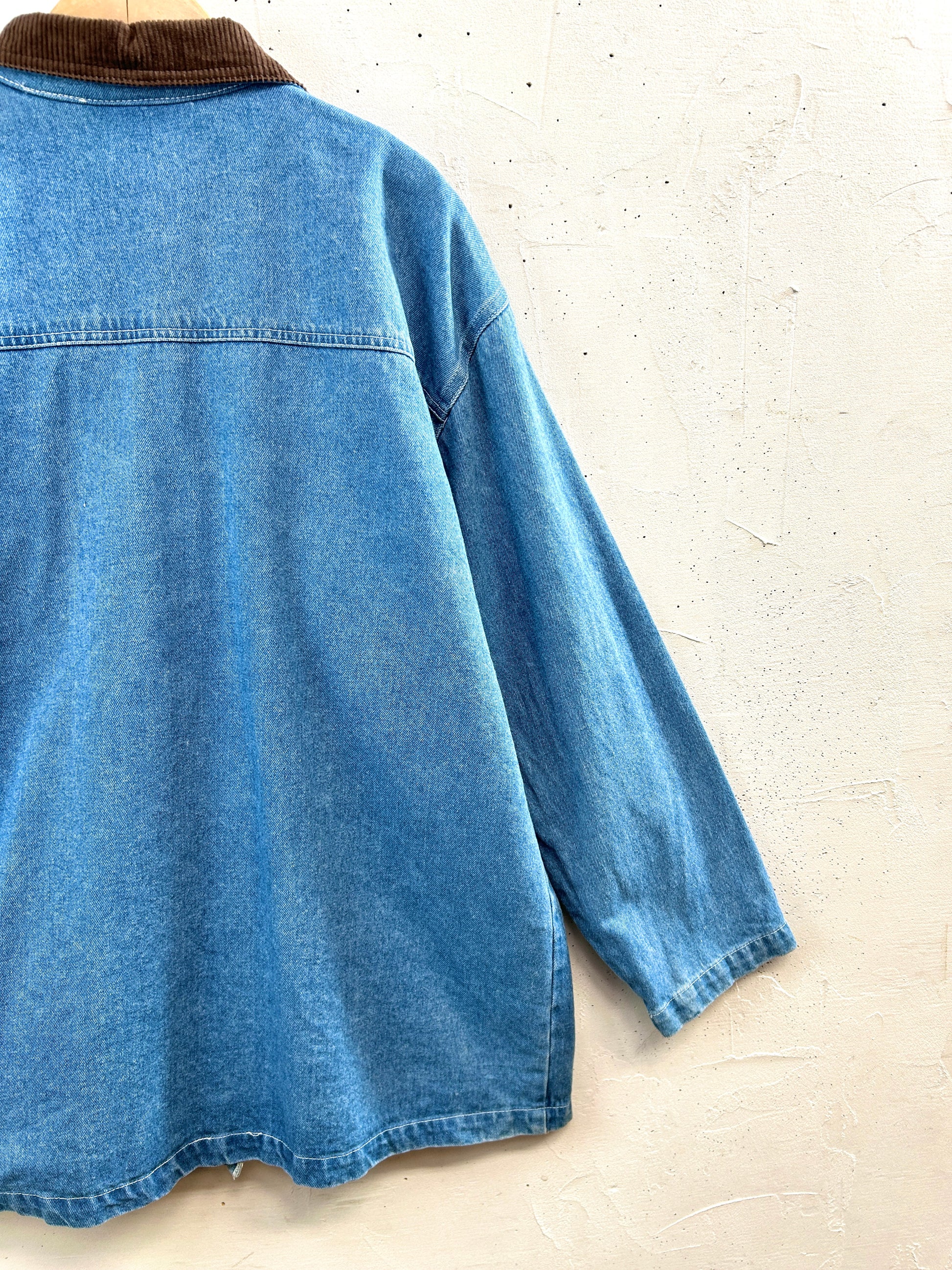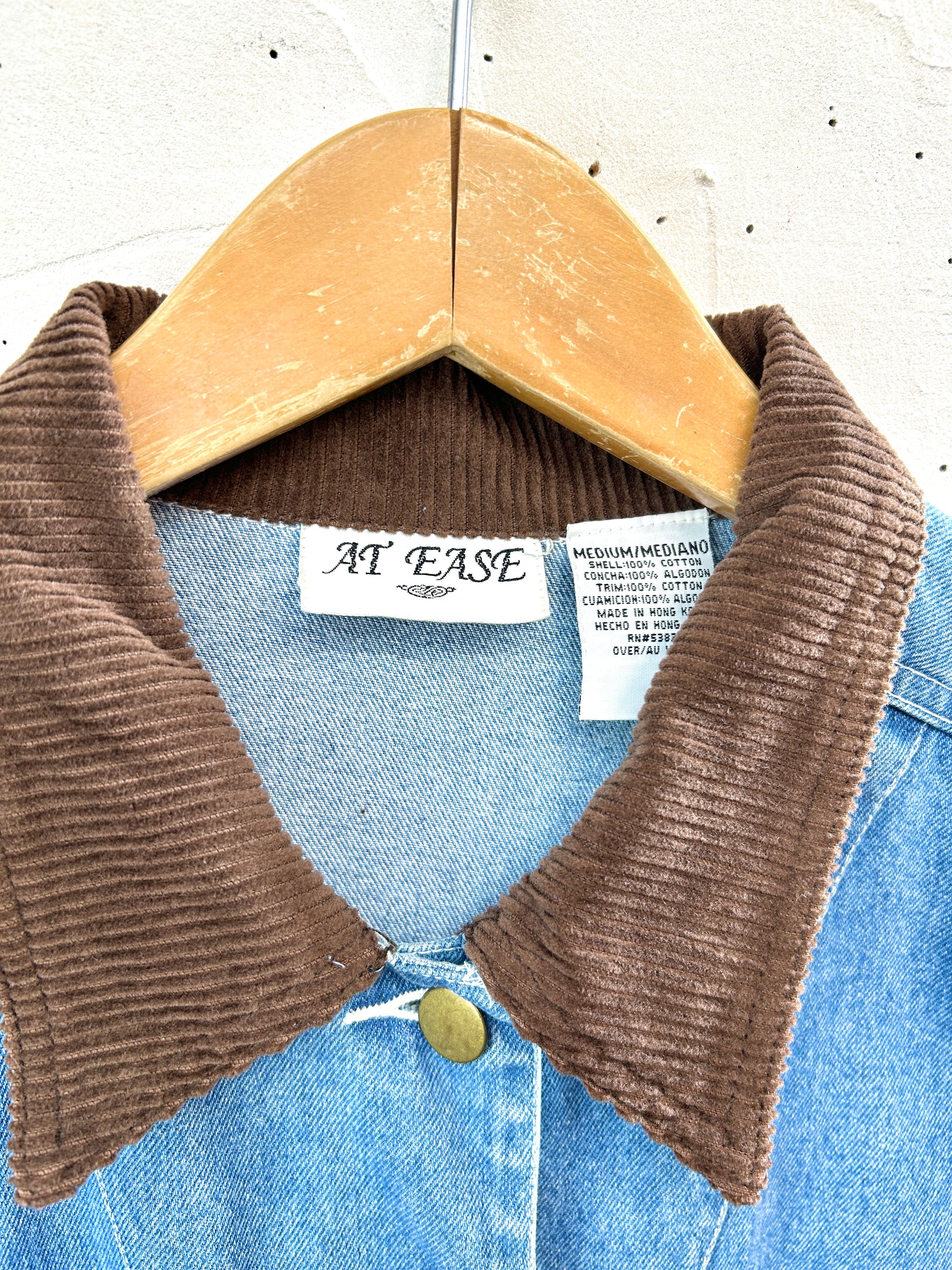 デニムにコーデュロイ襟の切り替えの4つポケットのカバーオールタイプです。普段から気兼ねなく着用いただけるアイテム。