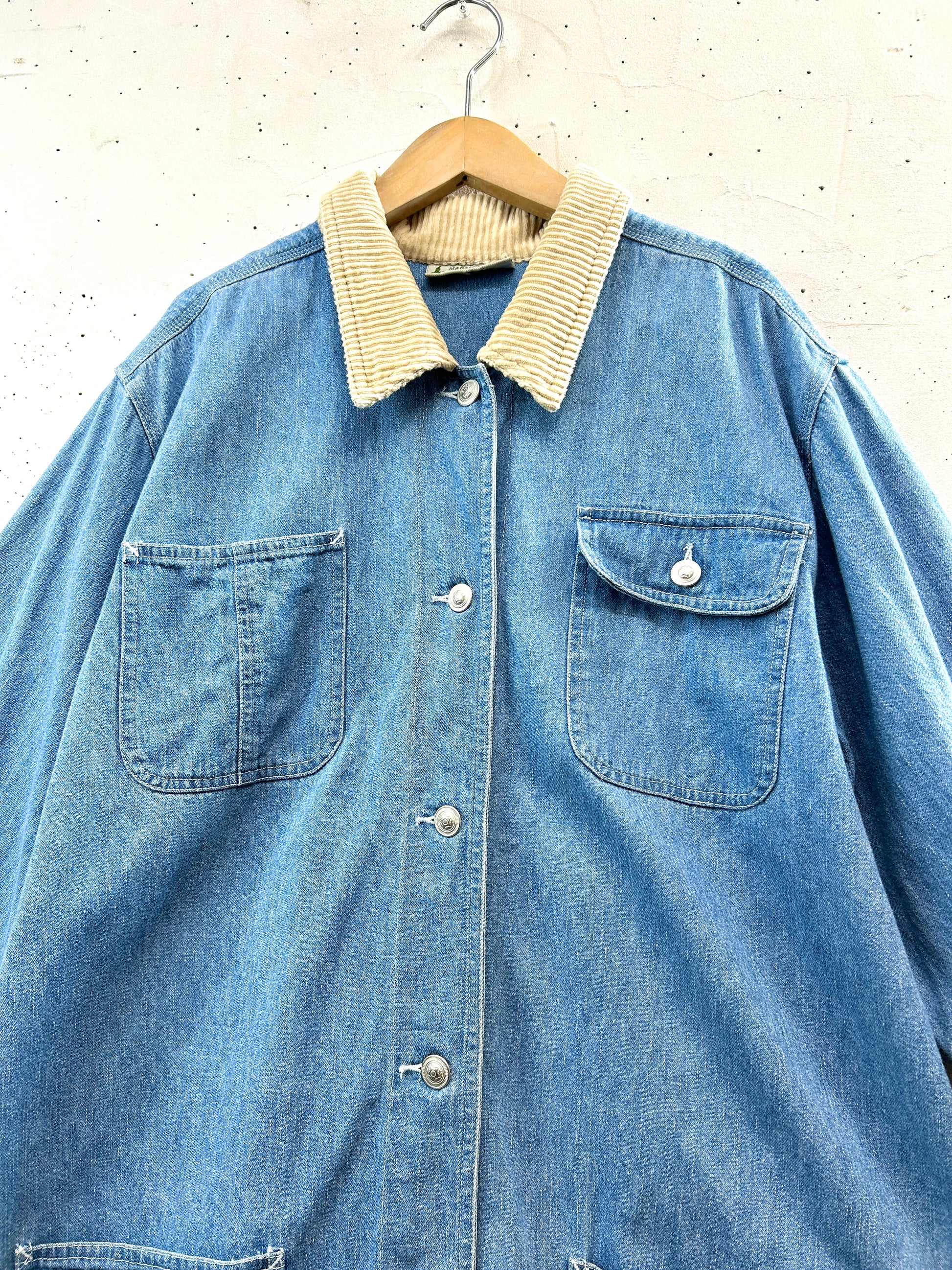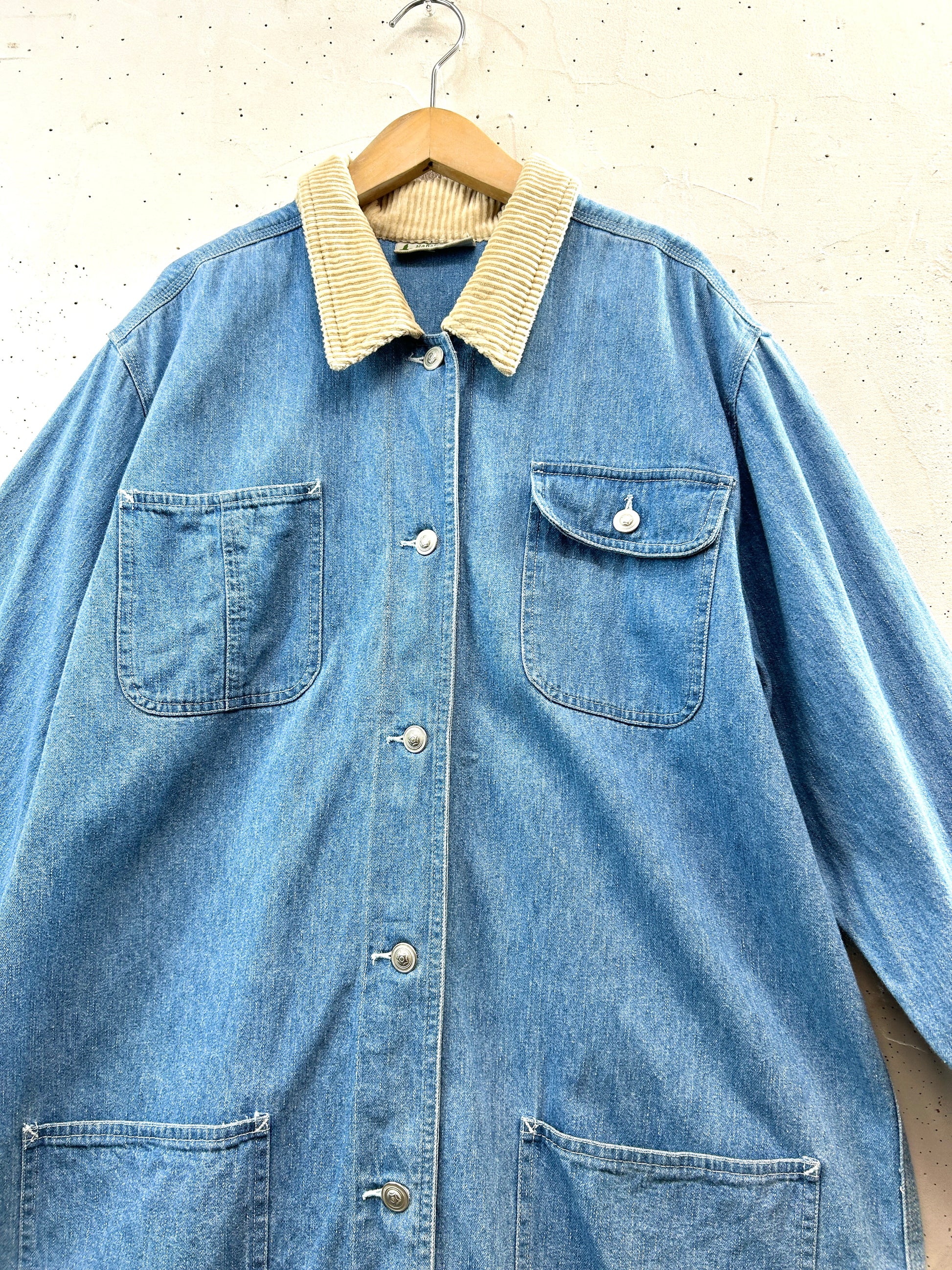 デニムにコーデュロイ襟の切り替えの4つポケットのカバーオールタイプです。普段から気兼ねなく着用いただけるアイテム。