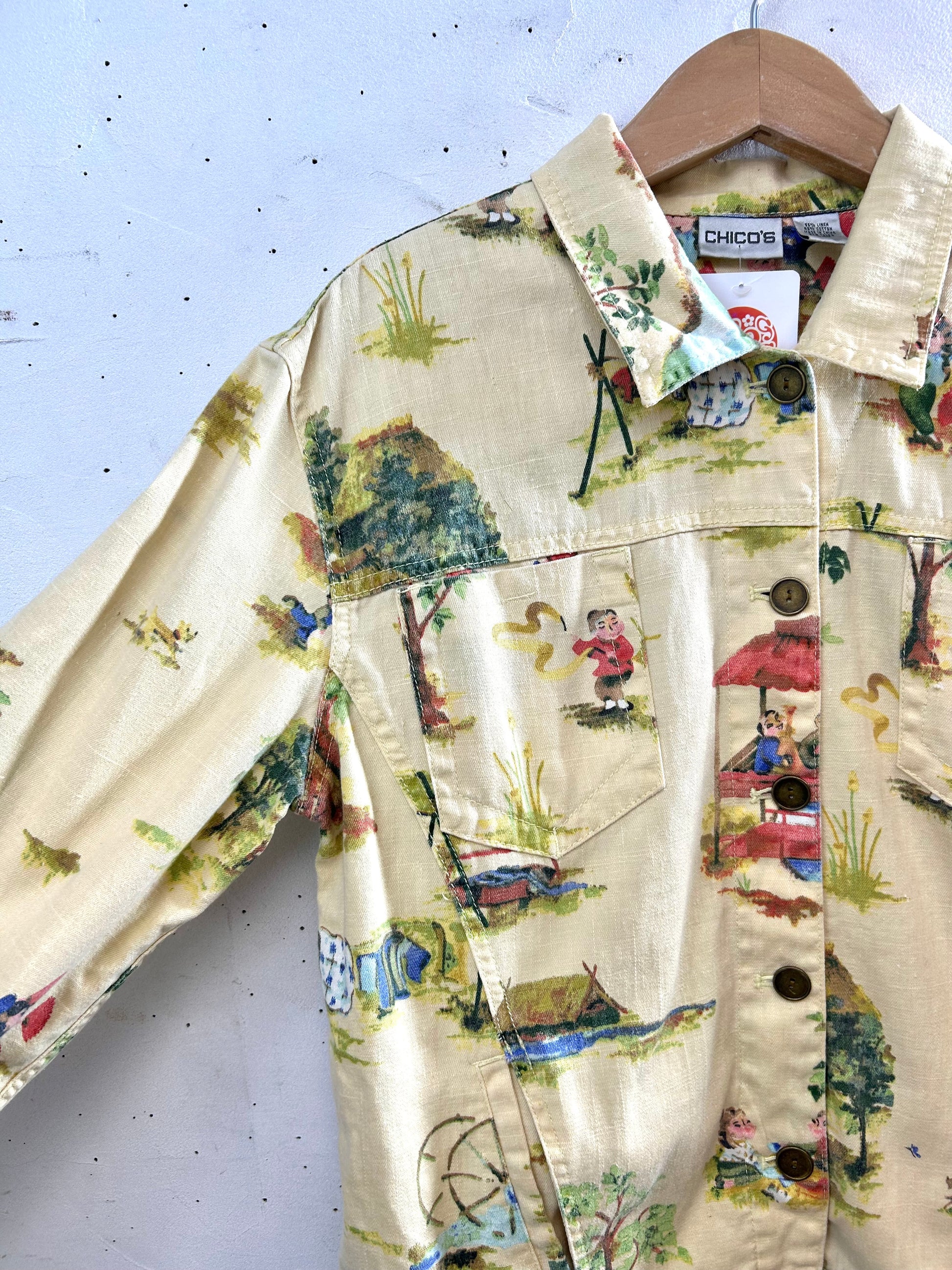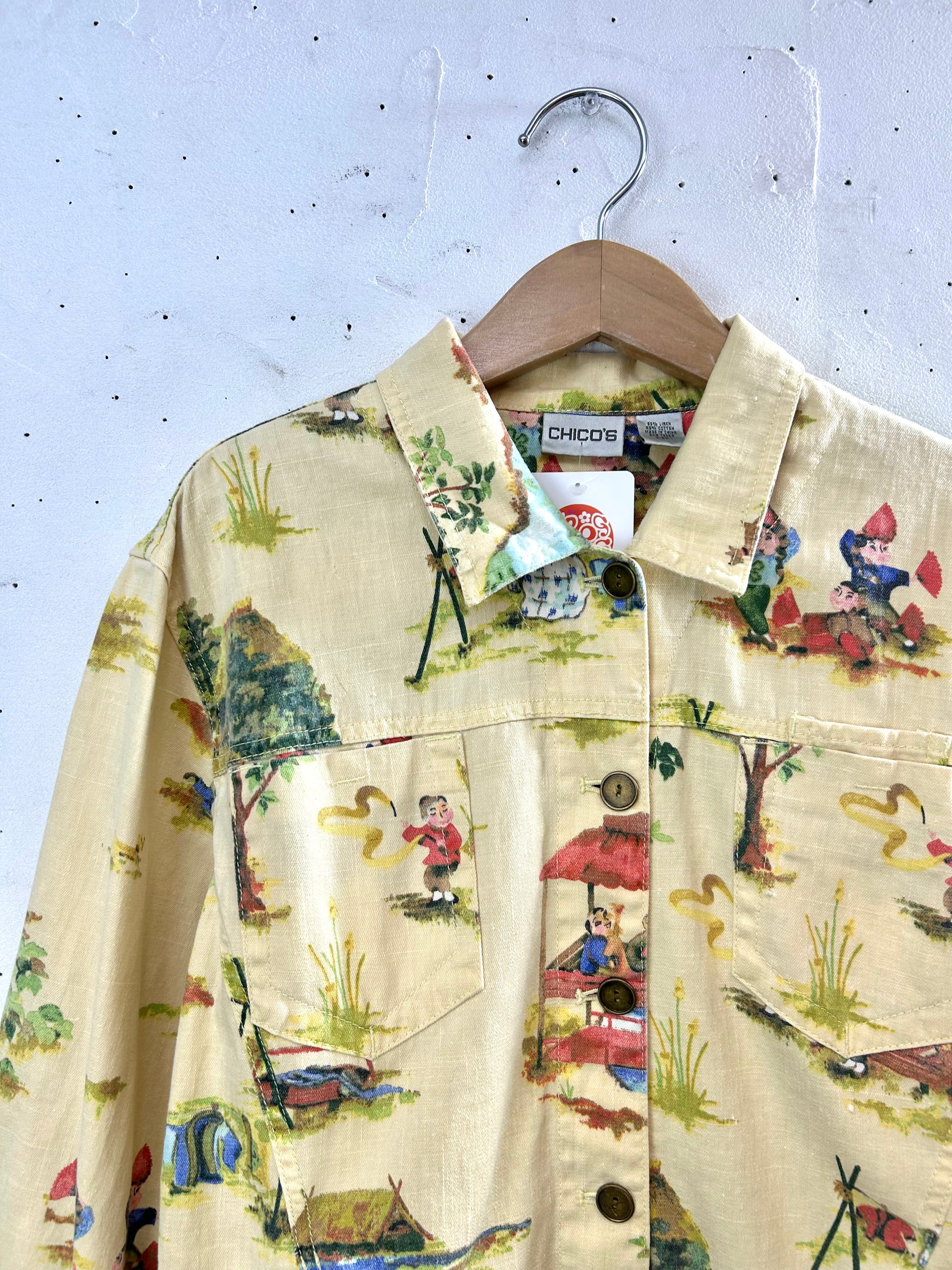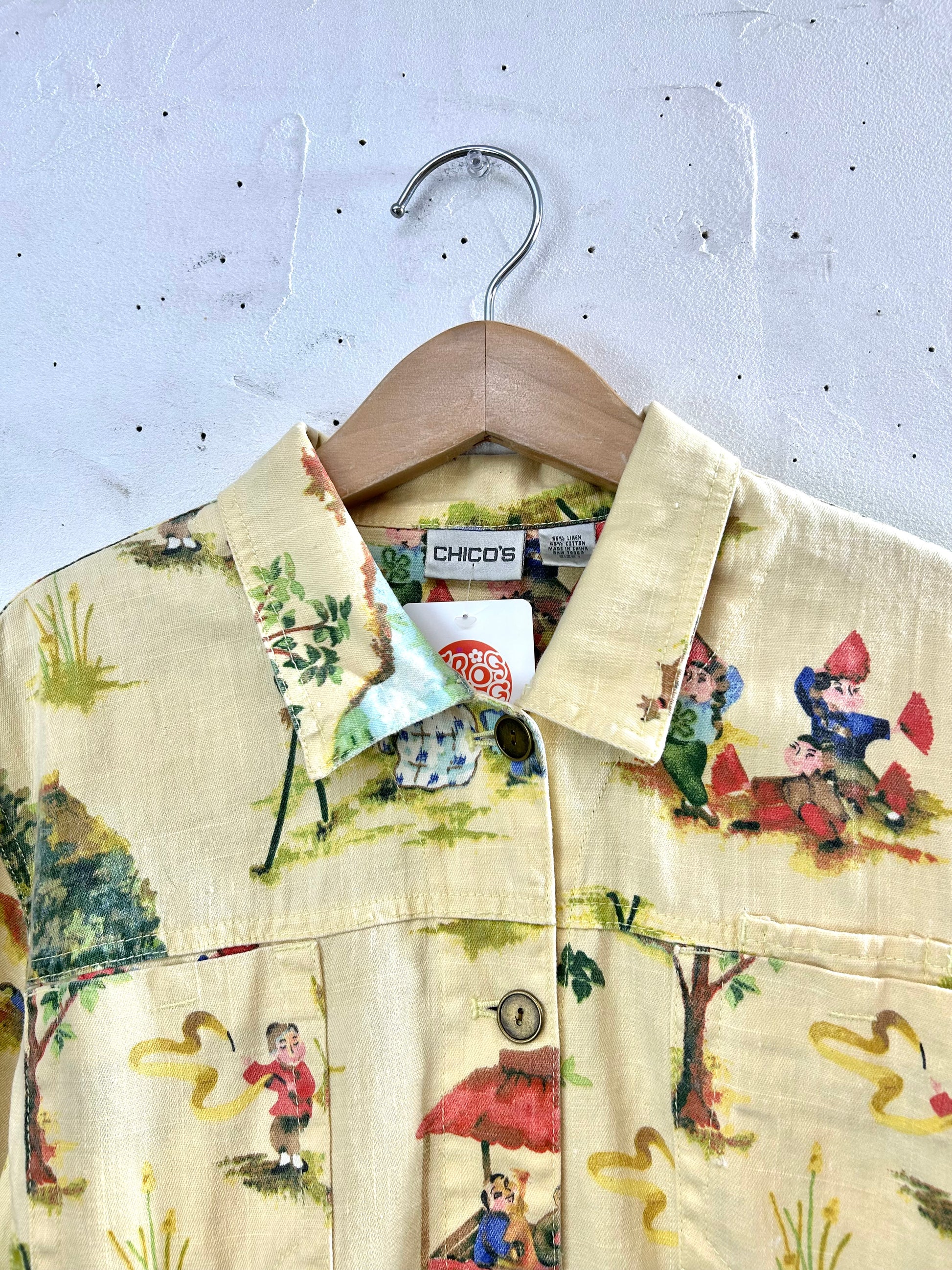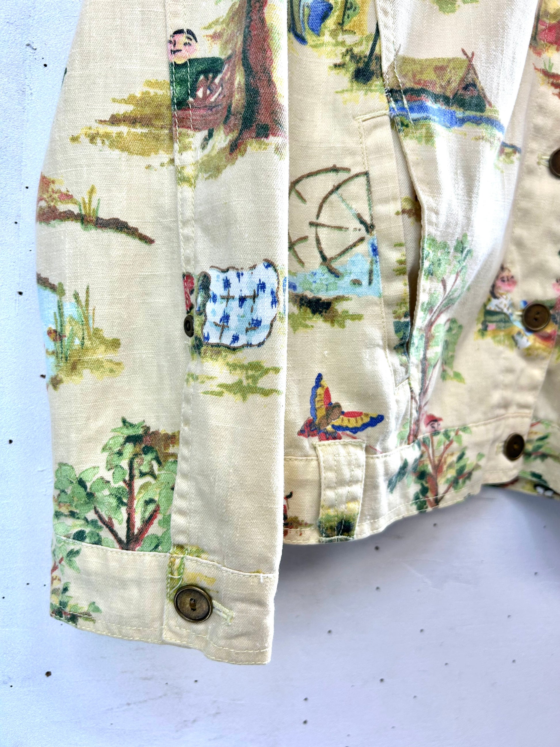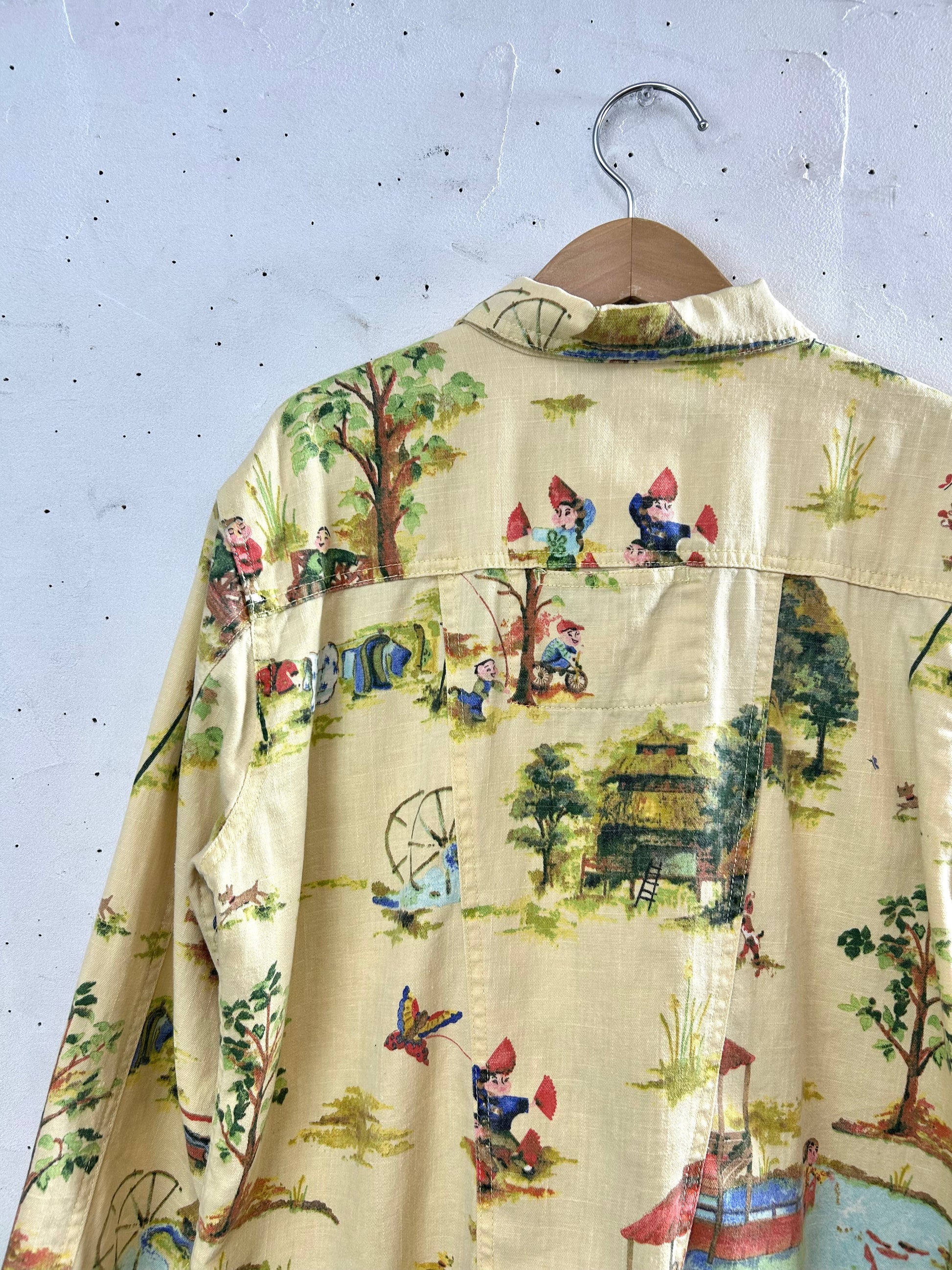 可愛い村人たちの生活が描かれたアジアン柄の個性的な1着。