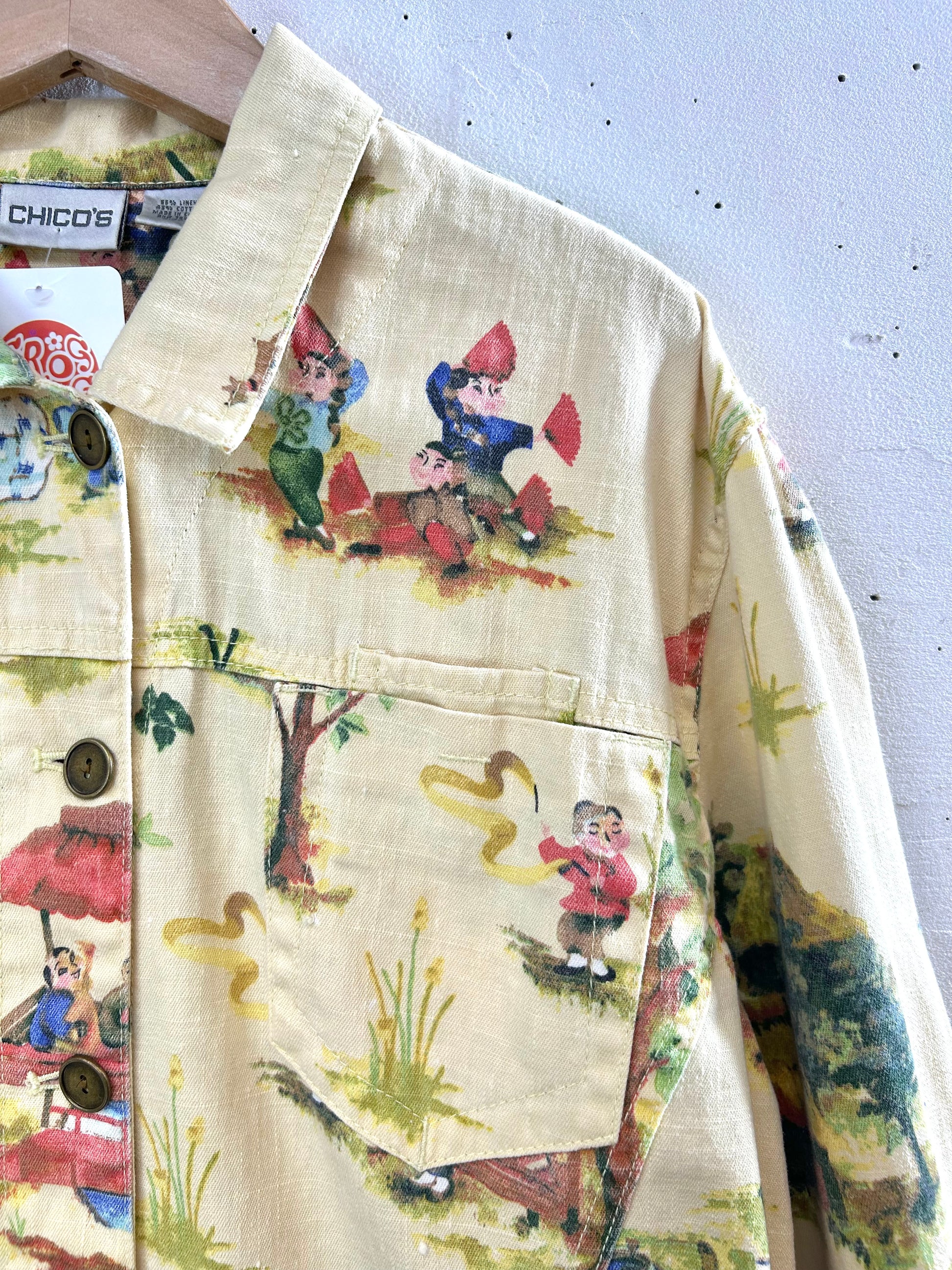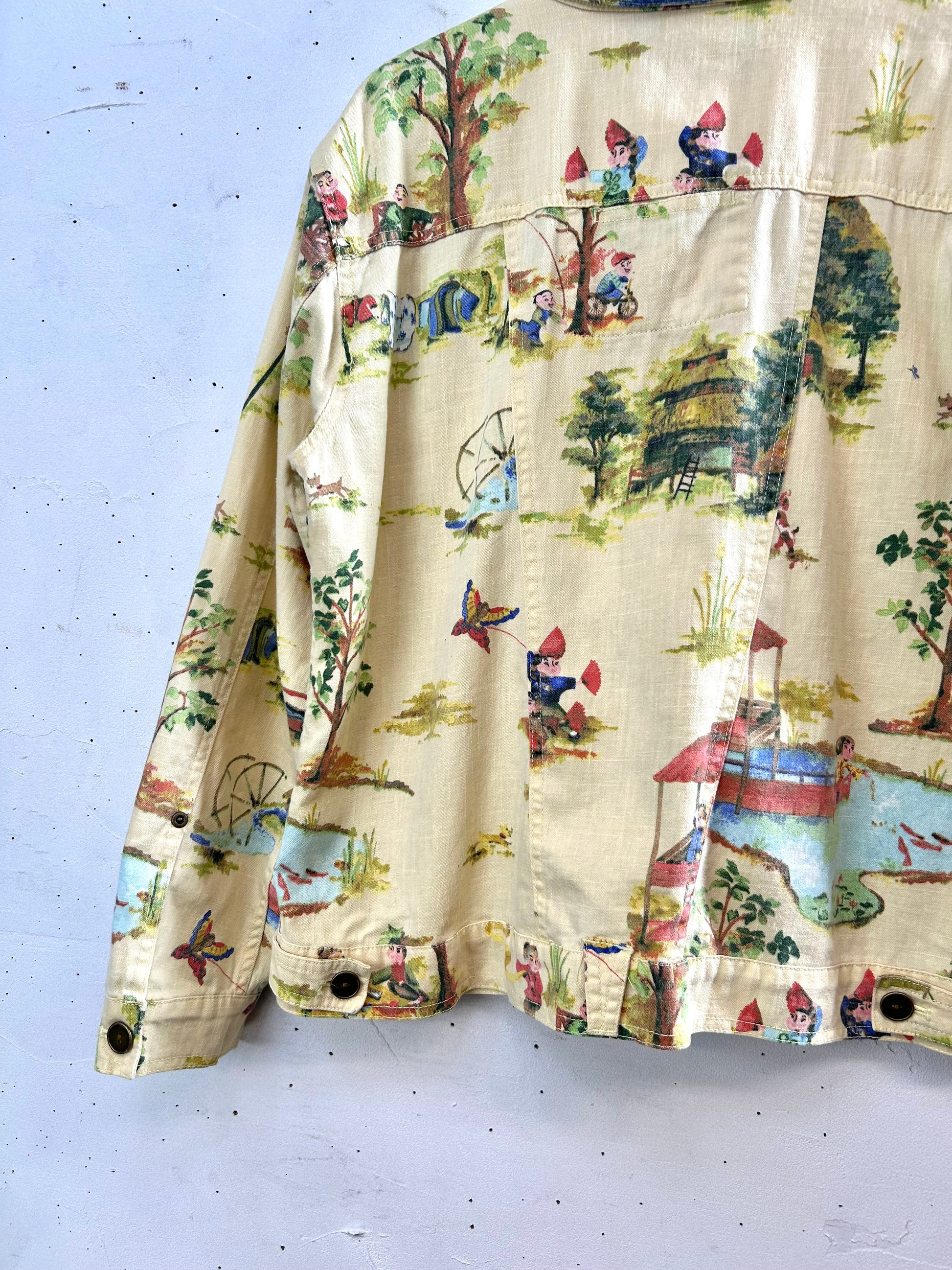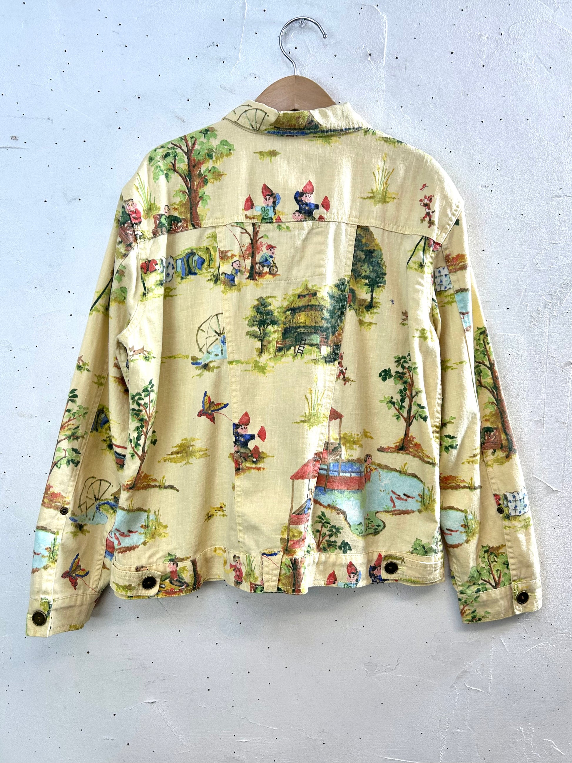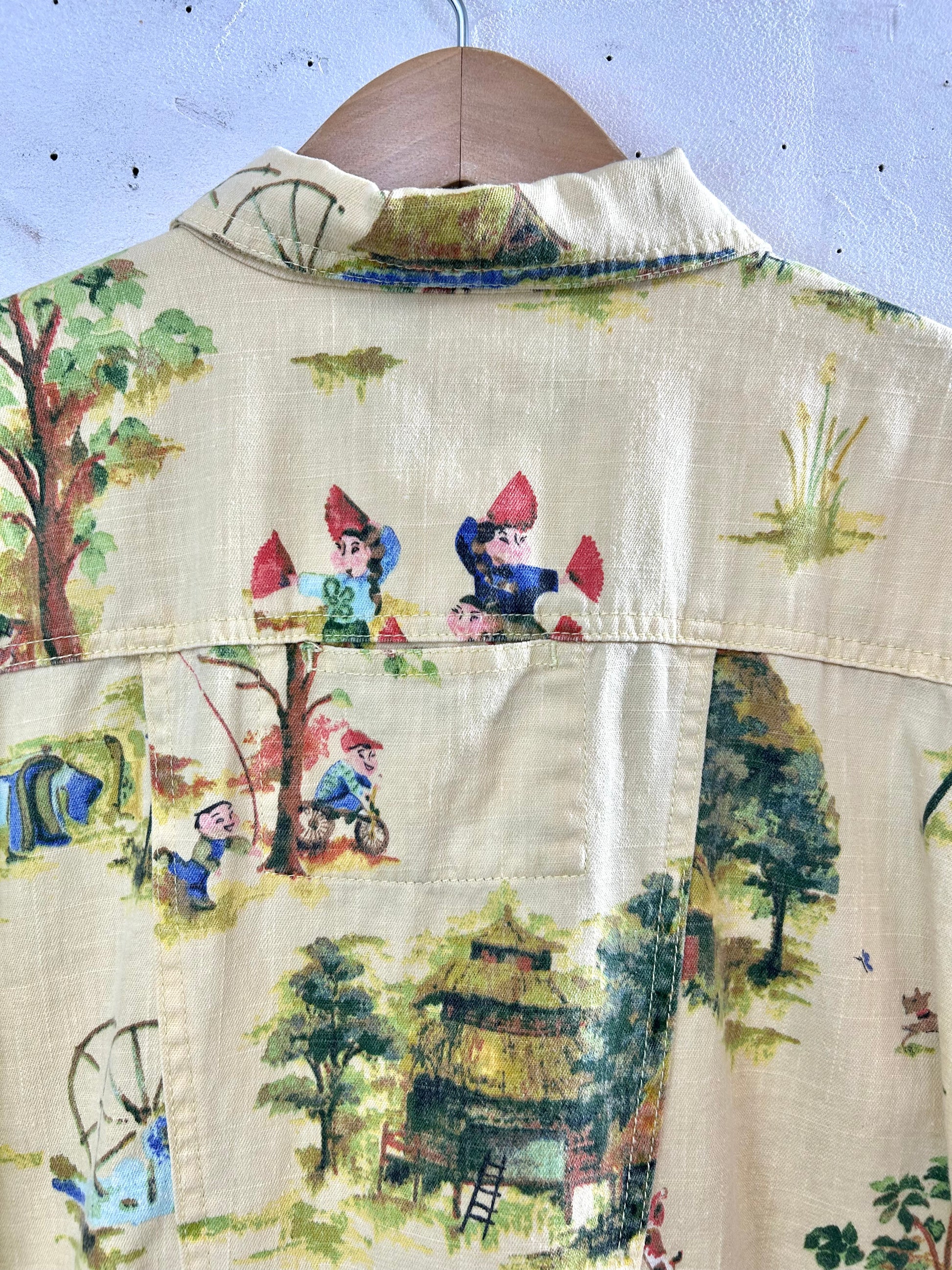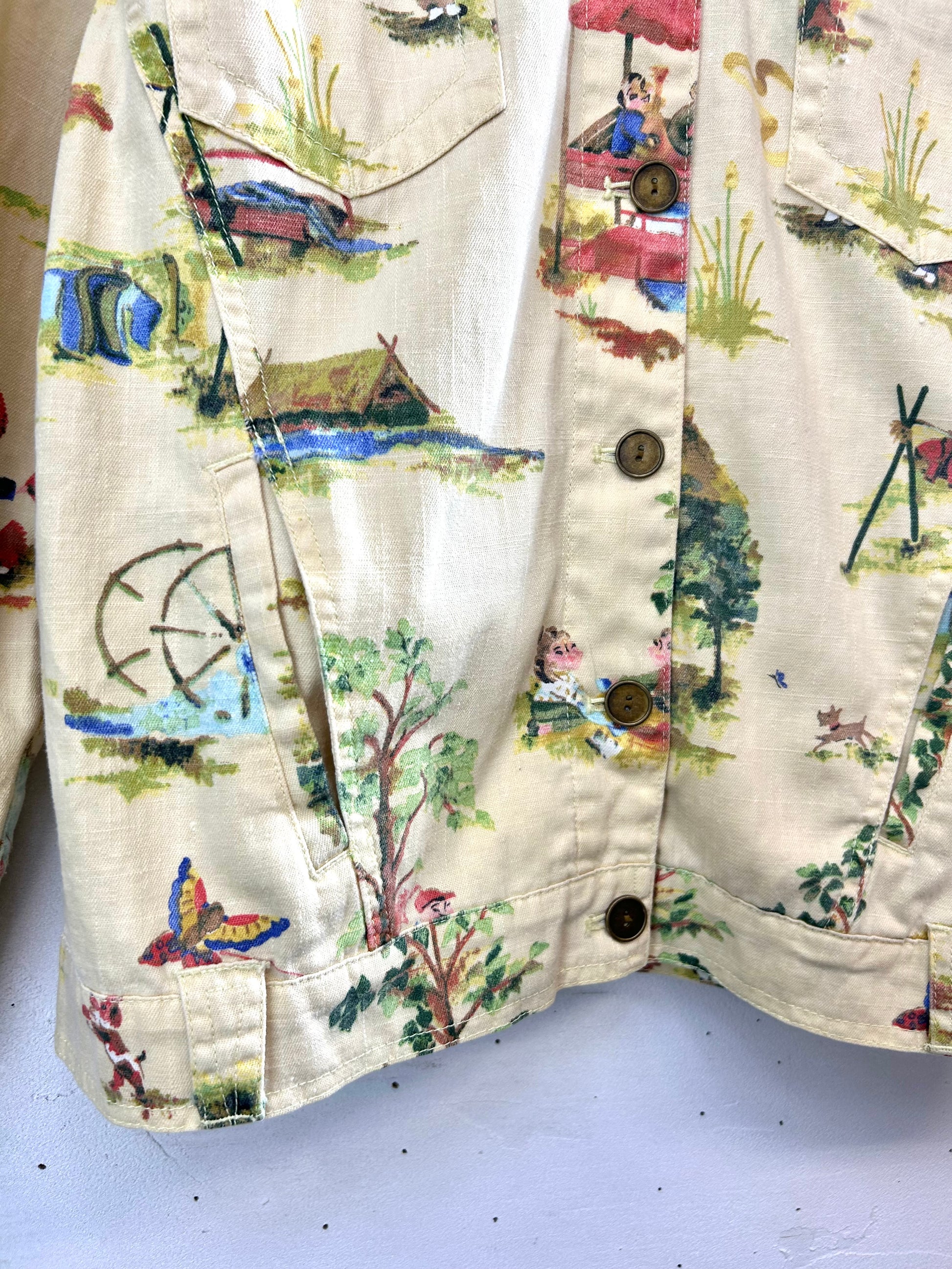 可愛い村人たちの生活が描かれたアジアン柄の個性的な1着。