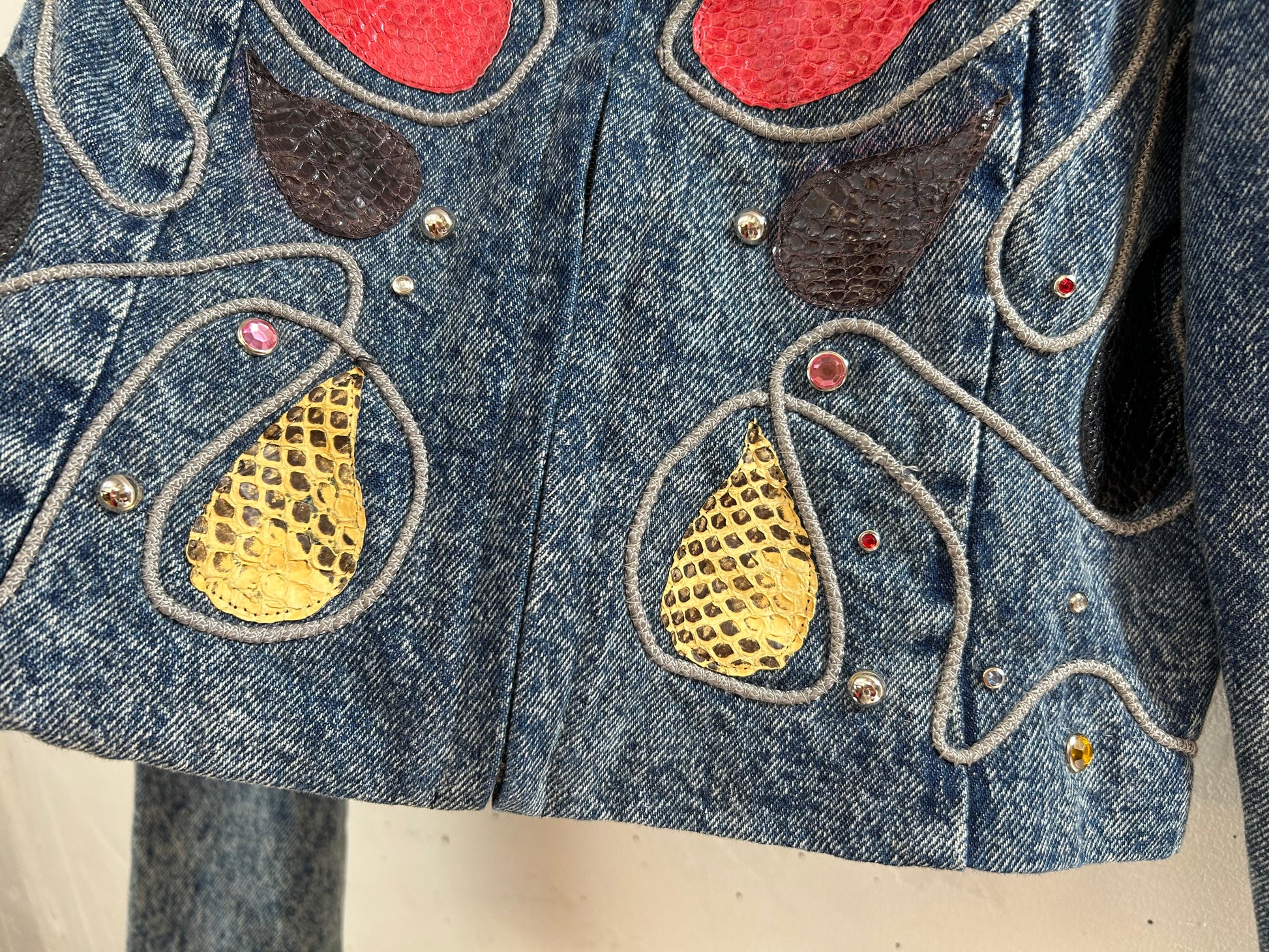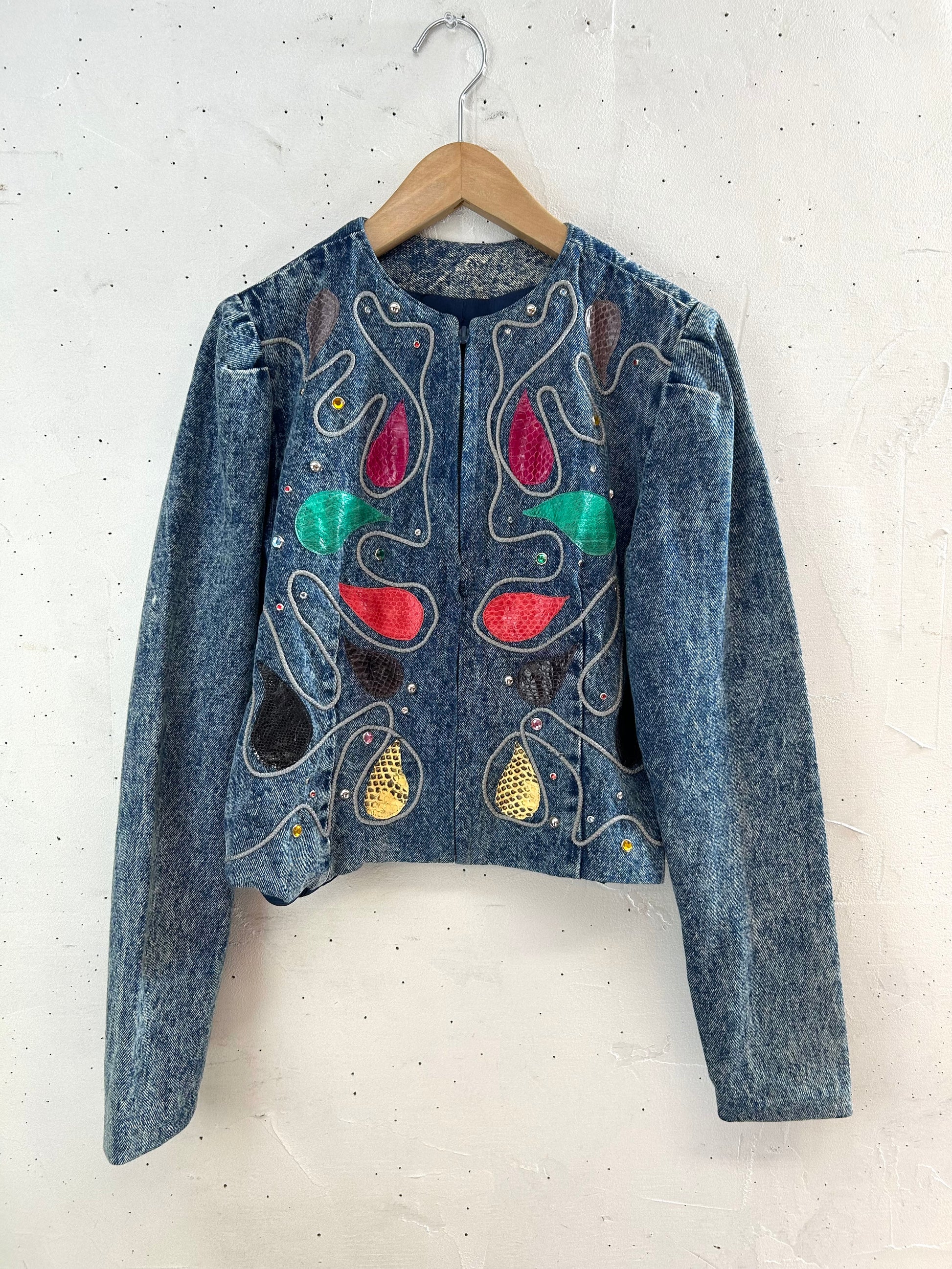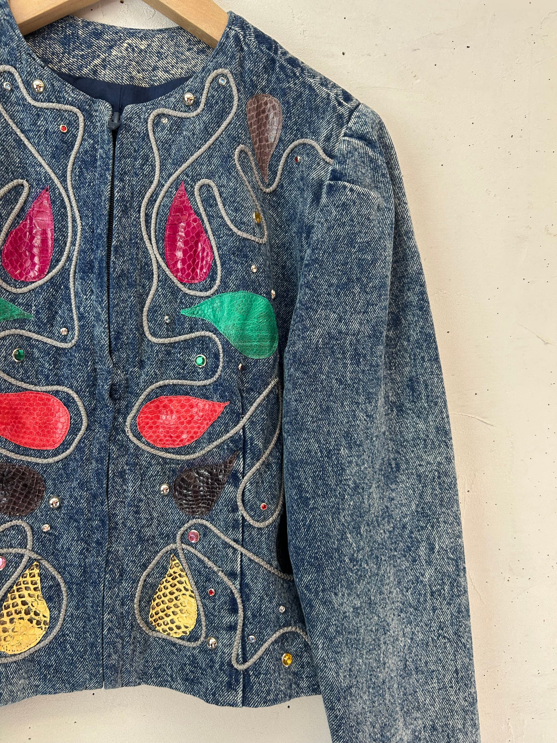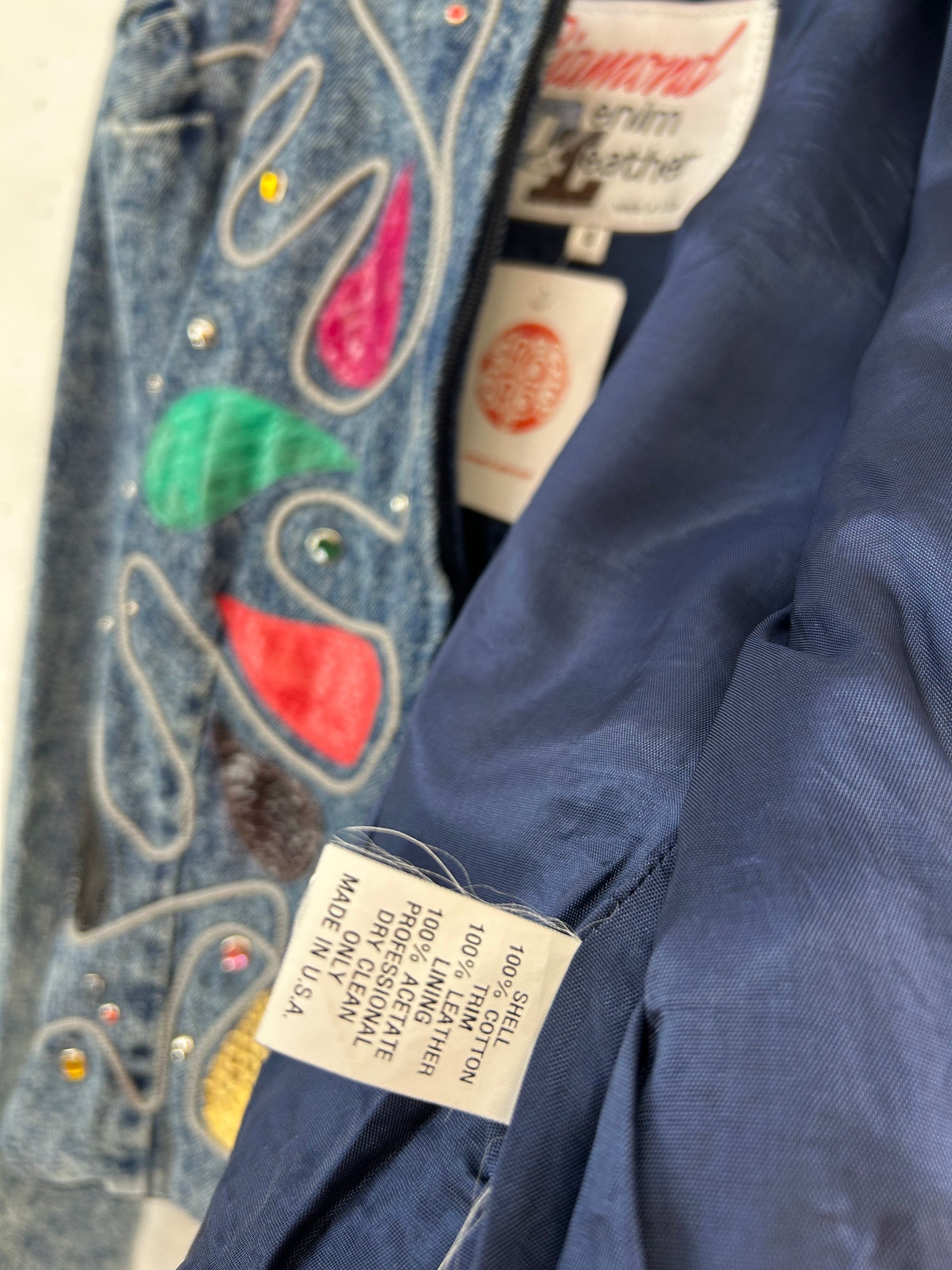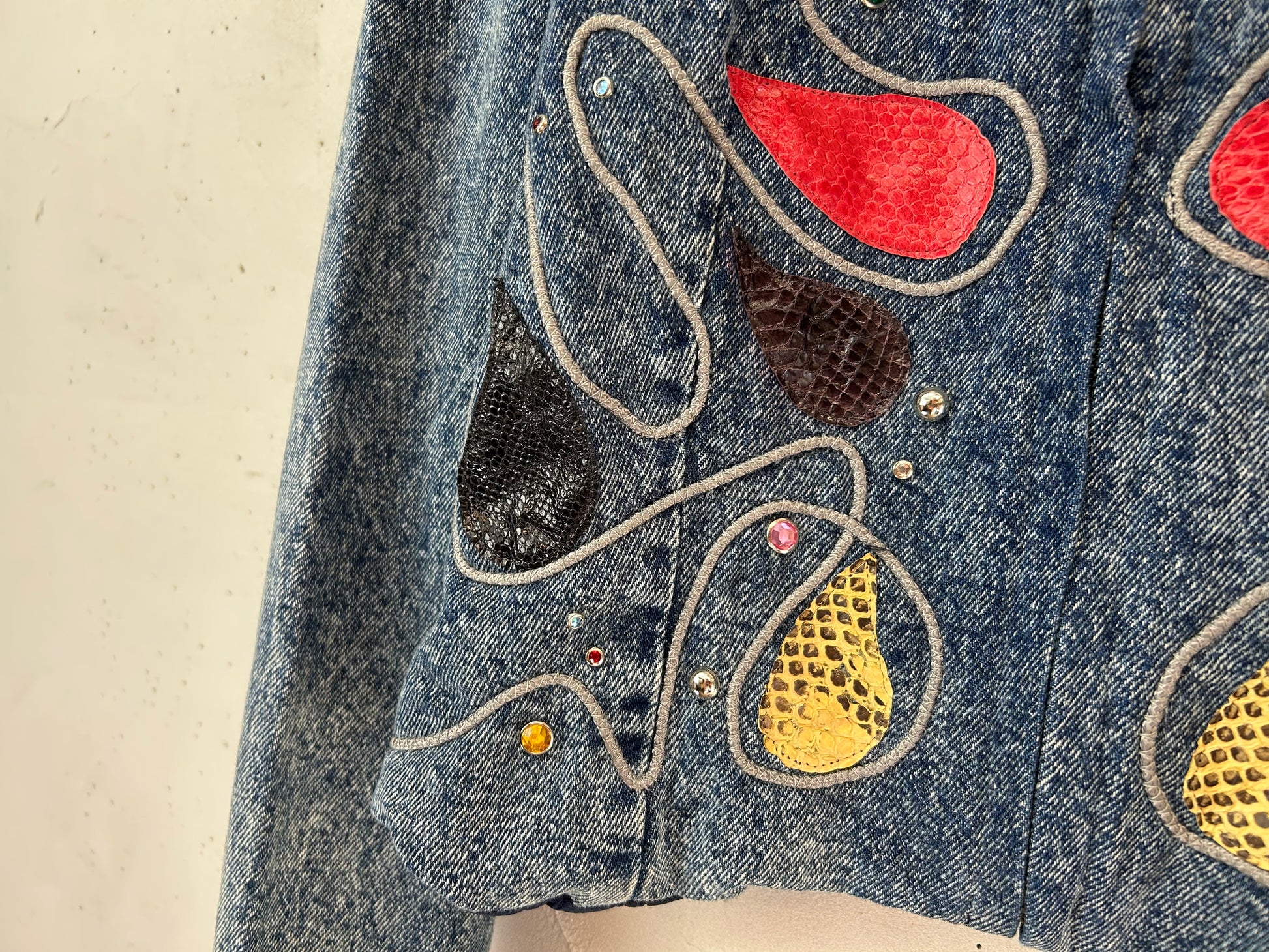 カラフルなレザーのパッチやラインストーンがアクセントです。