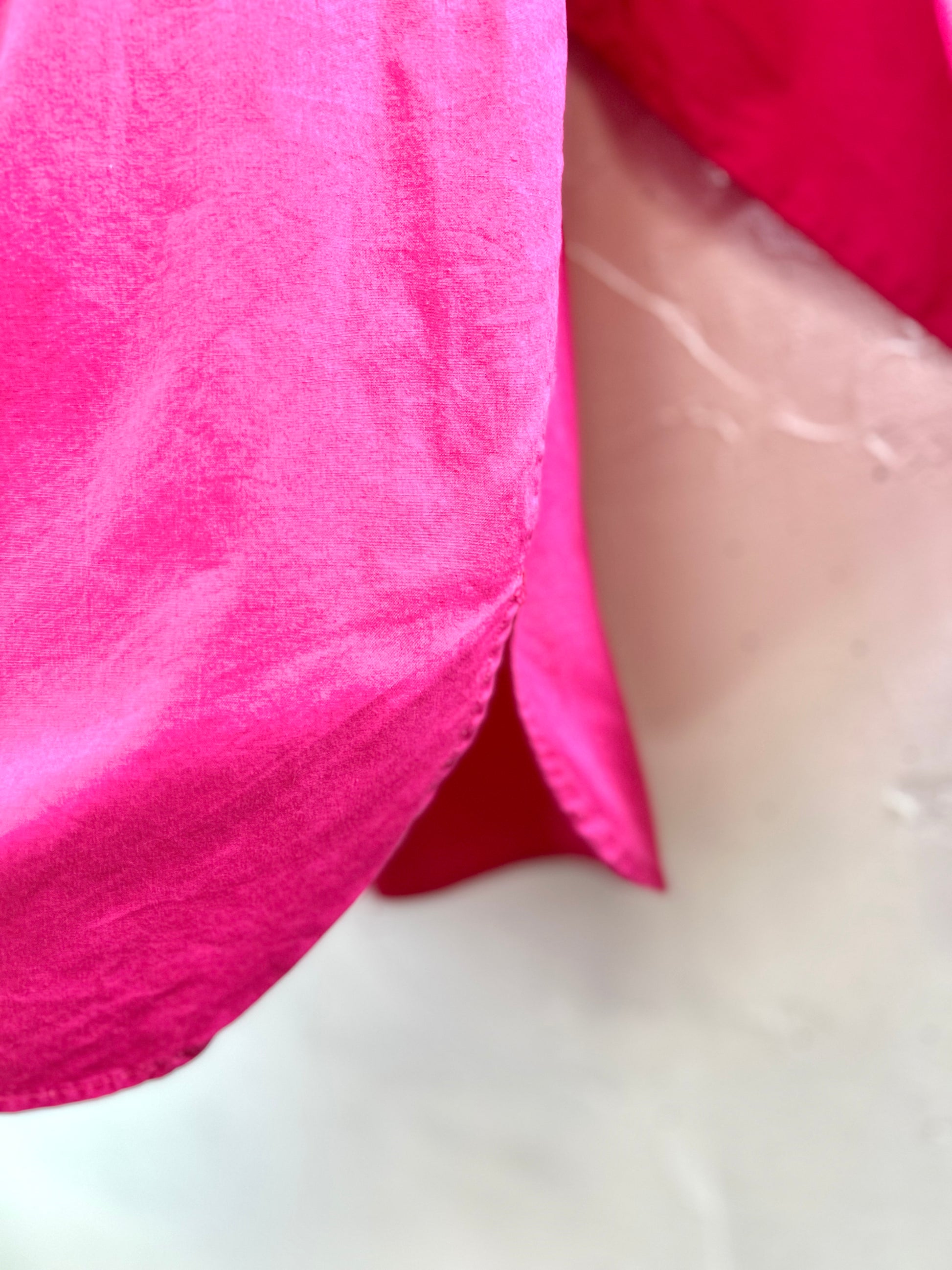 フレンチローズの印象的なカラーでシンプルなシルエットの中に可愛さの詰まった1着。