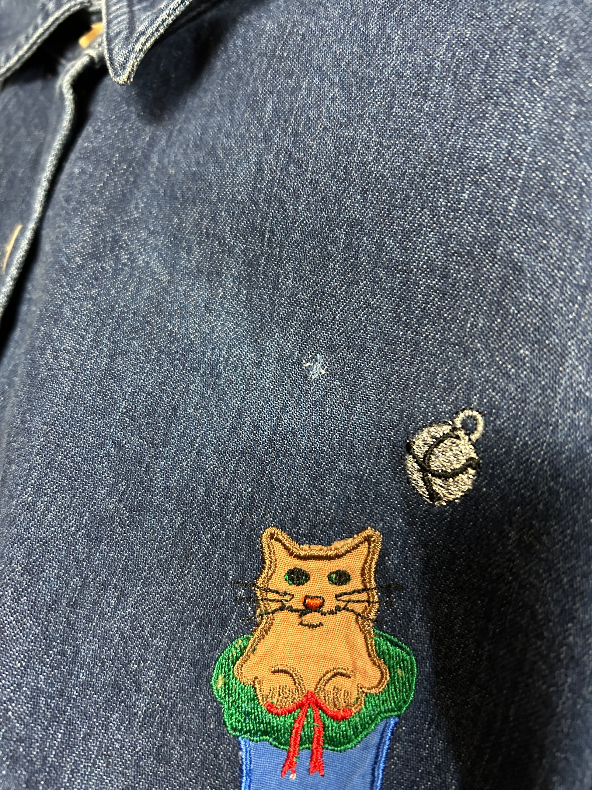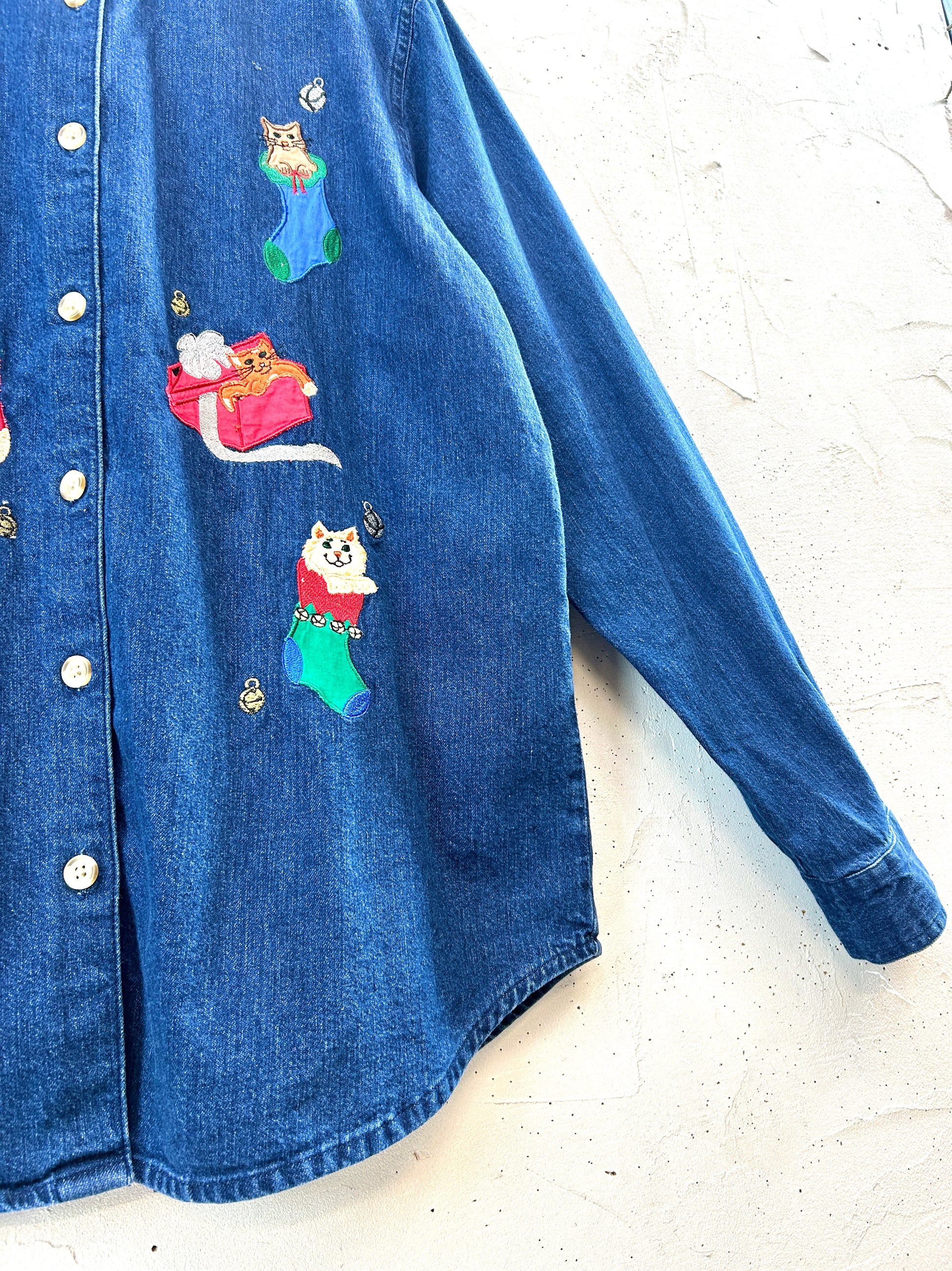 クリスマスアイテムの中でも人気のアニマルモチーフで、猫の愛くるしい表情の刺繍やパッチが非常に可愛いです。