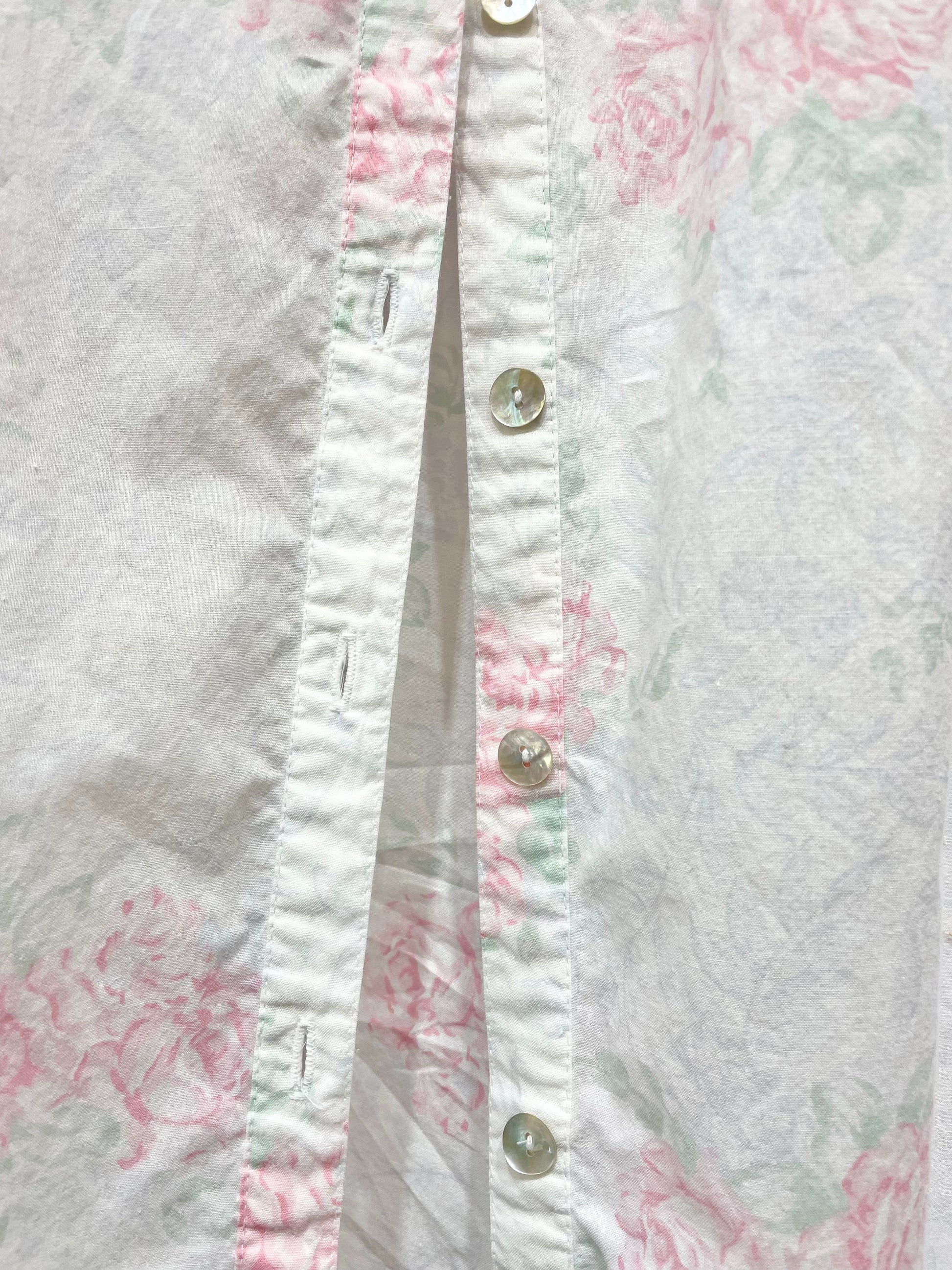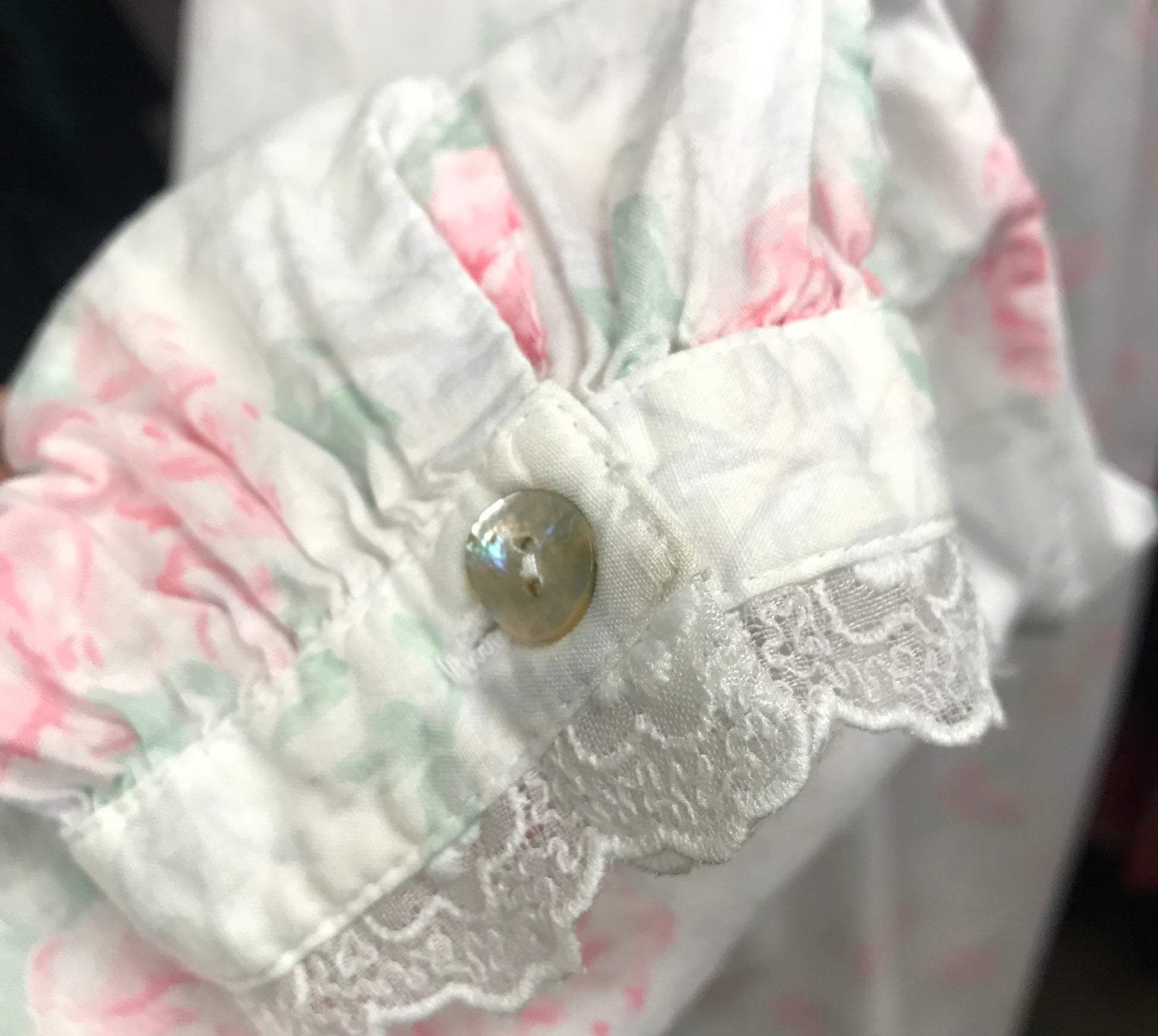淡いフラワーのパターンが可愛らしく、首元や袖のレースも素敵です。