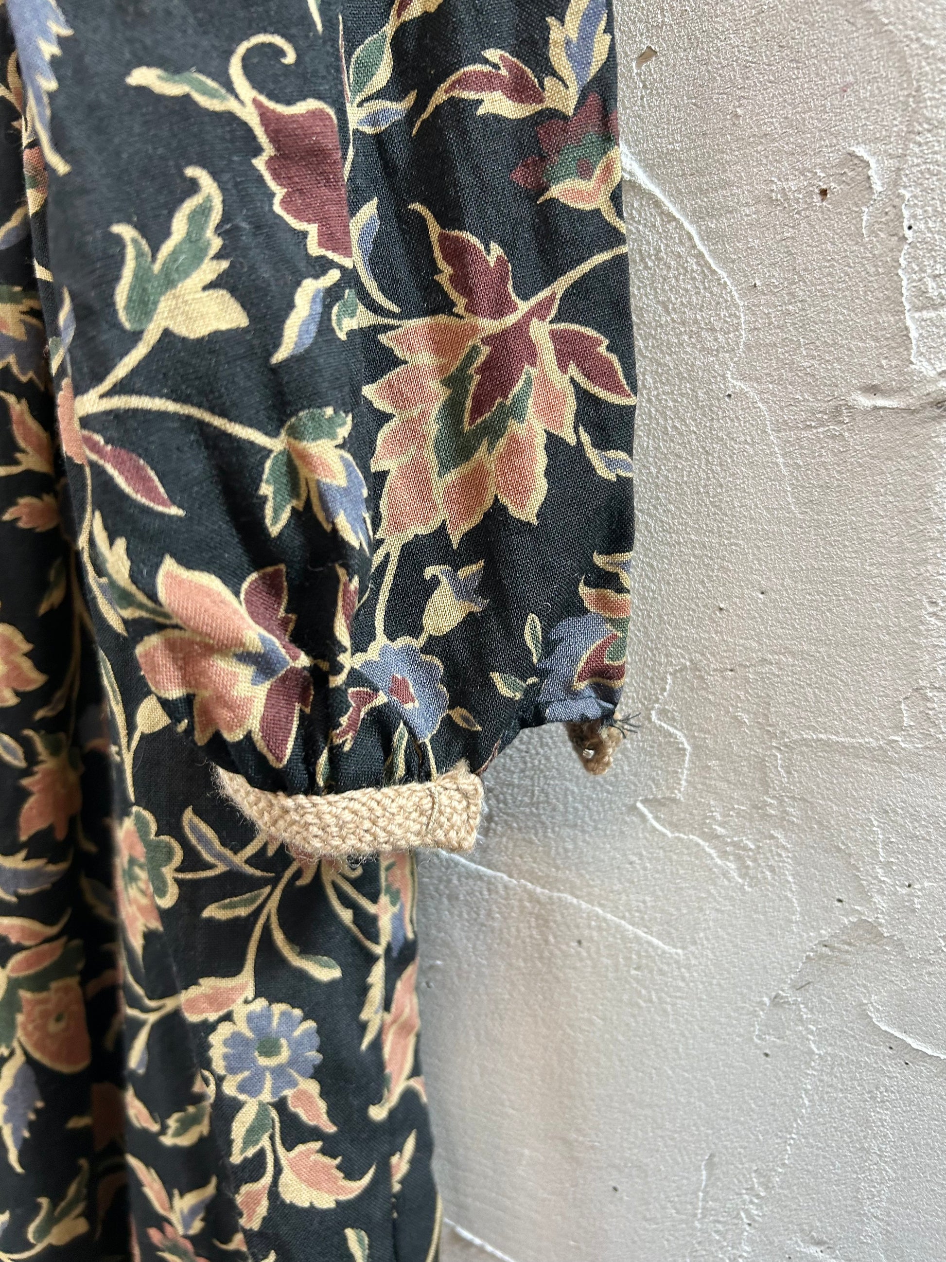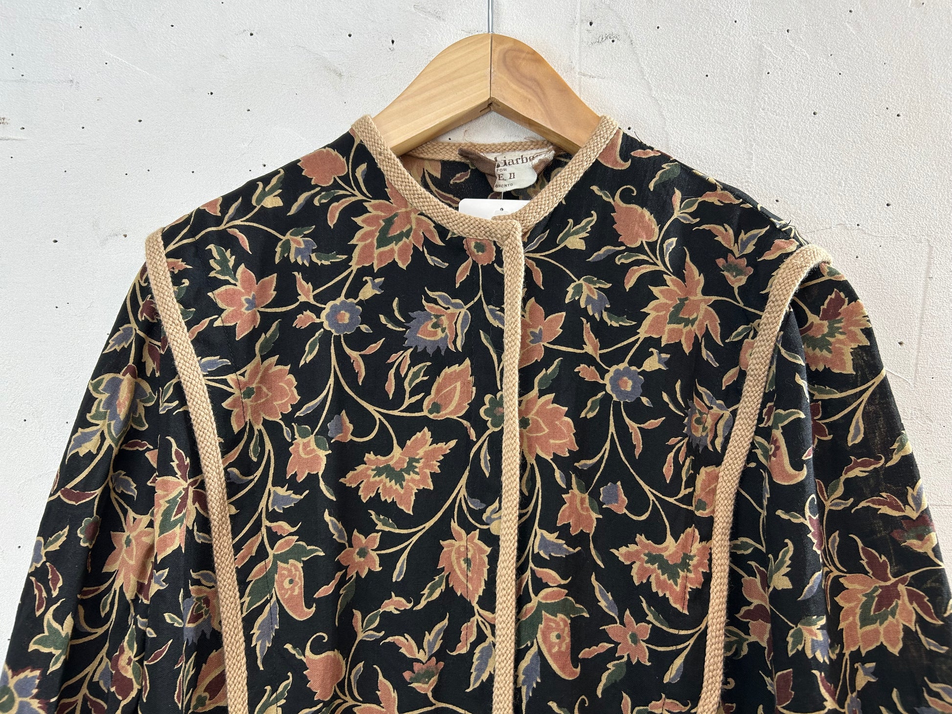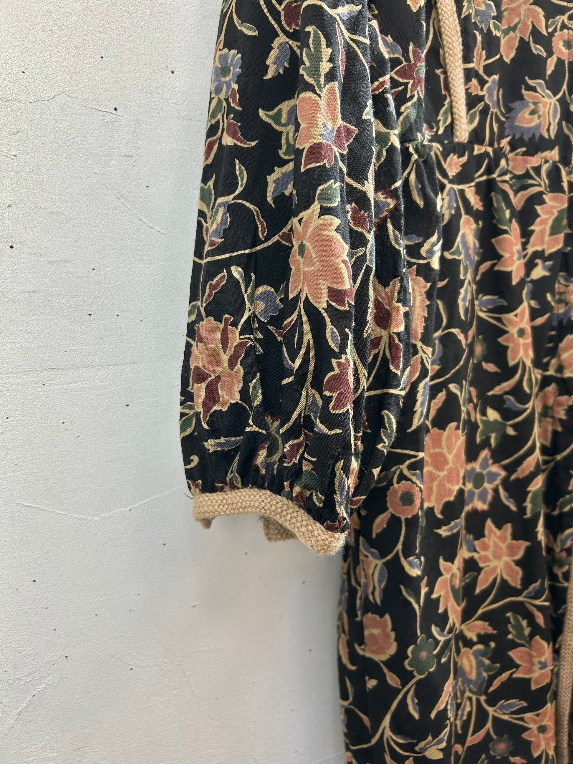 落ち着いた色合いのシックなフラワーパターンが素敵な一着。