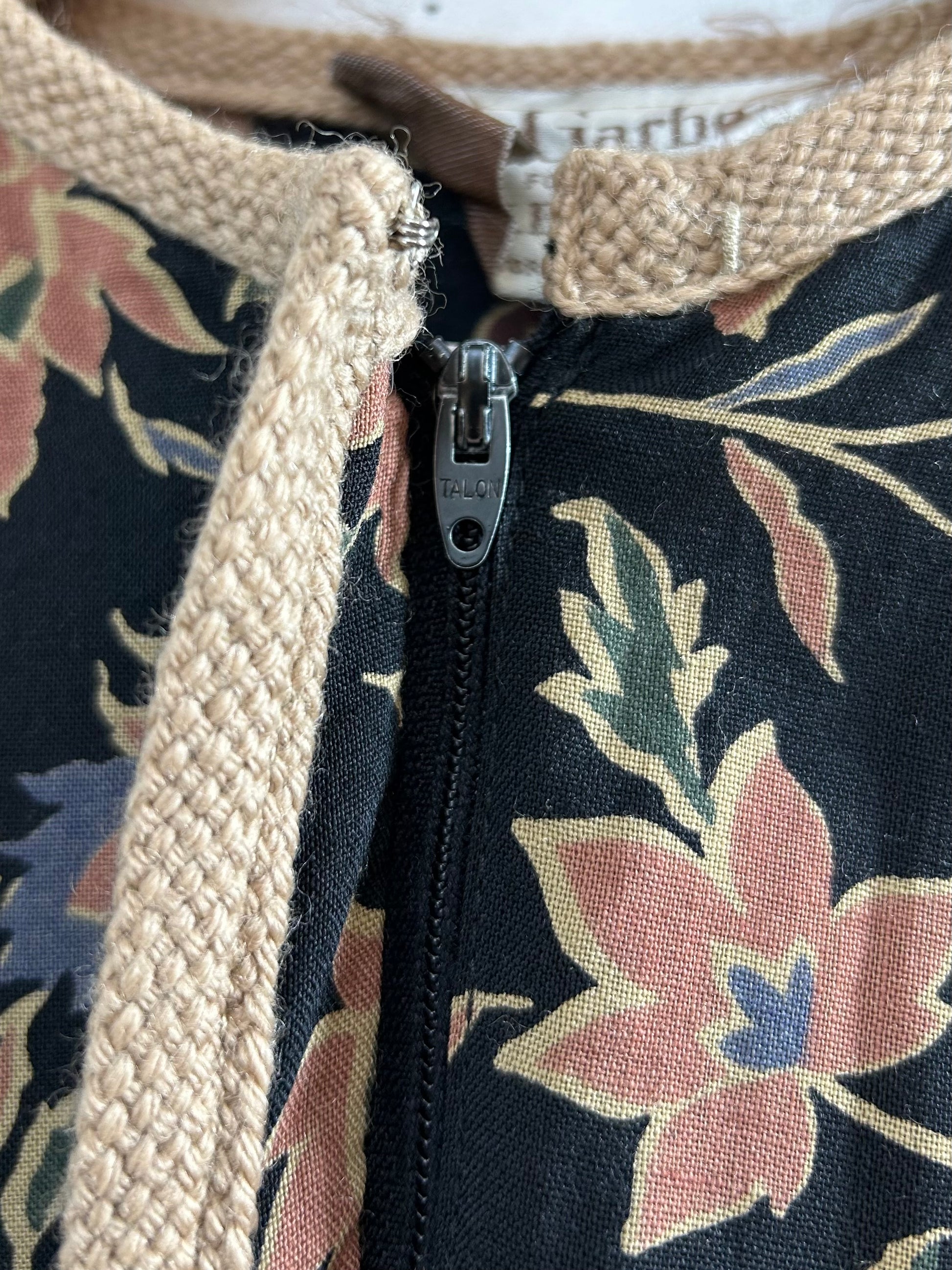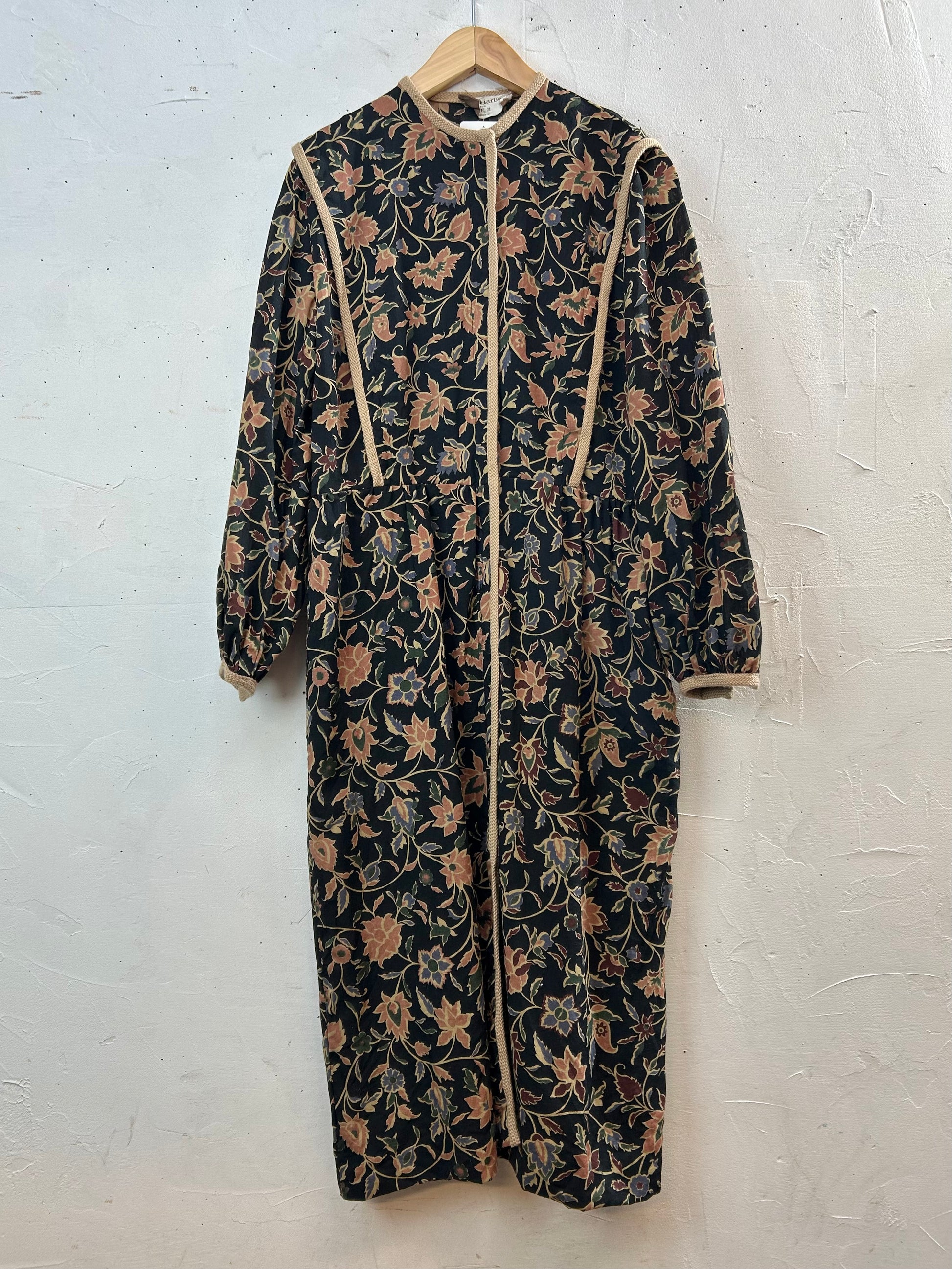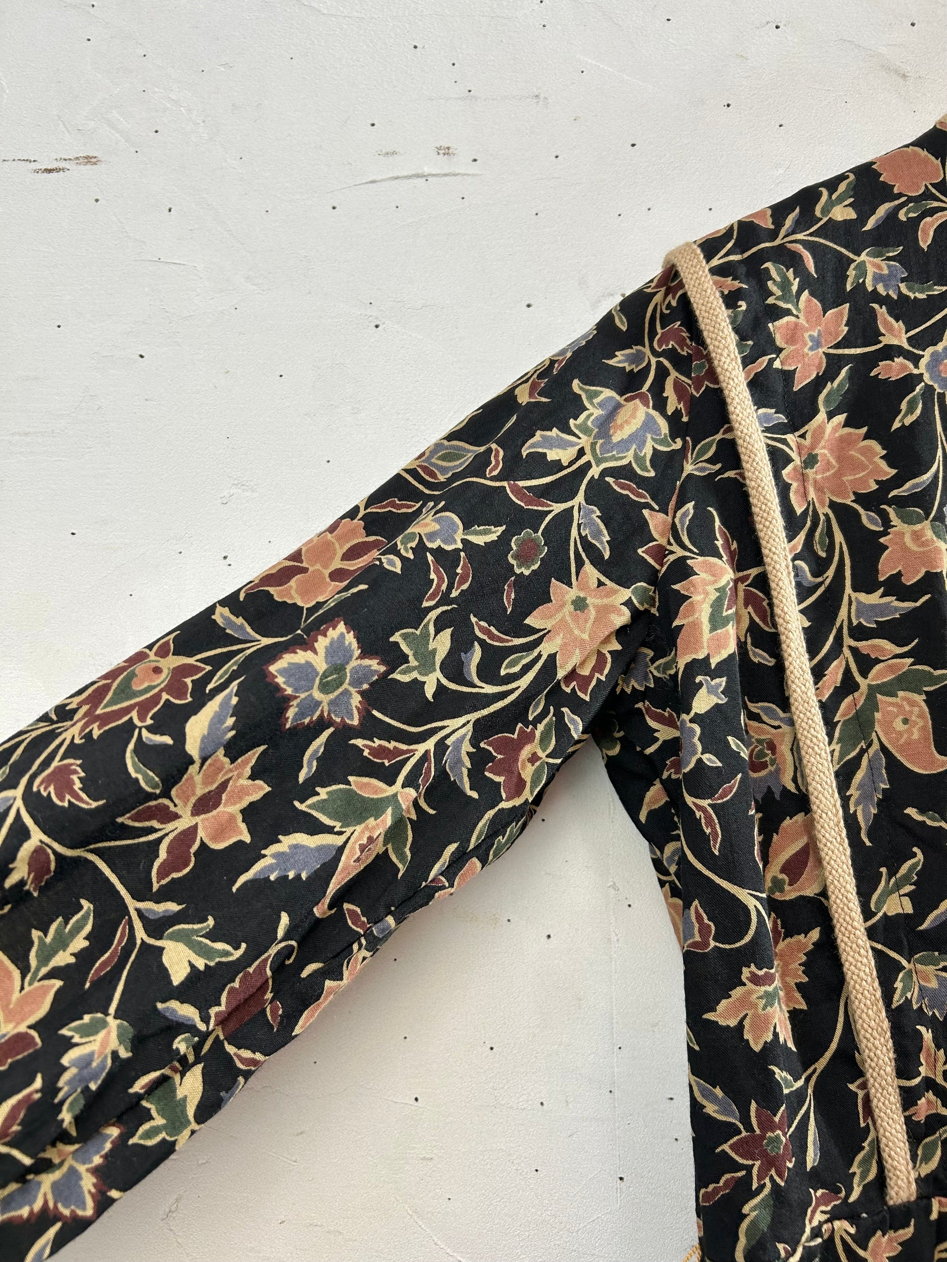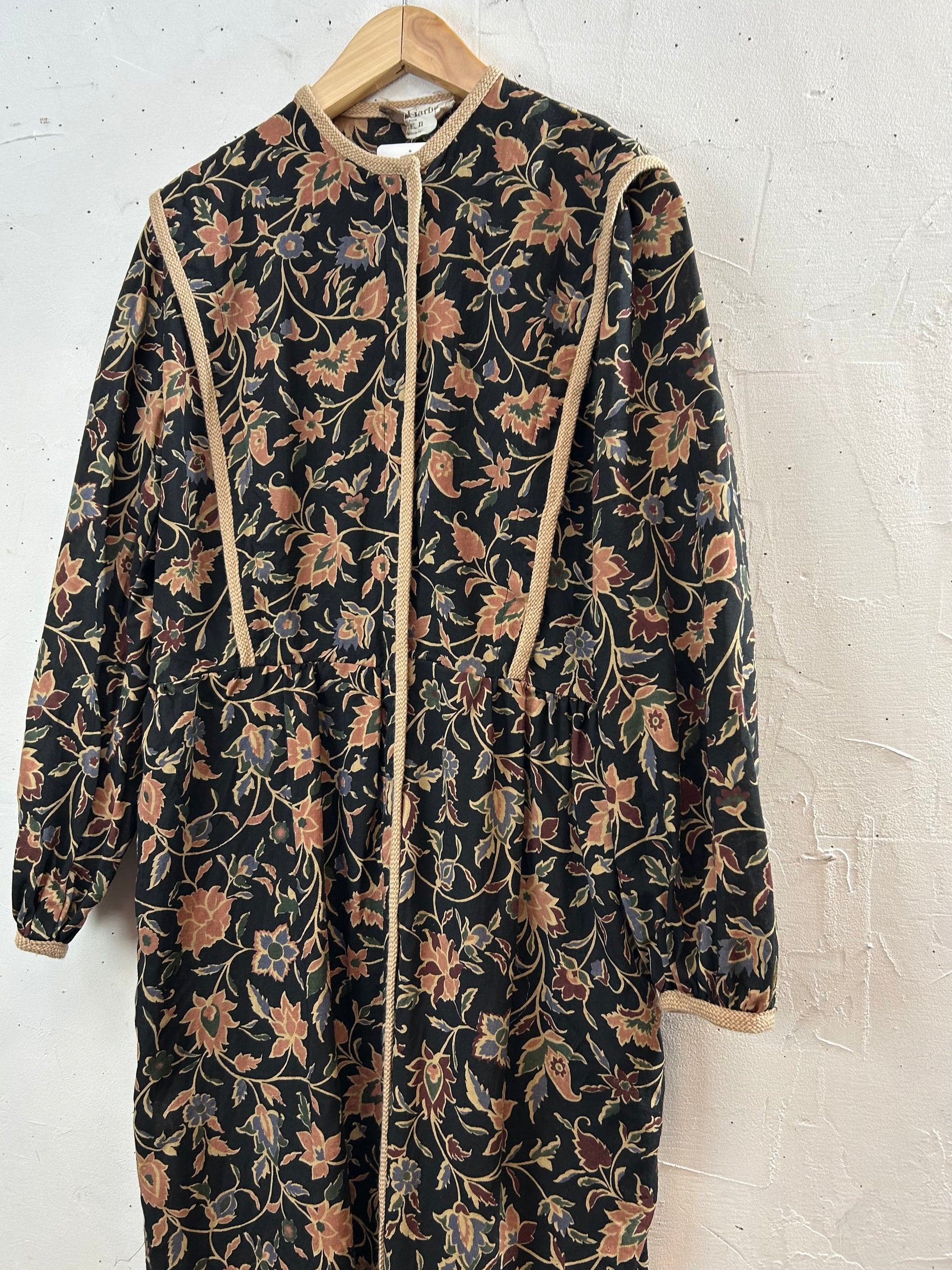 落ち着いた色合いのシックなフラワーパターンが素敵な一着。