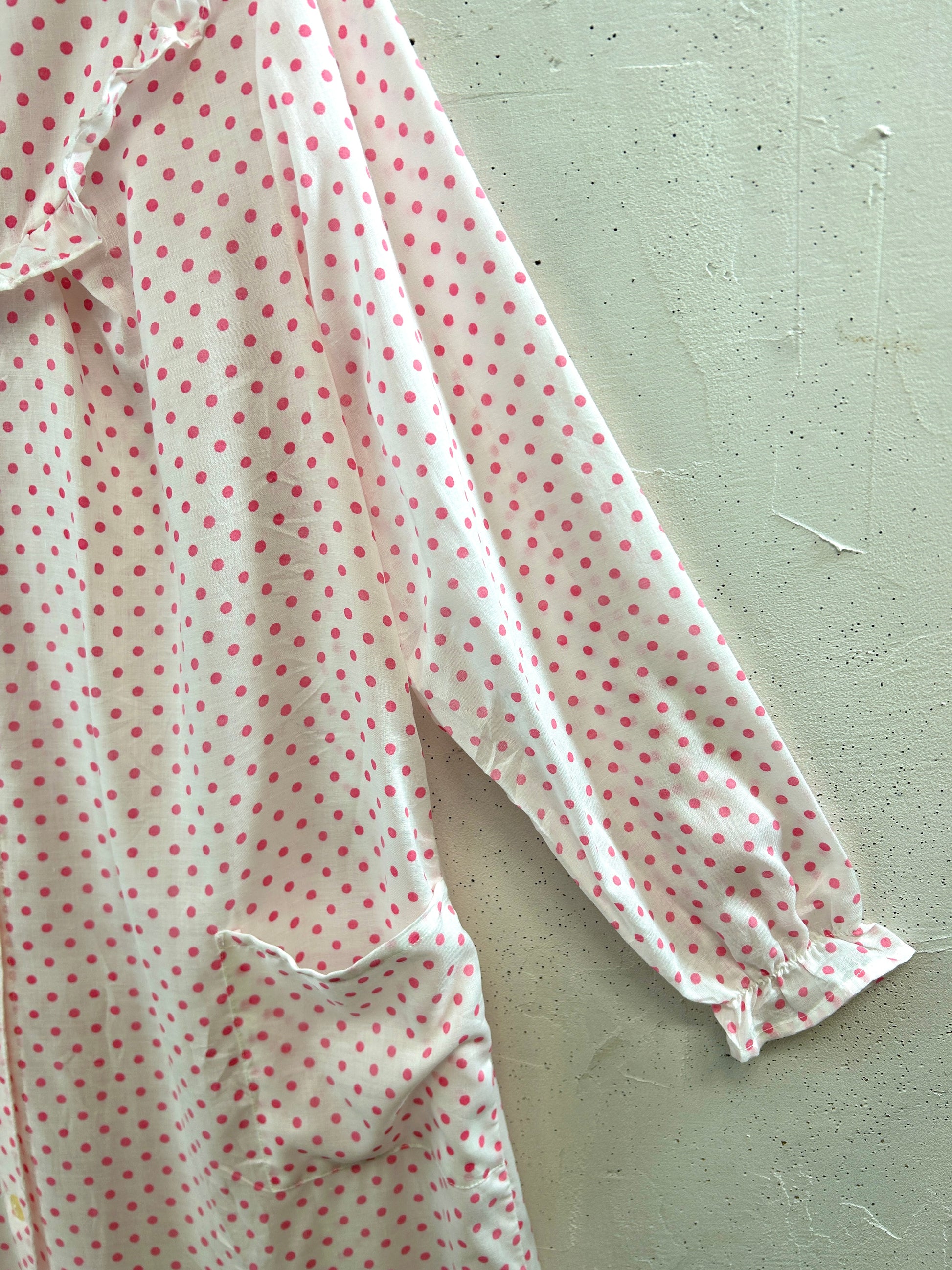 レイヤードアイテムとしてデイリーに使いやすいホワイトベースにピンクドットのワンピースです。