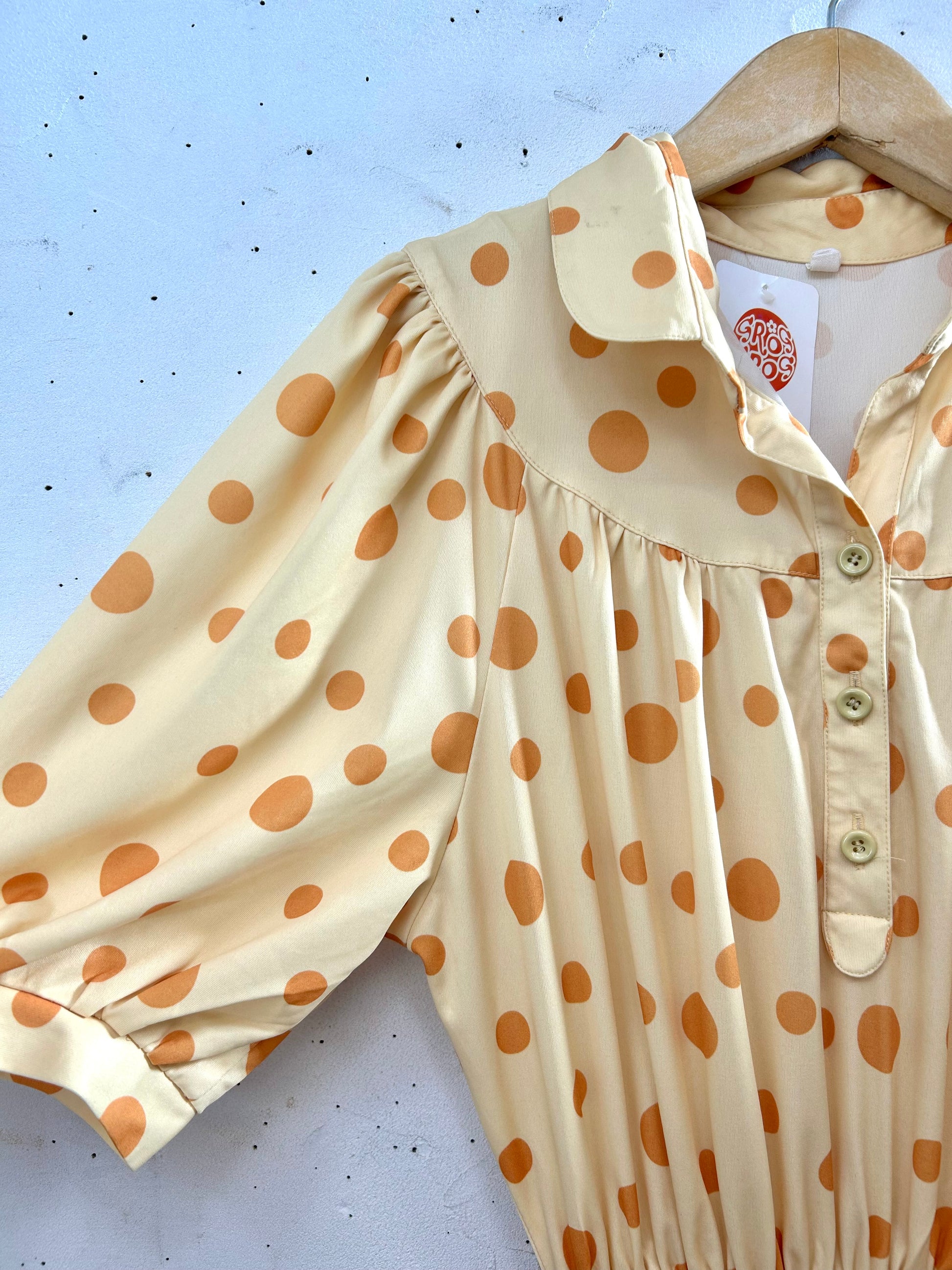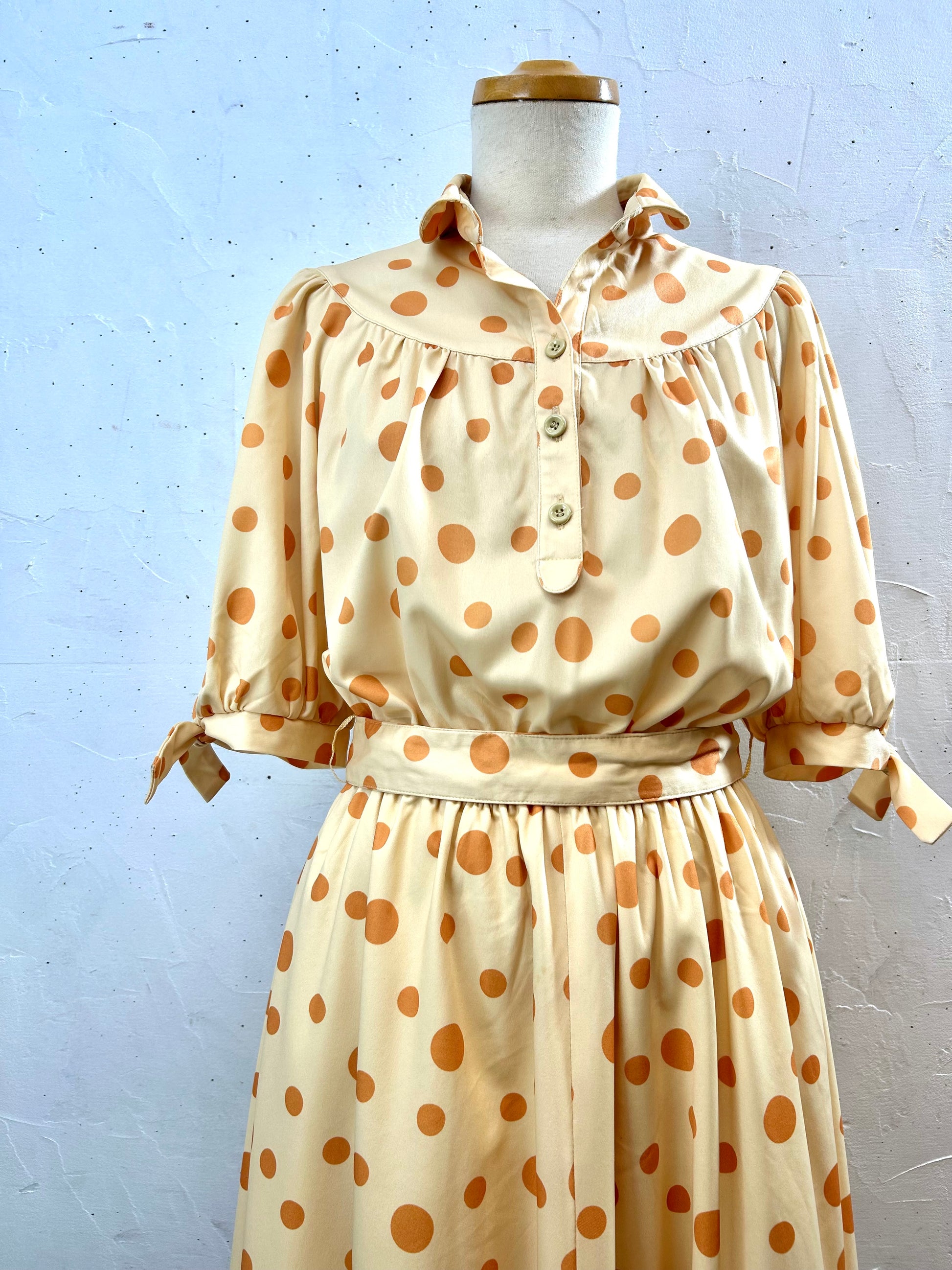 明るいベージュベースのドットパターンがとても雰囲気ある1着。