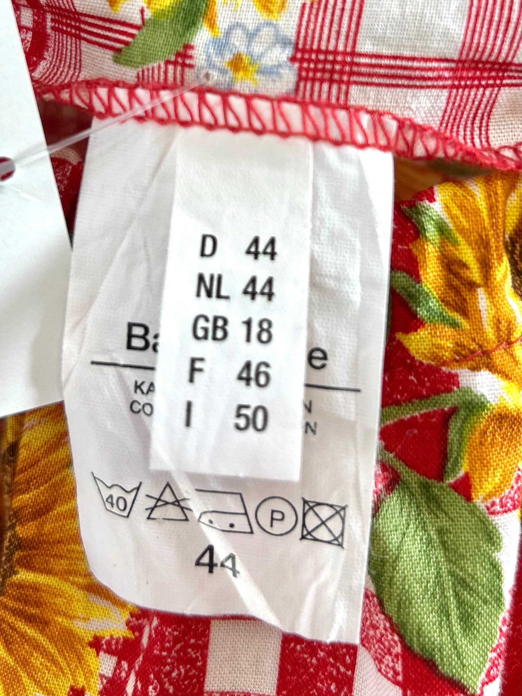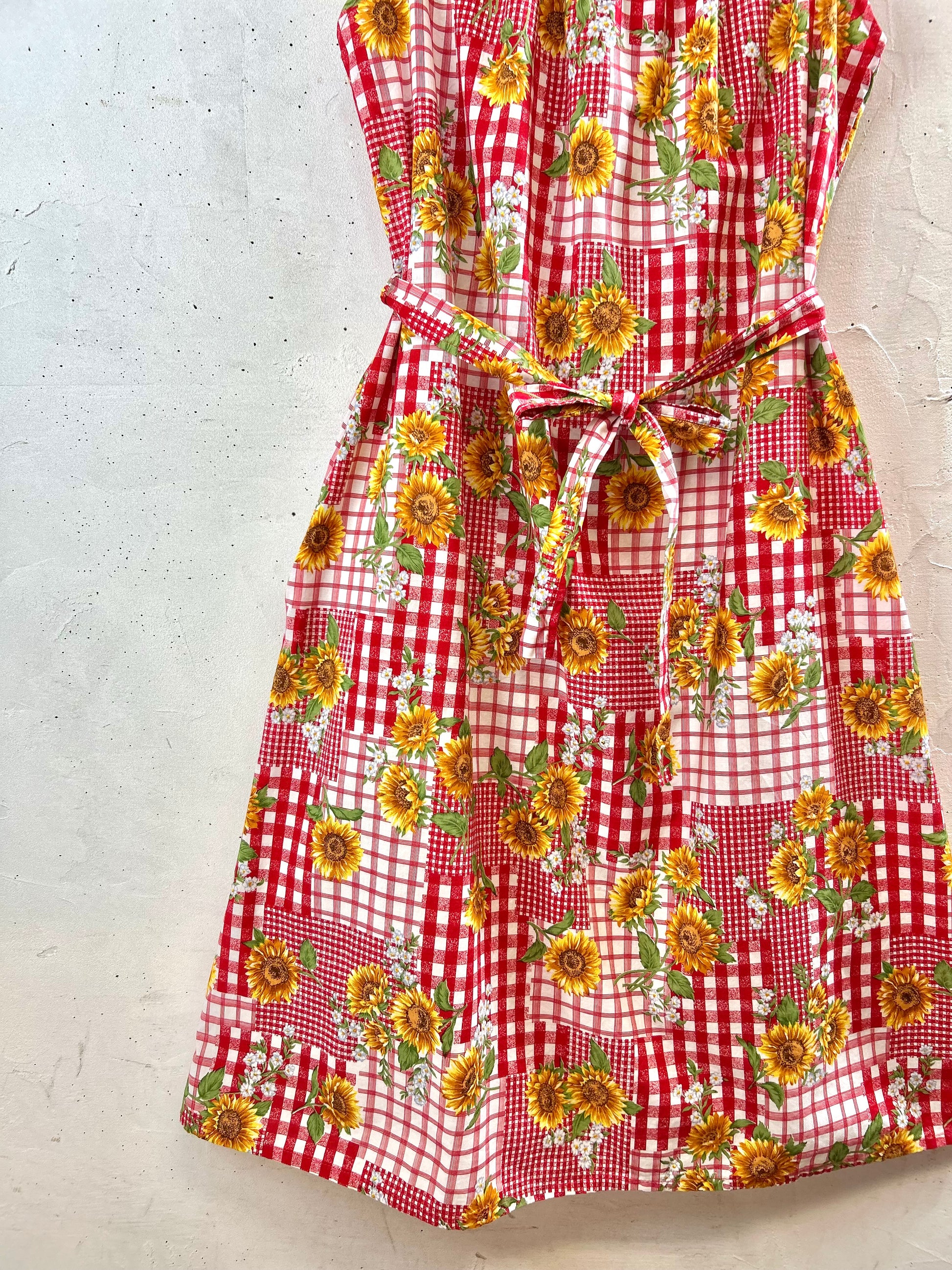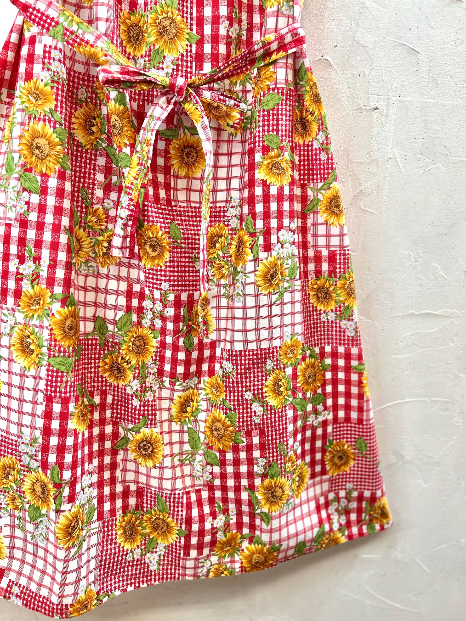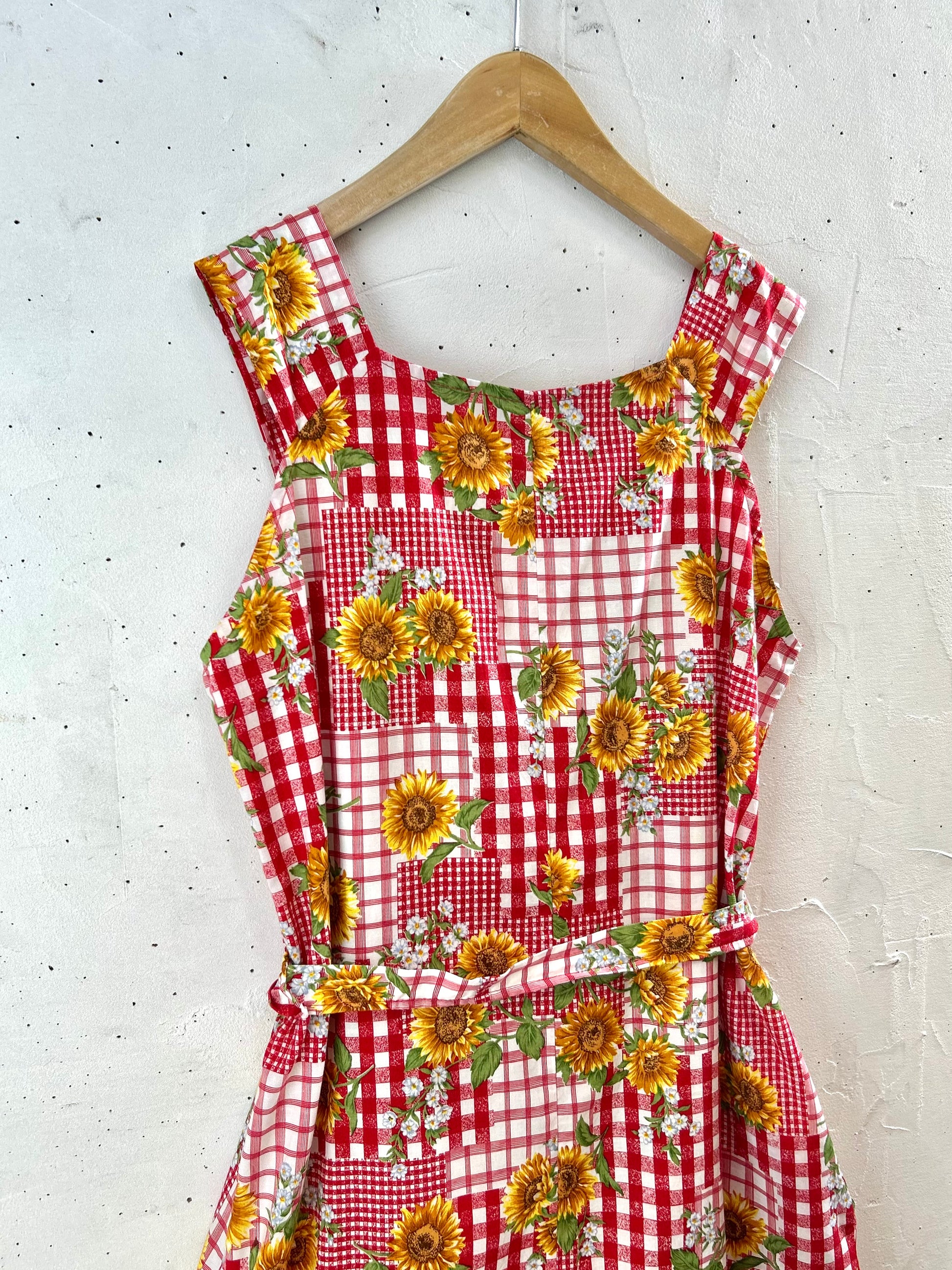ホワイト&レッドのチェックパッチプリントにひまわりブーケが散りばめられた、ビンテージアイテムならではの映える1着。