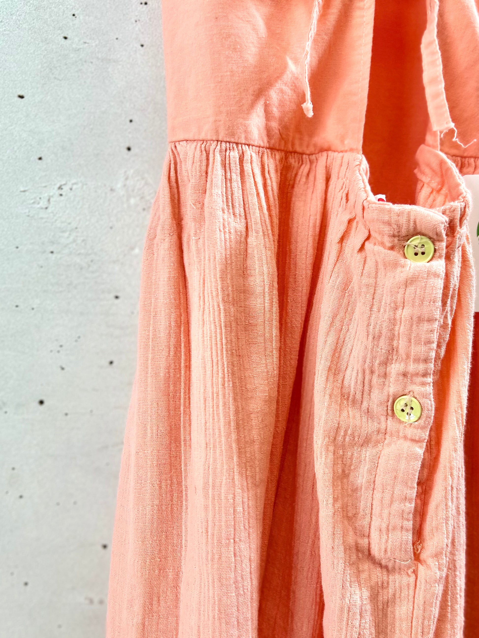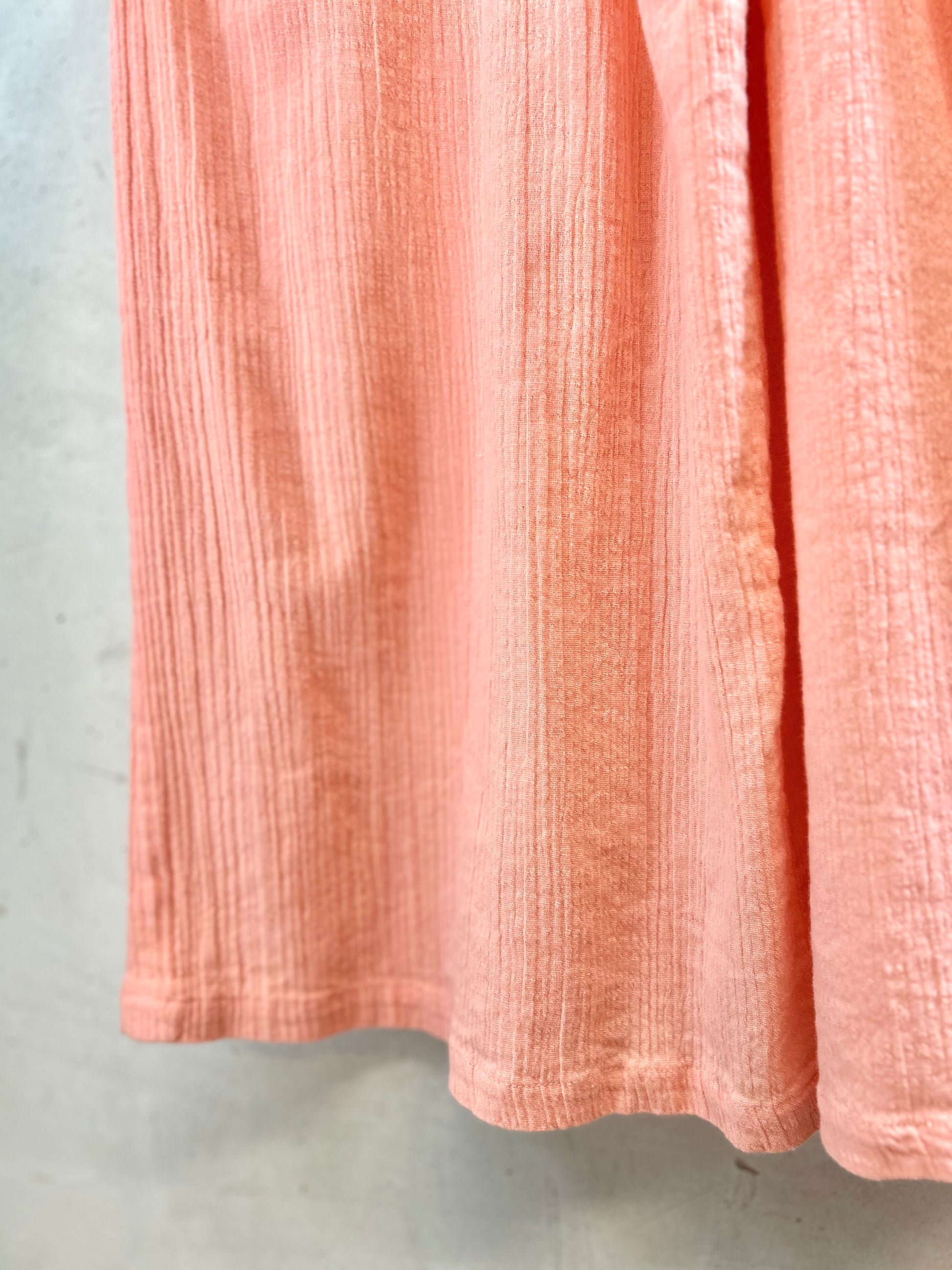 サーモンピンクボディのシンプルデザインでとても可愛らしい一着。