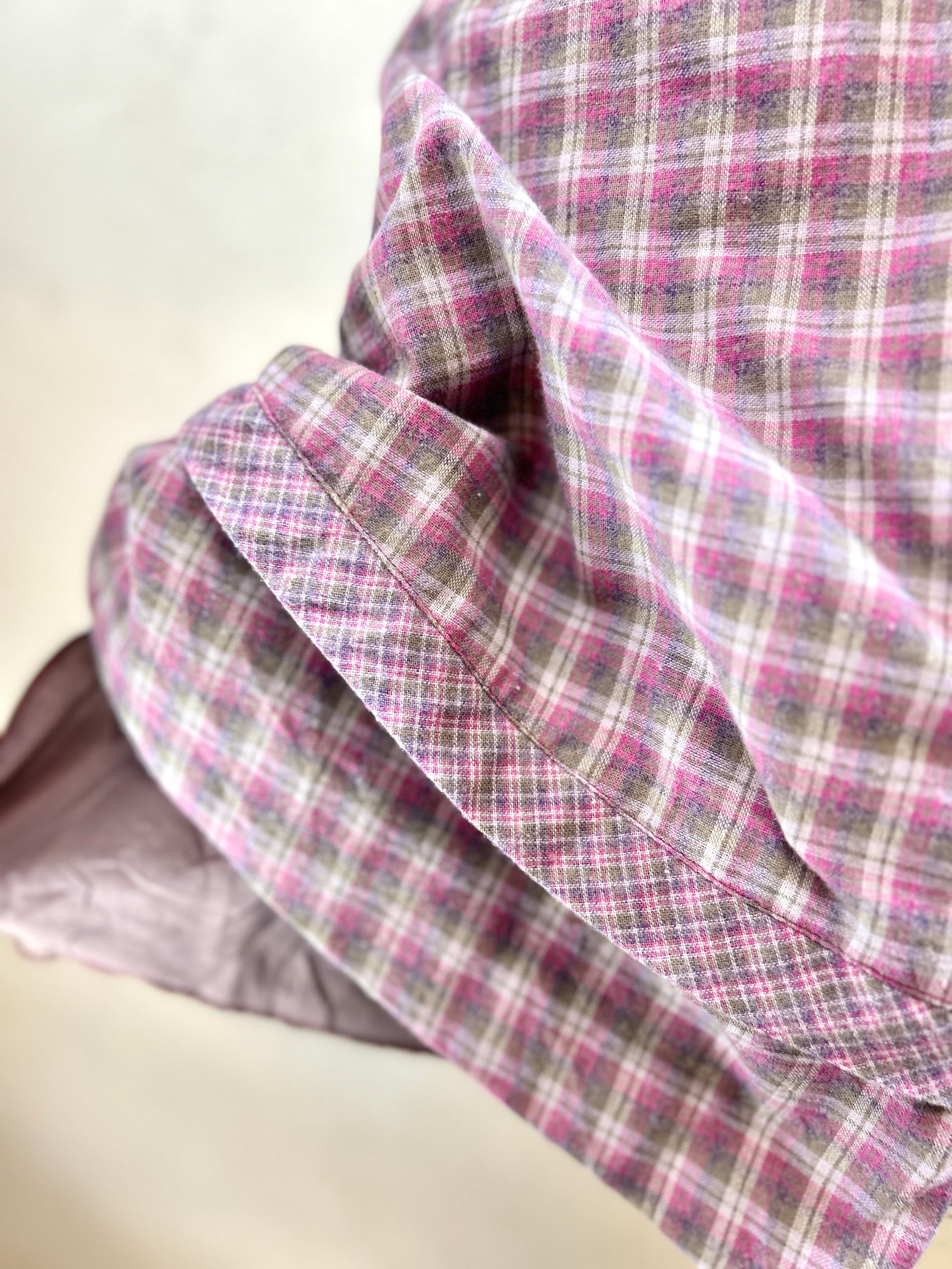 ピンクとグレーベースのチェックが可愛らしい1着。