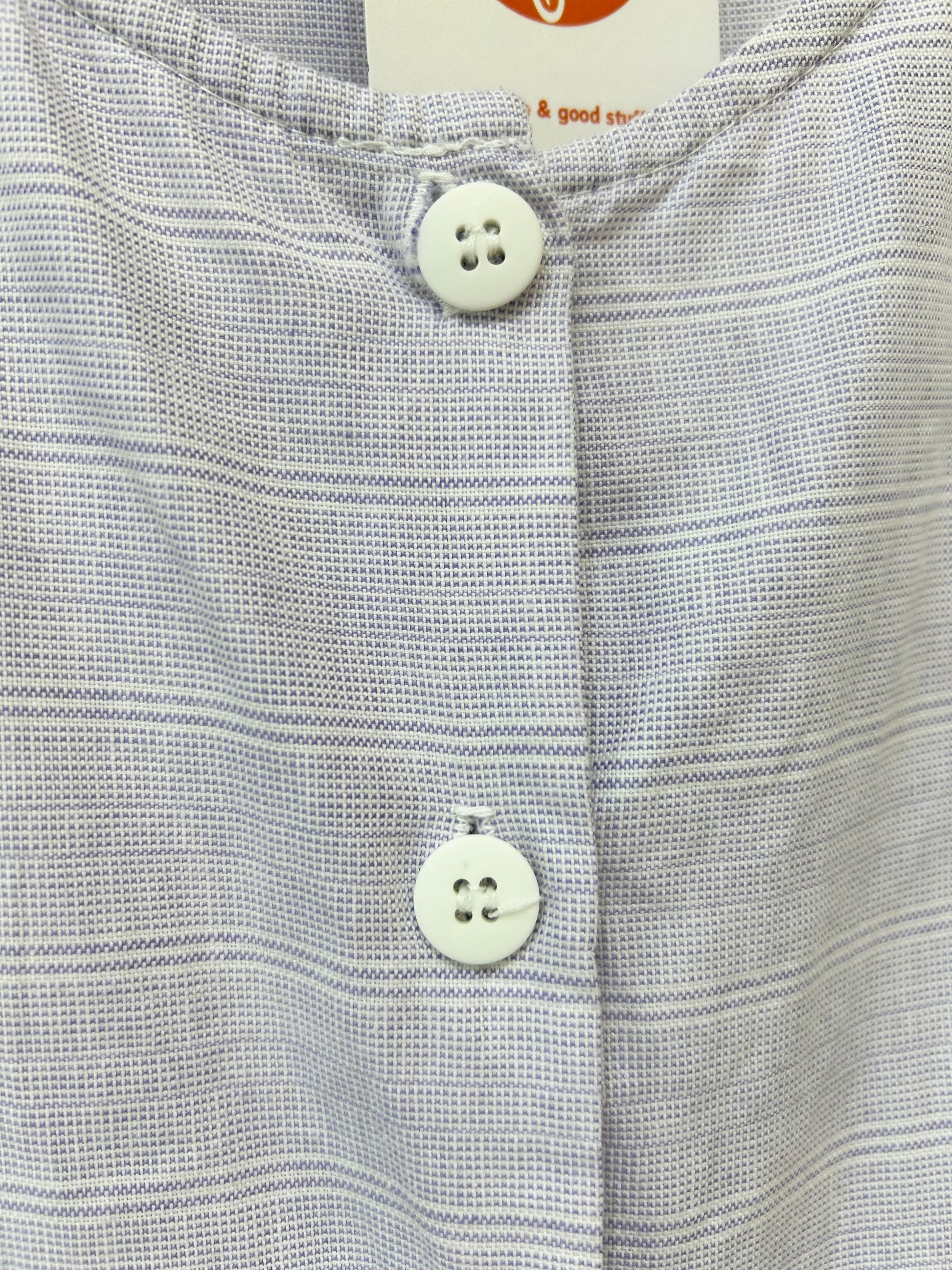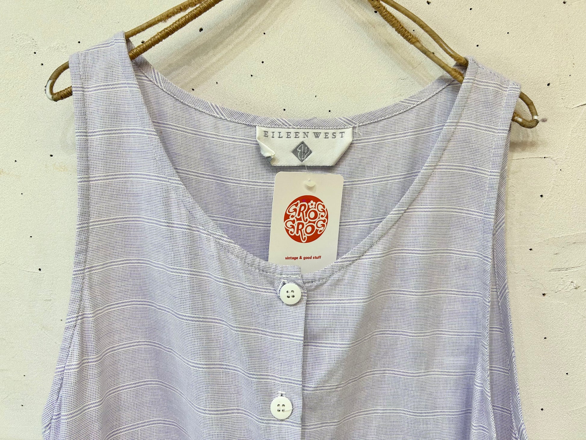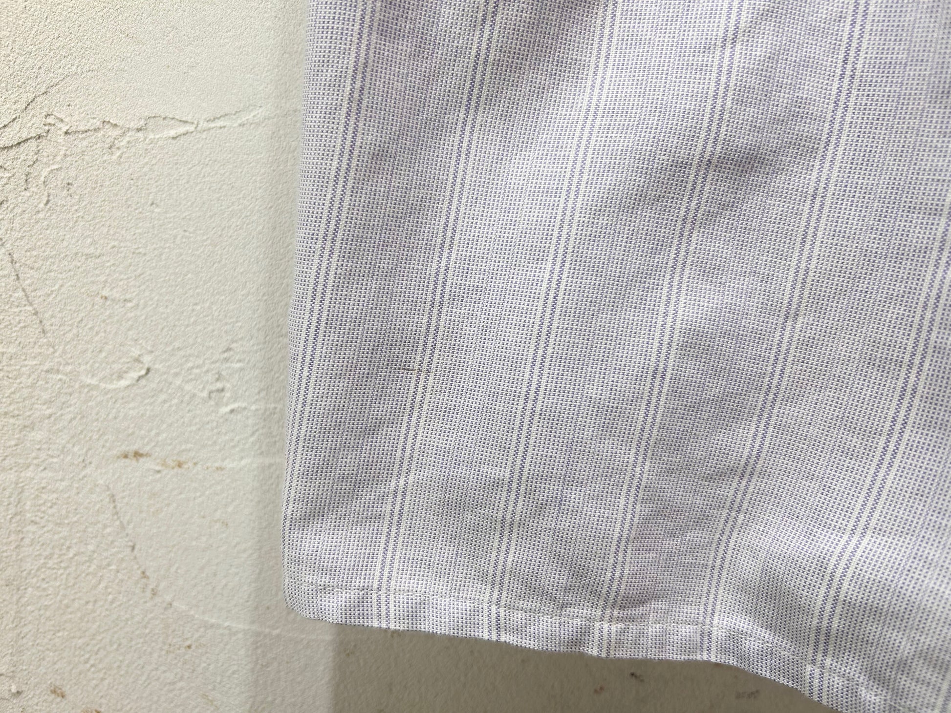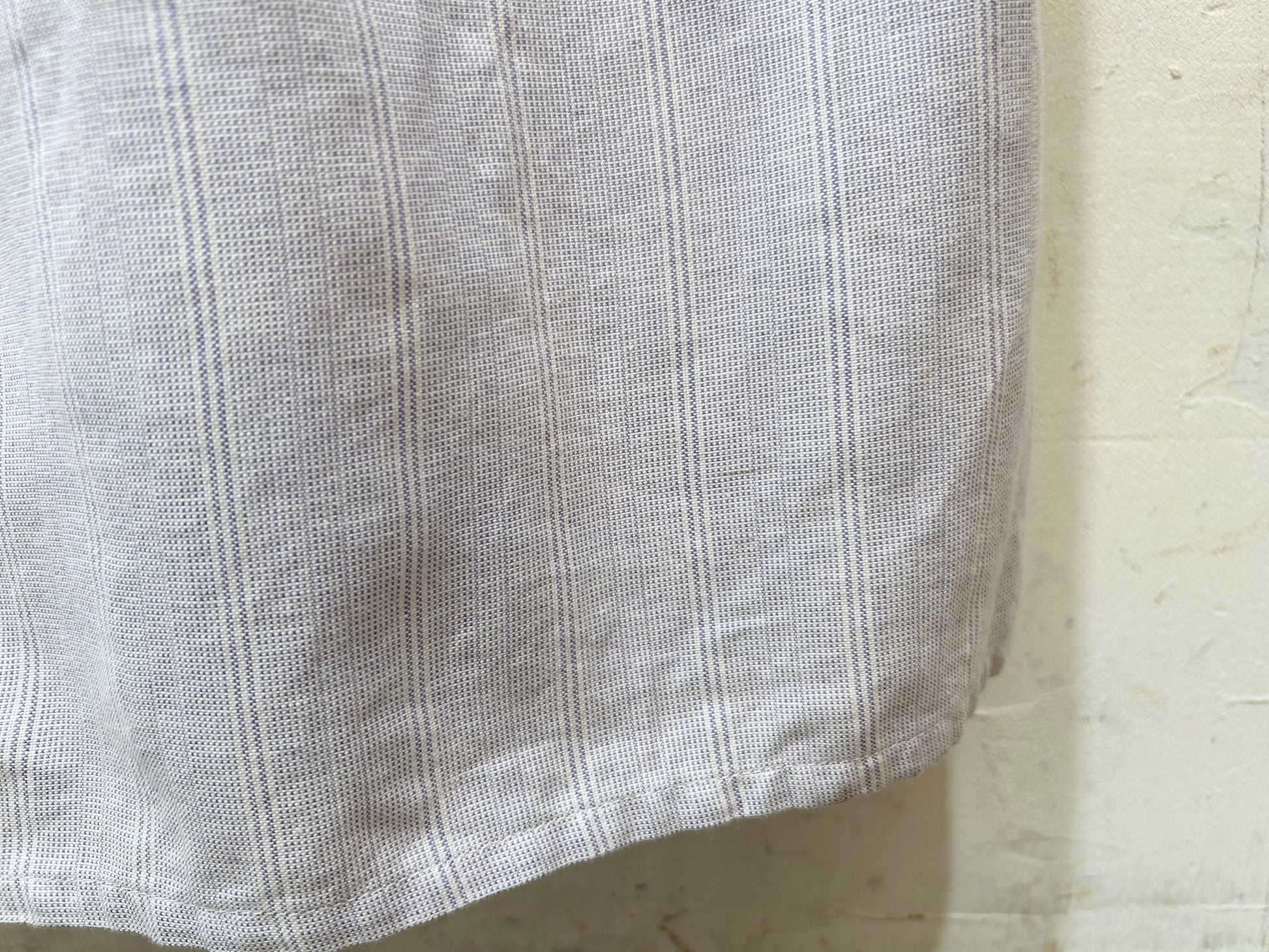 淡いパープルとホワイトカラーのボーダードレス。フロントトップにボタン、後ろスカートにもボタンがつく面白いデザインのアイテム。
