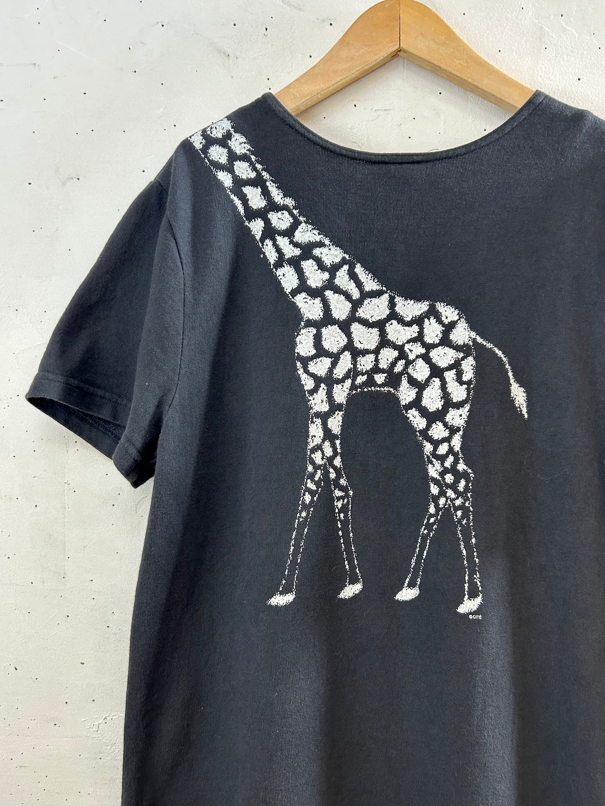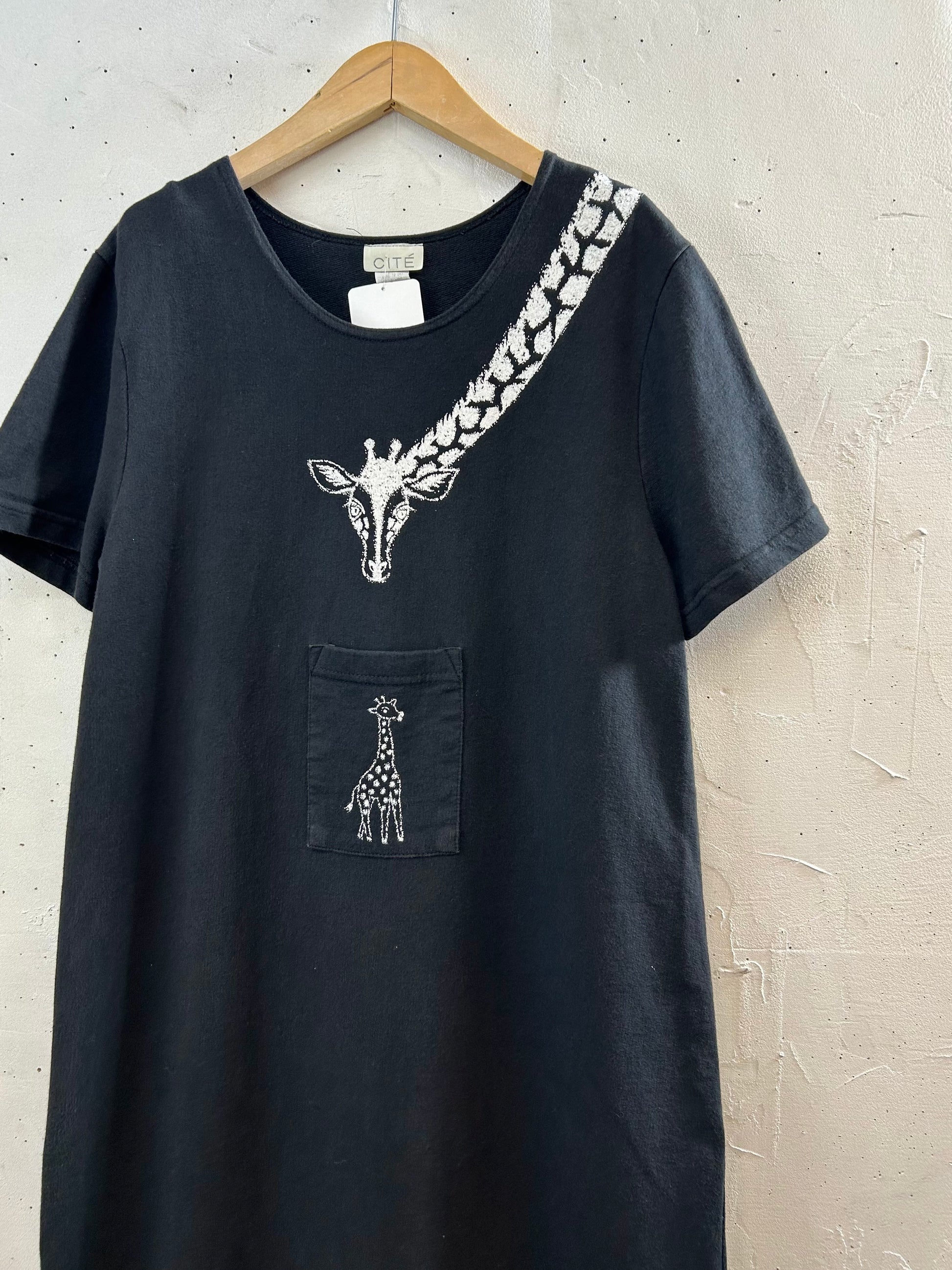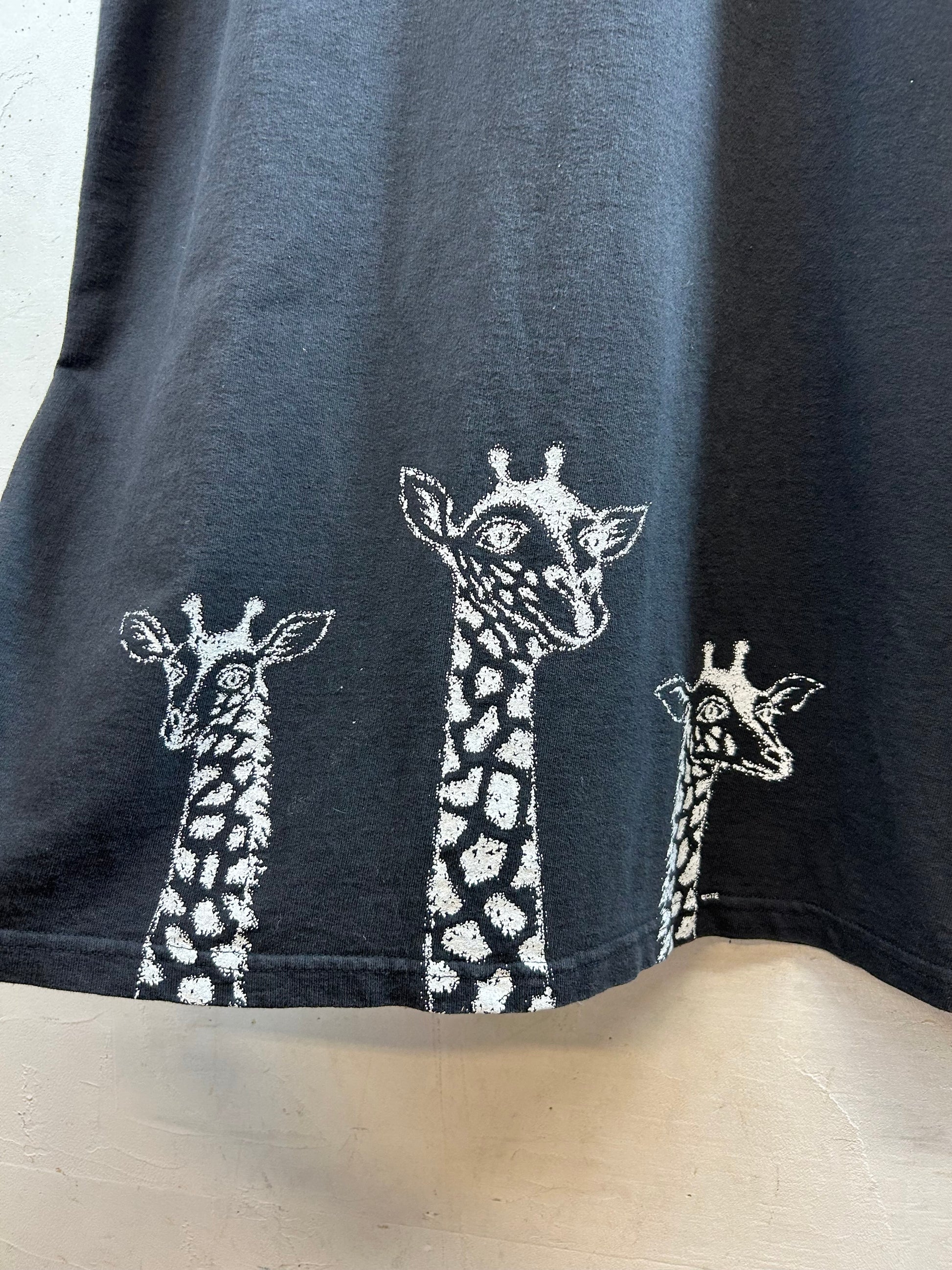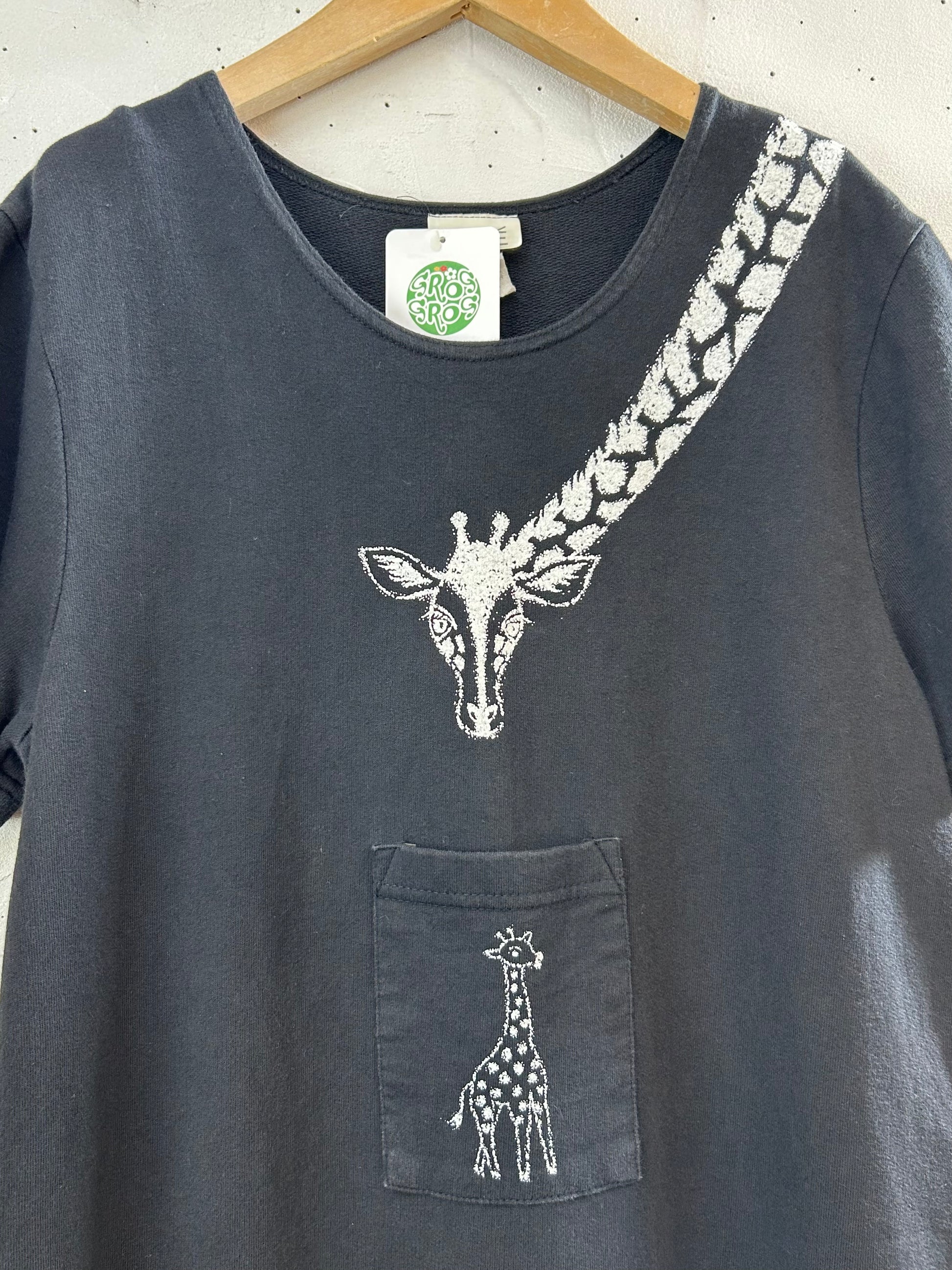ブラックボディに遊び心溢れるキリンのプリントがユニークな1着。