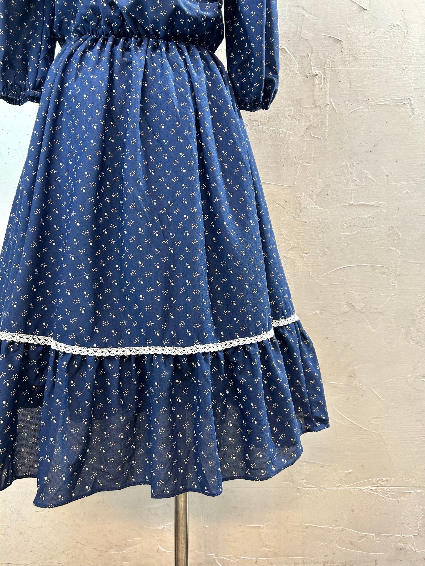 ネイビー&ホワイトの花柄にレースが可愛らしい1着。