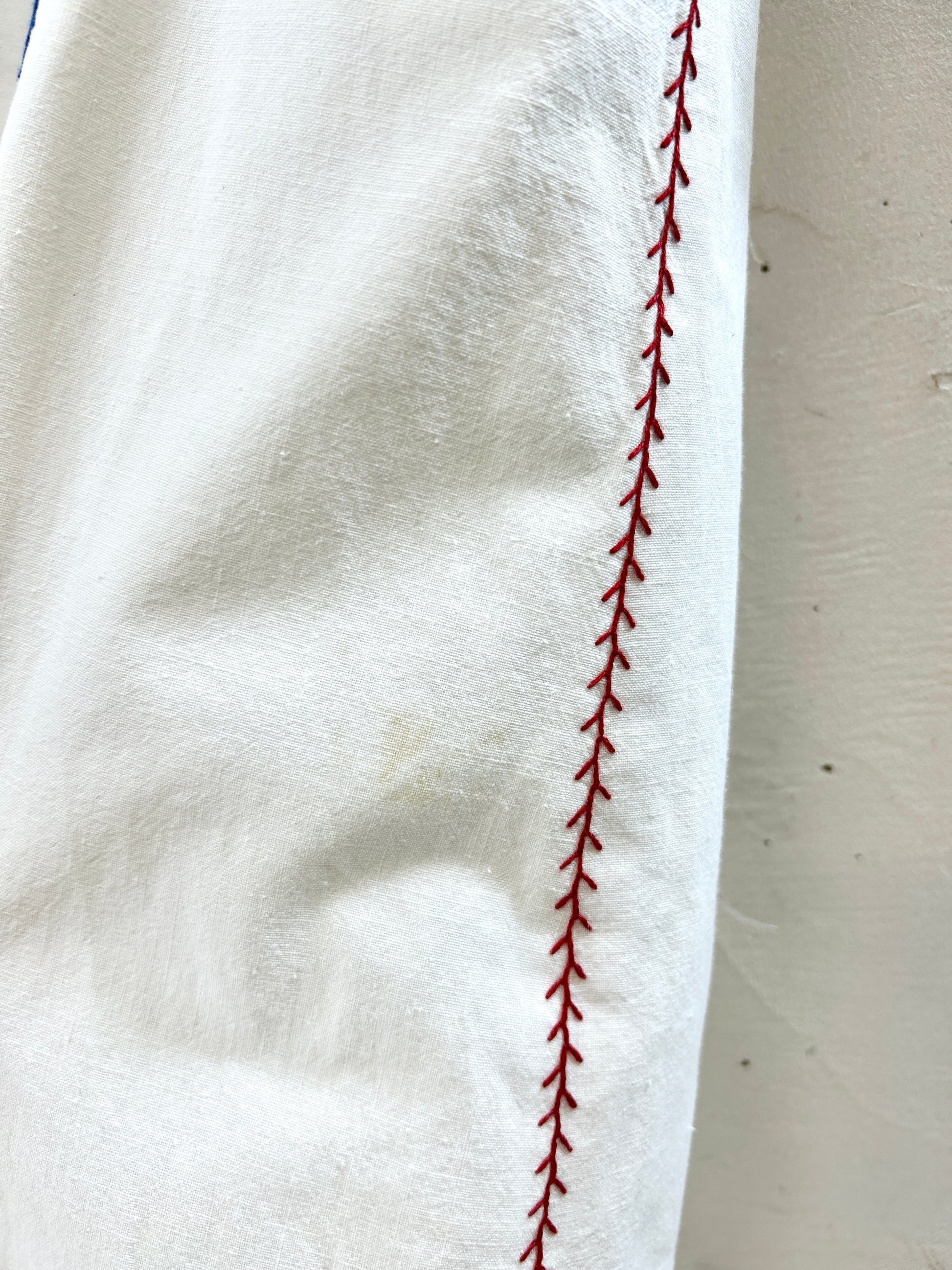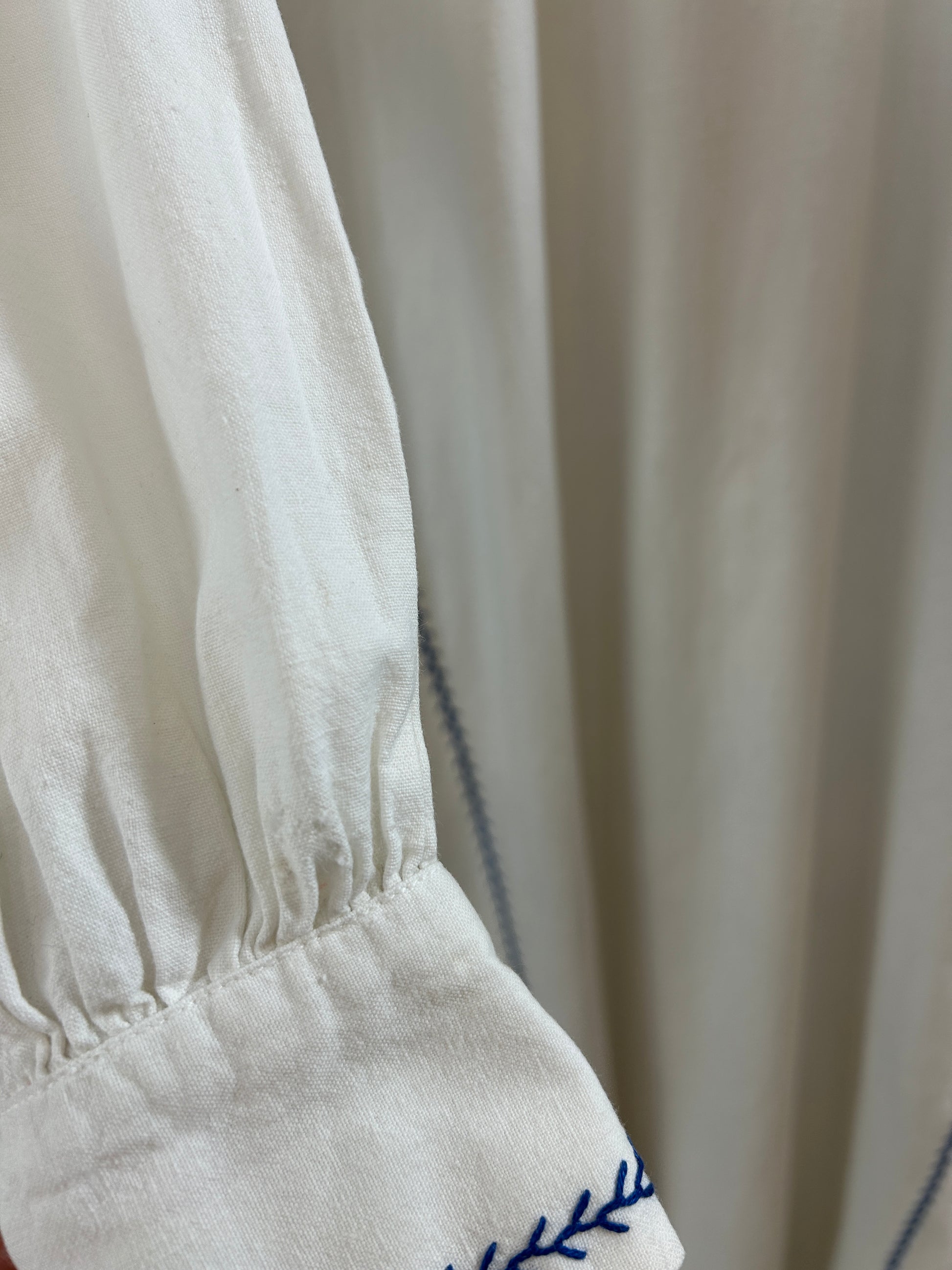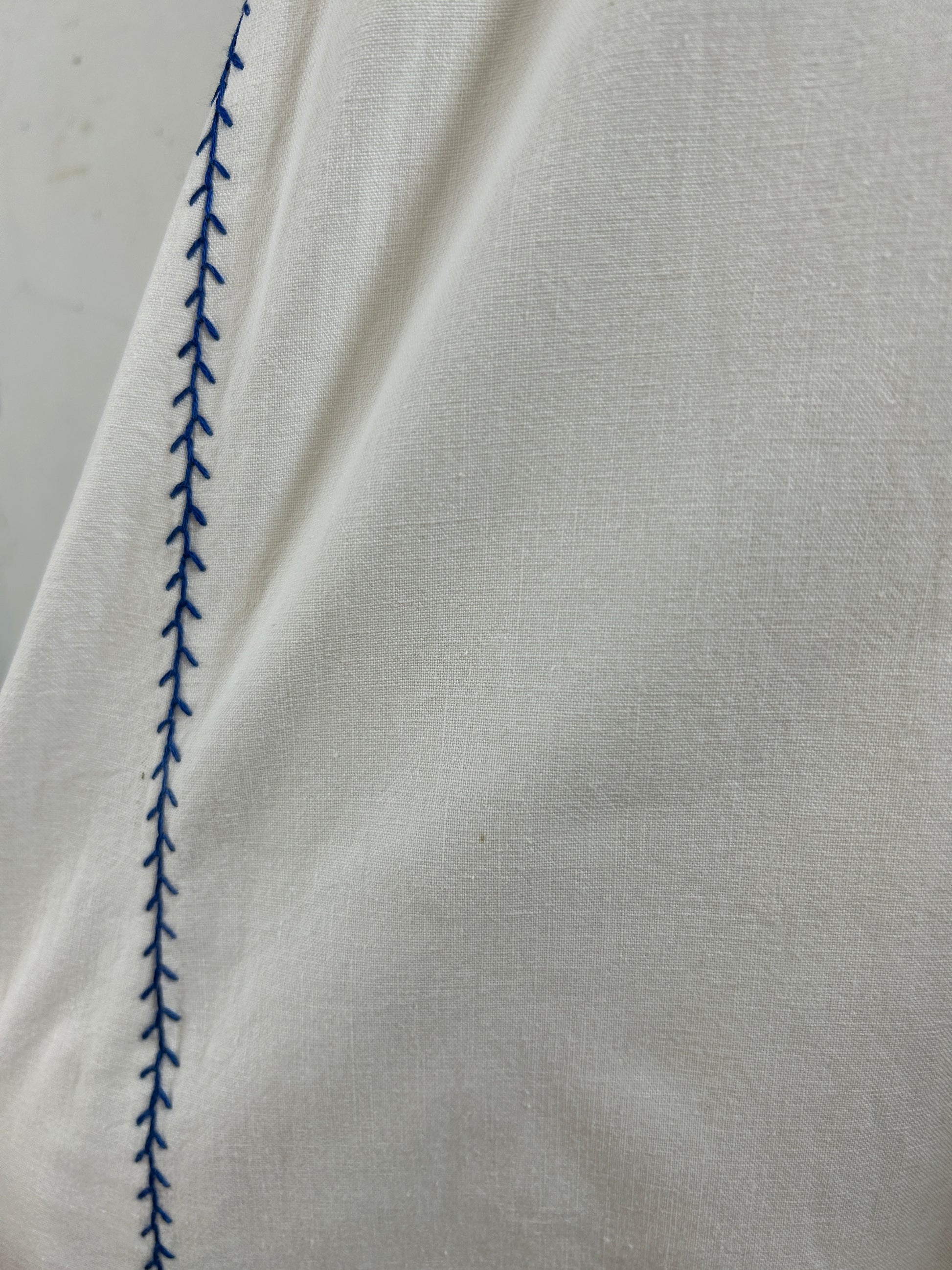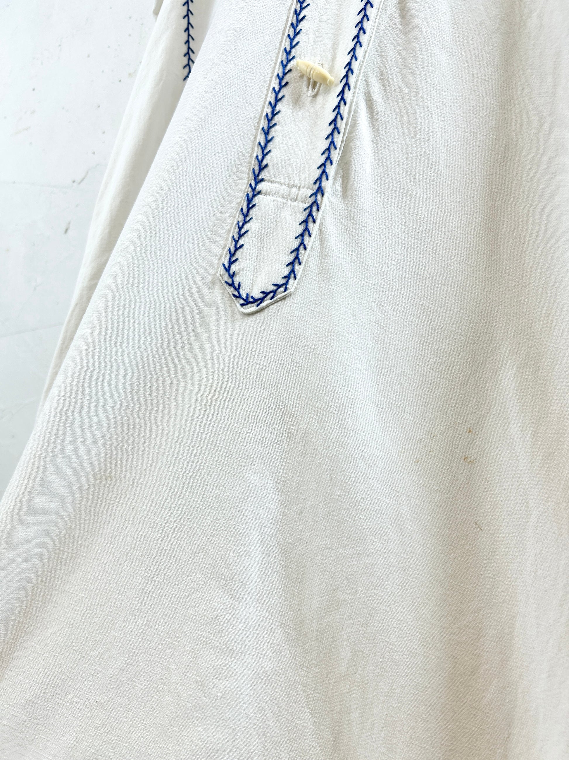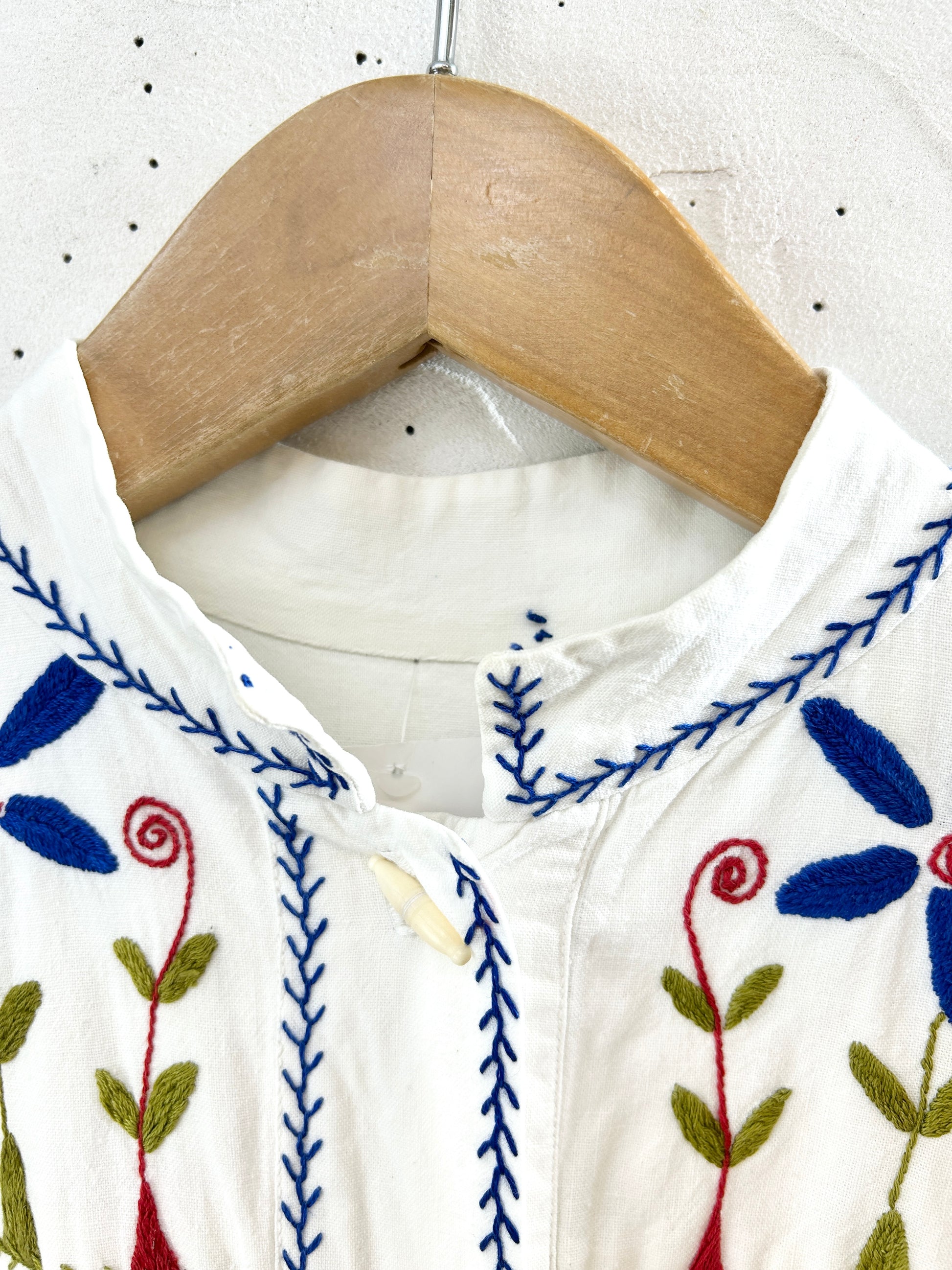 中肉コットンのシンプルなシルエットに施されたブルーフラワーやリースのような刺繍が印象的で、ビンテージならではのアイテムをお楽しみ頂けます。